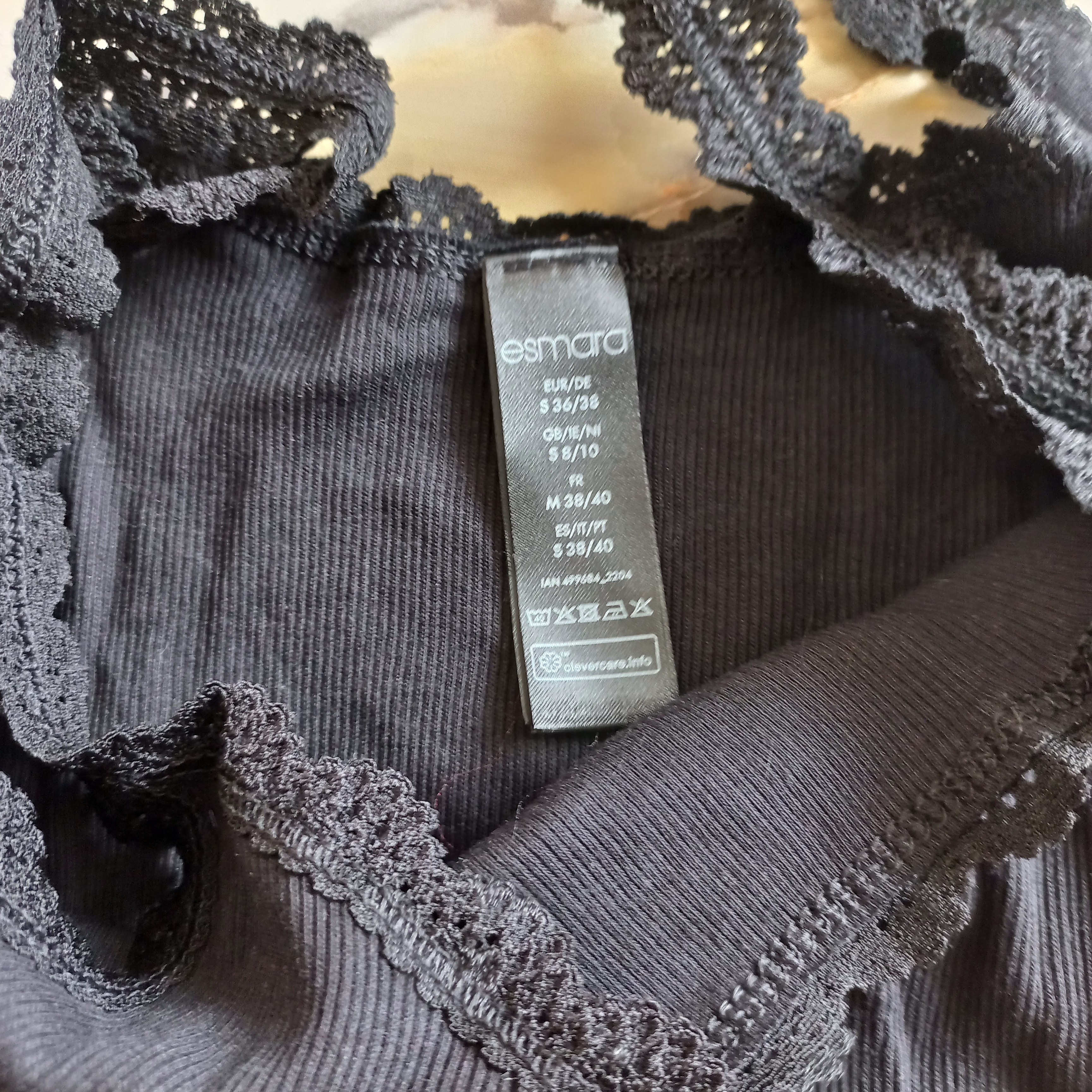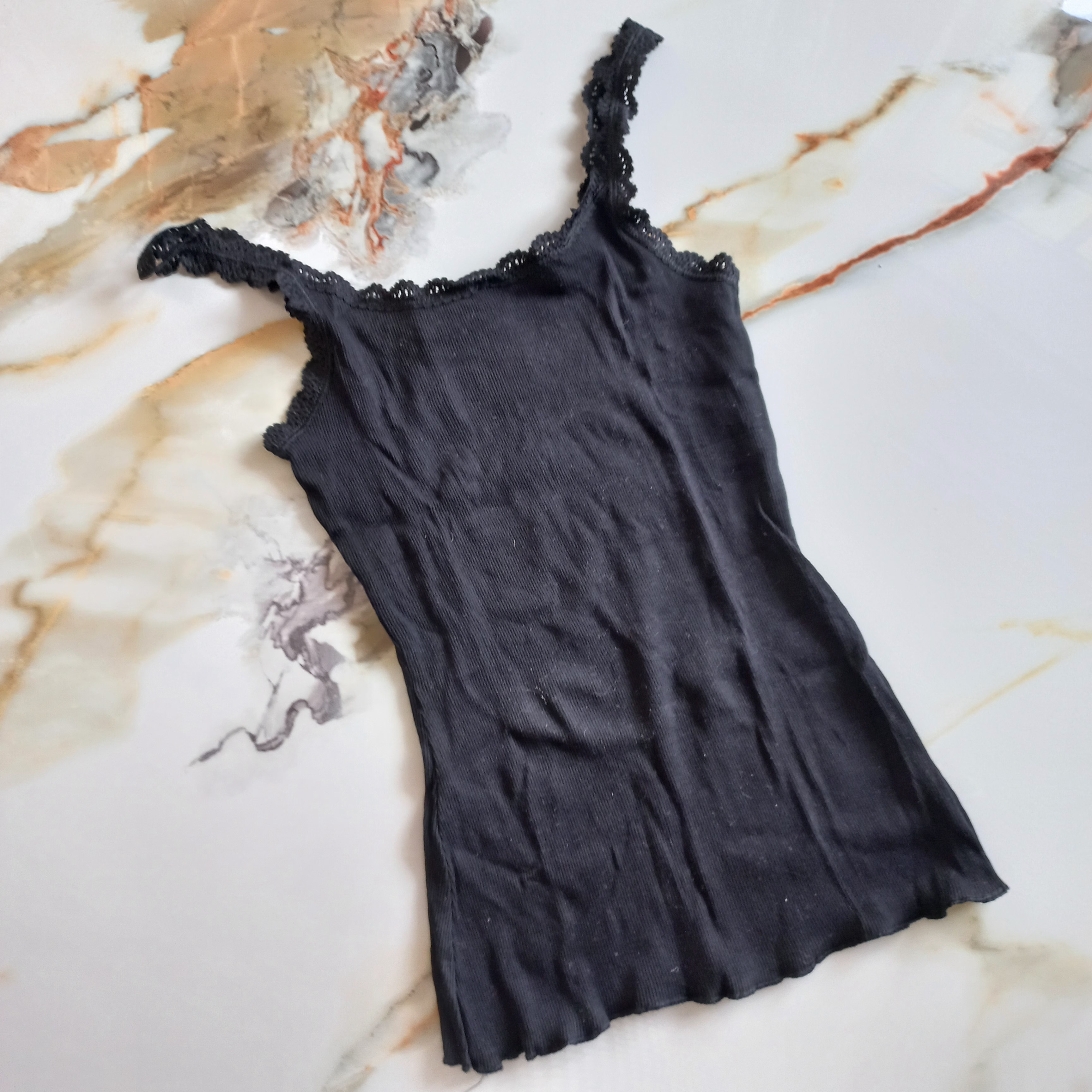 تاپ زنانه بندی نخی کبریتی توری مشکی برند اروپایی اسمارا آلمانی