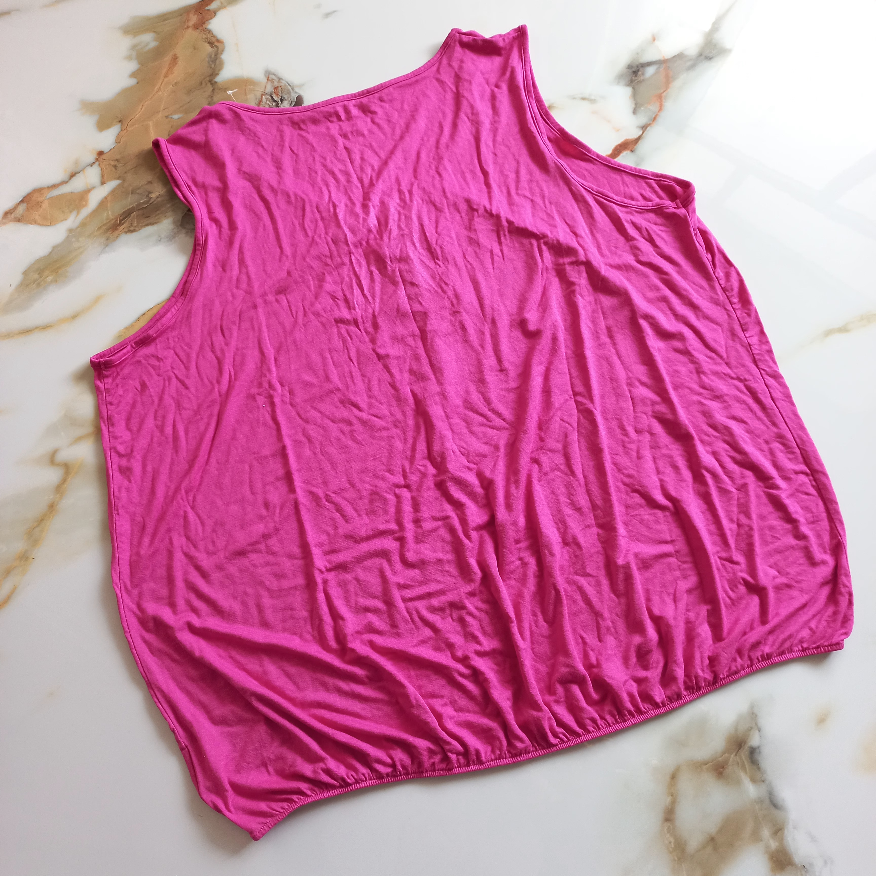 تاپ زنانه آستین حلقه ای لش پلی استر ویسکوز نخی صورتی برند اروپایی اسمارا آلمانی