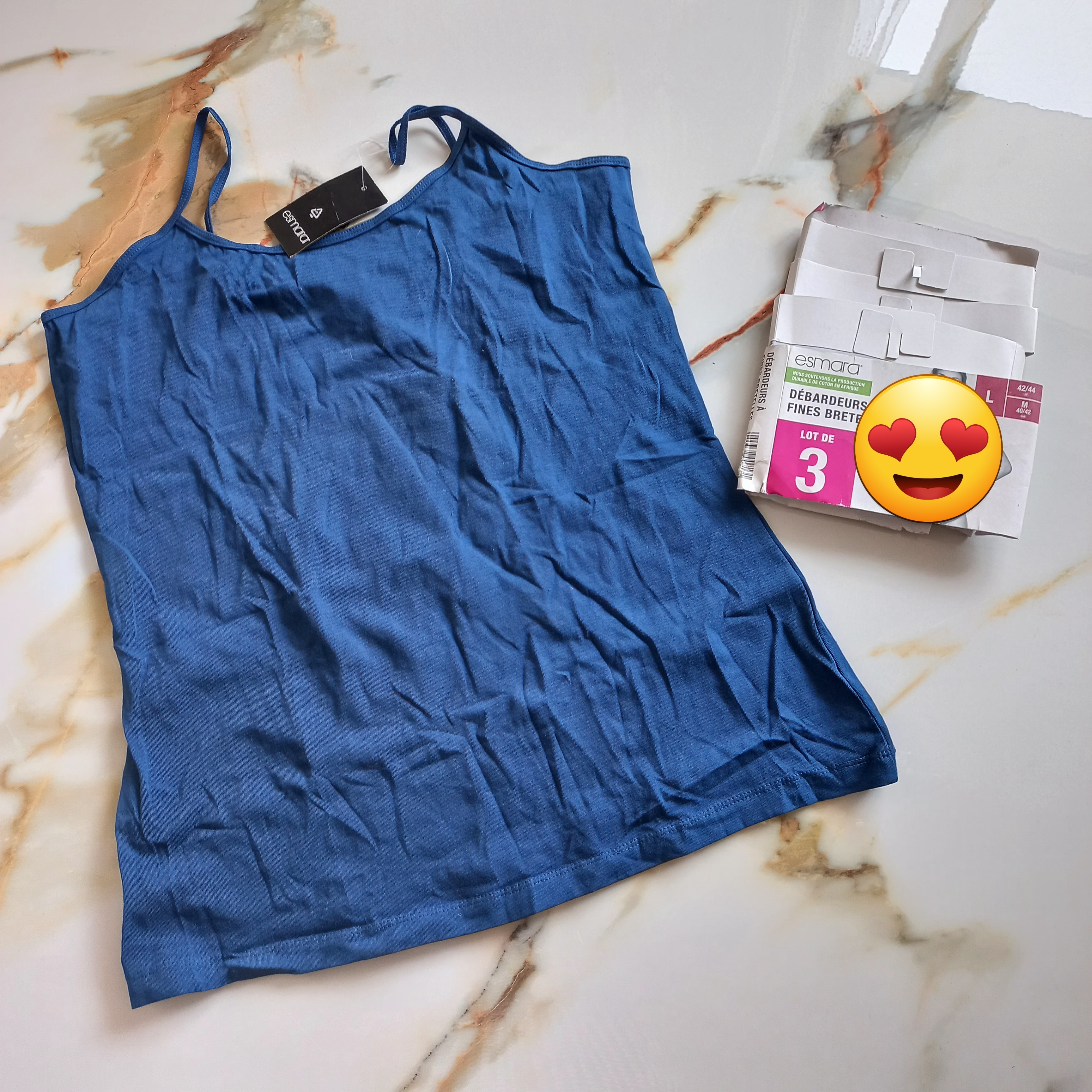 تاپ زنانه بندی نخی آبی سرمه ای برند اروپایی اسمارا آلمانی