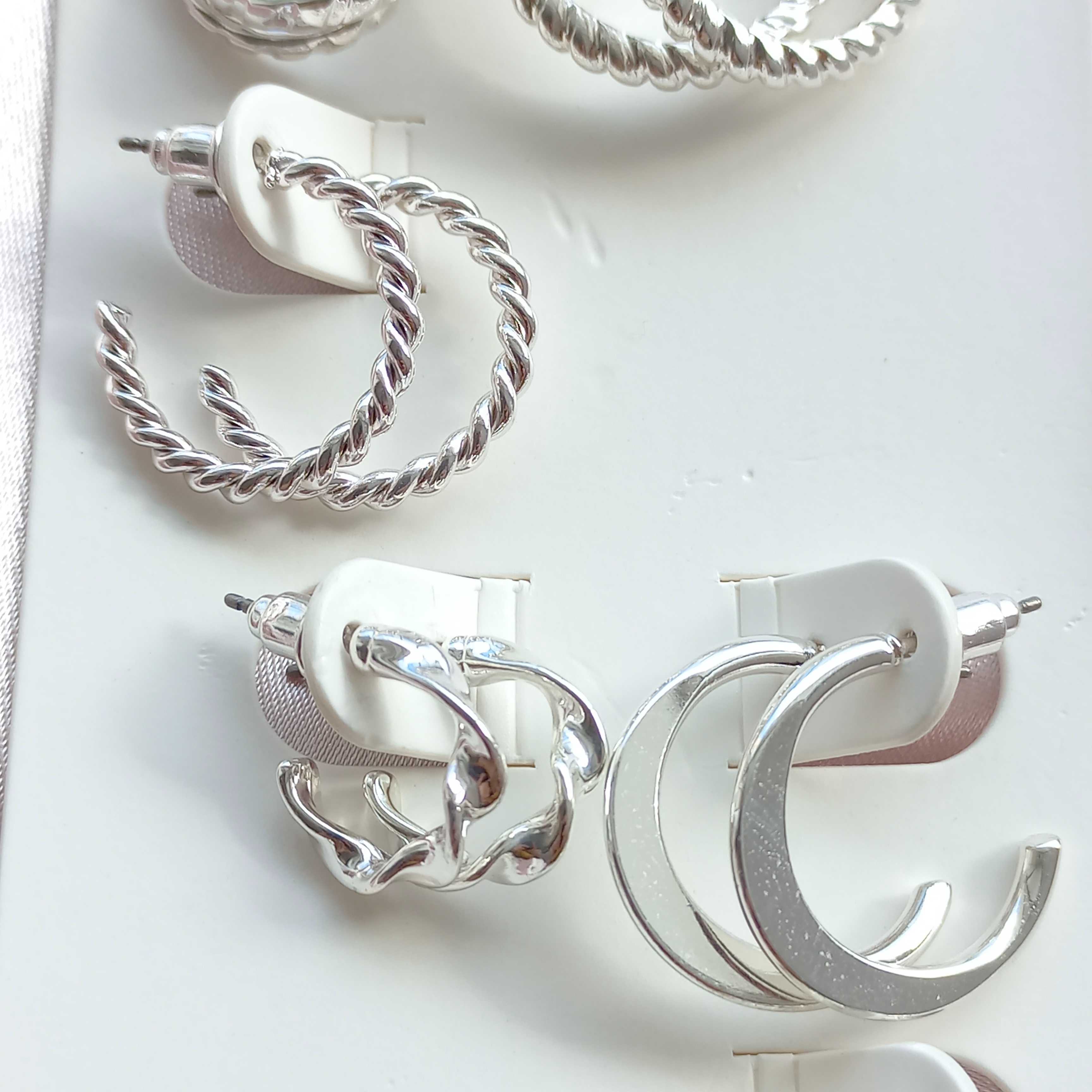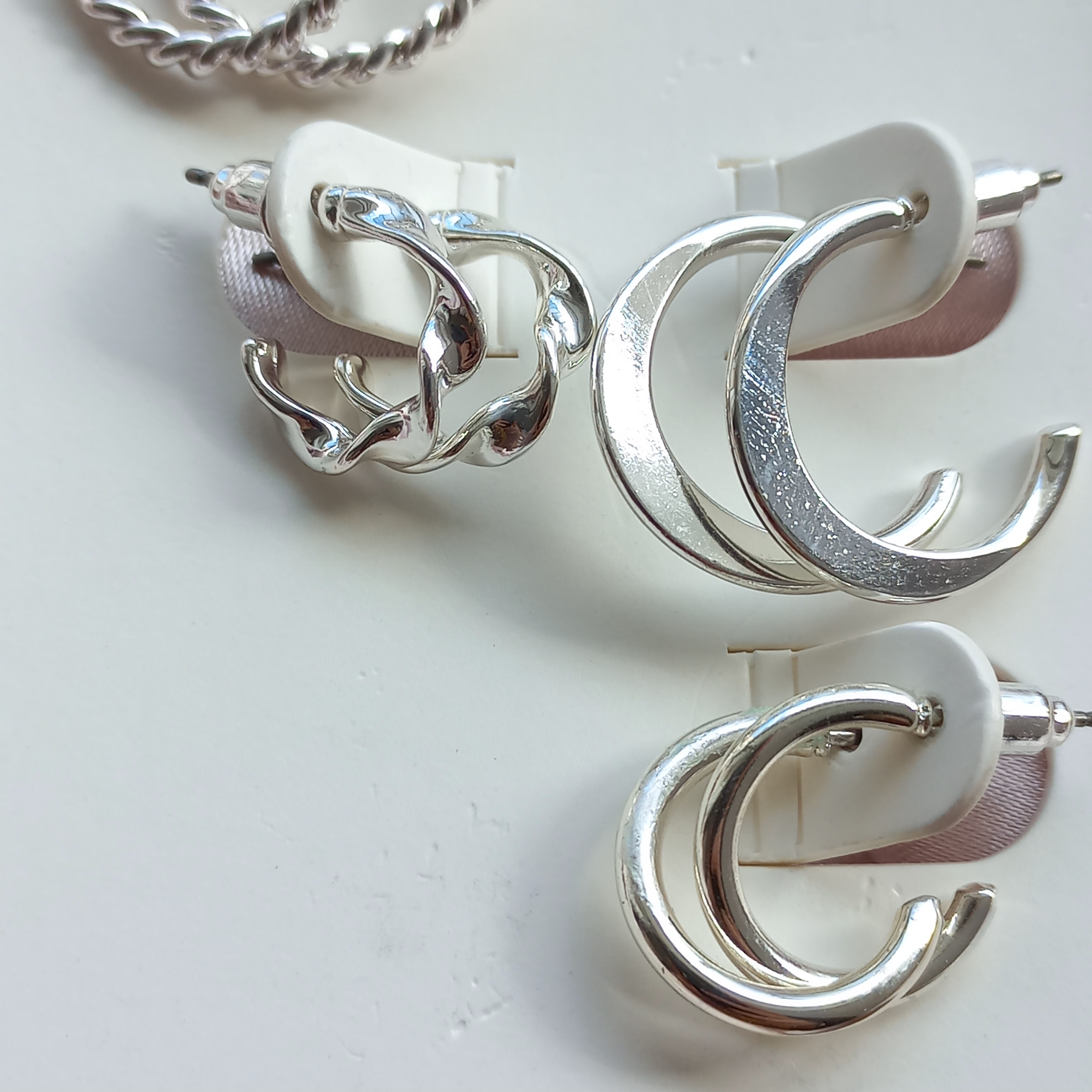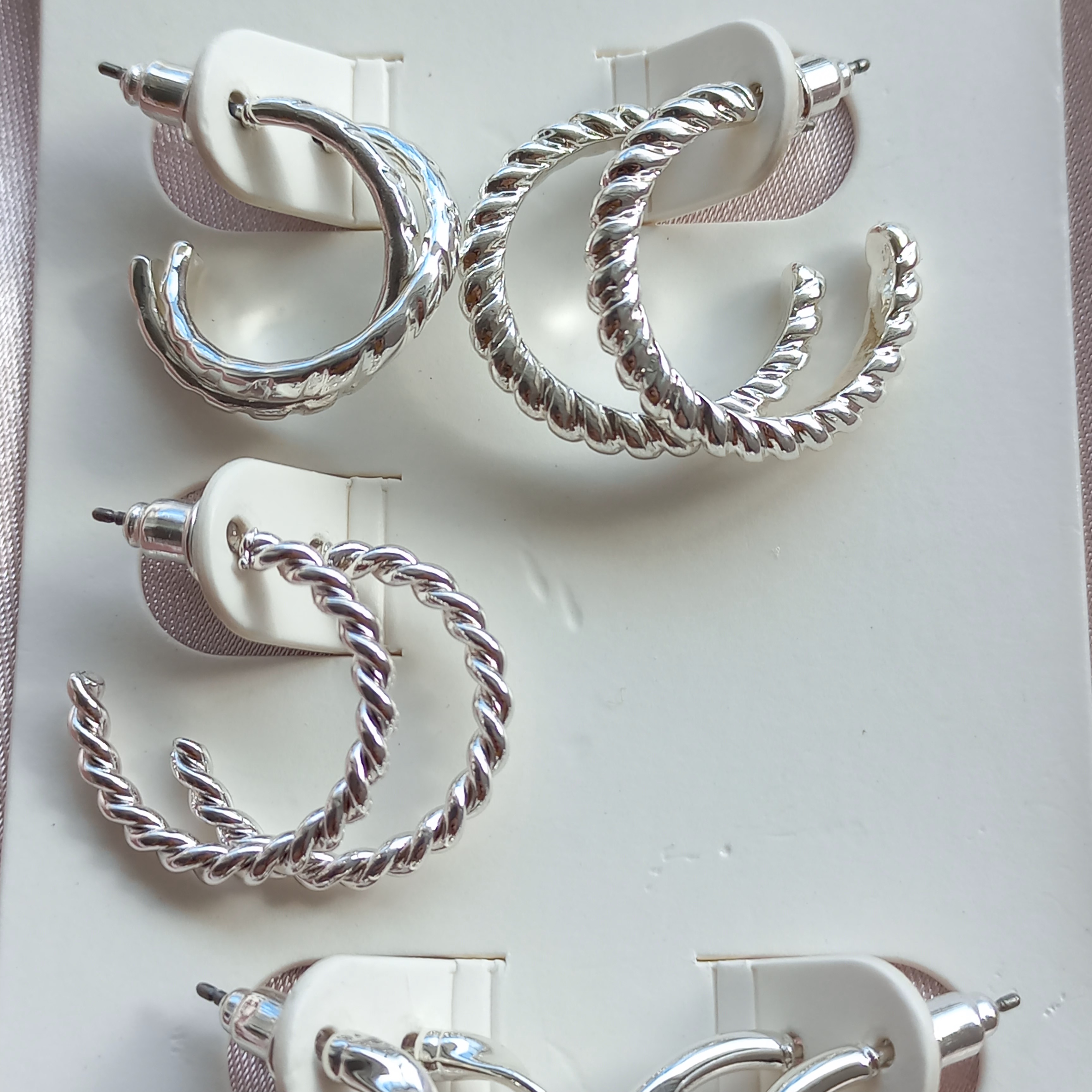 پک گوشواره زنانه نیم حلقه ای نقره ای برند اروپایی ضدحساسیت