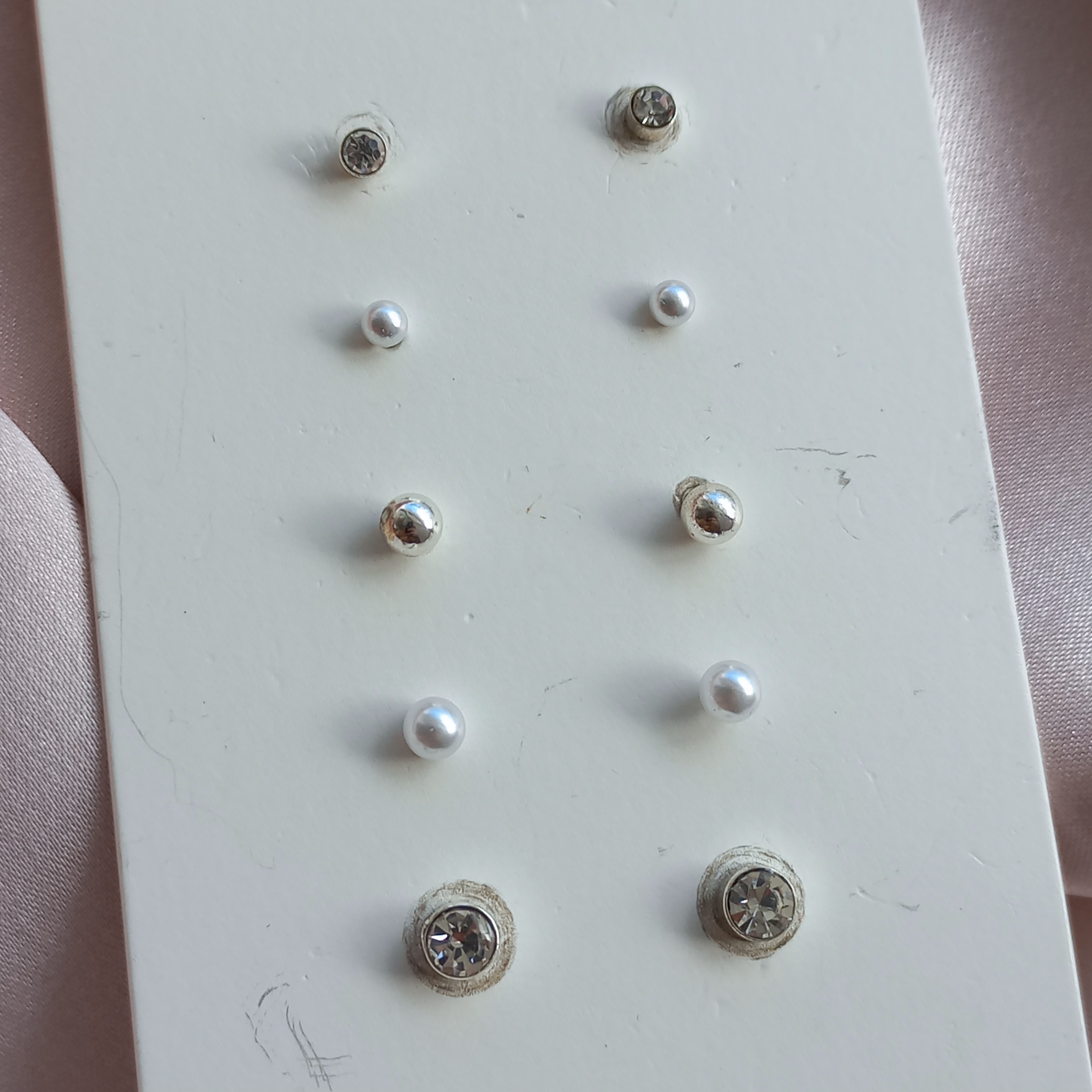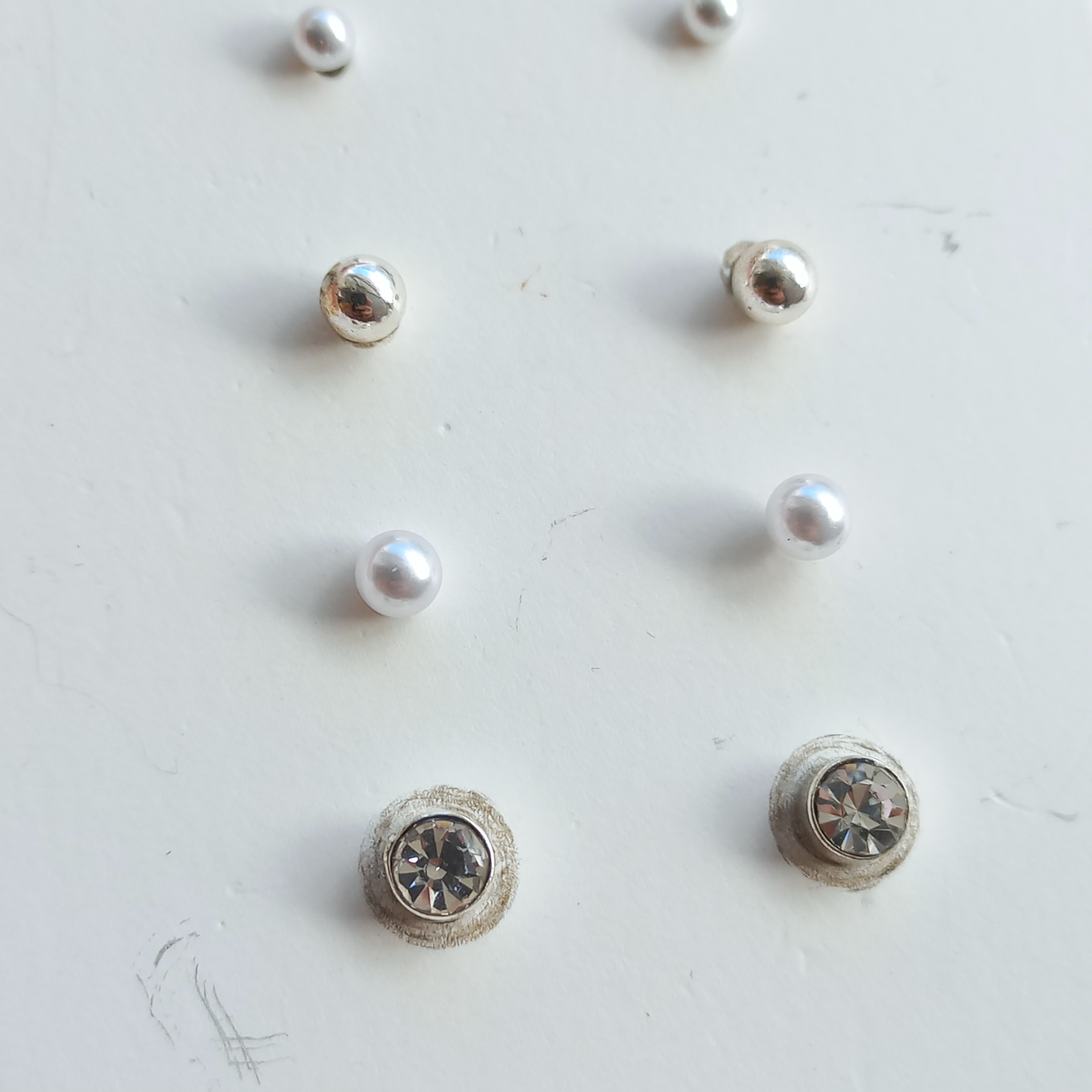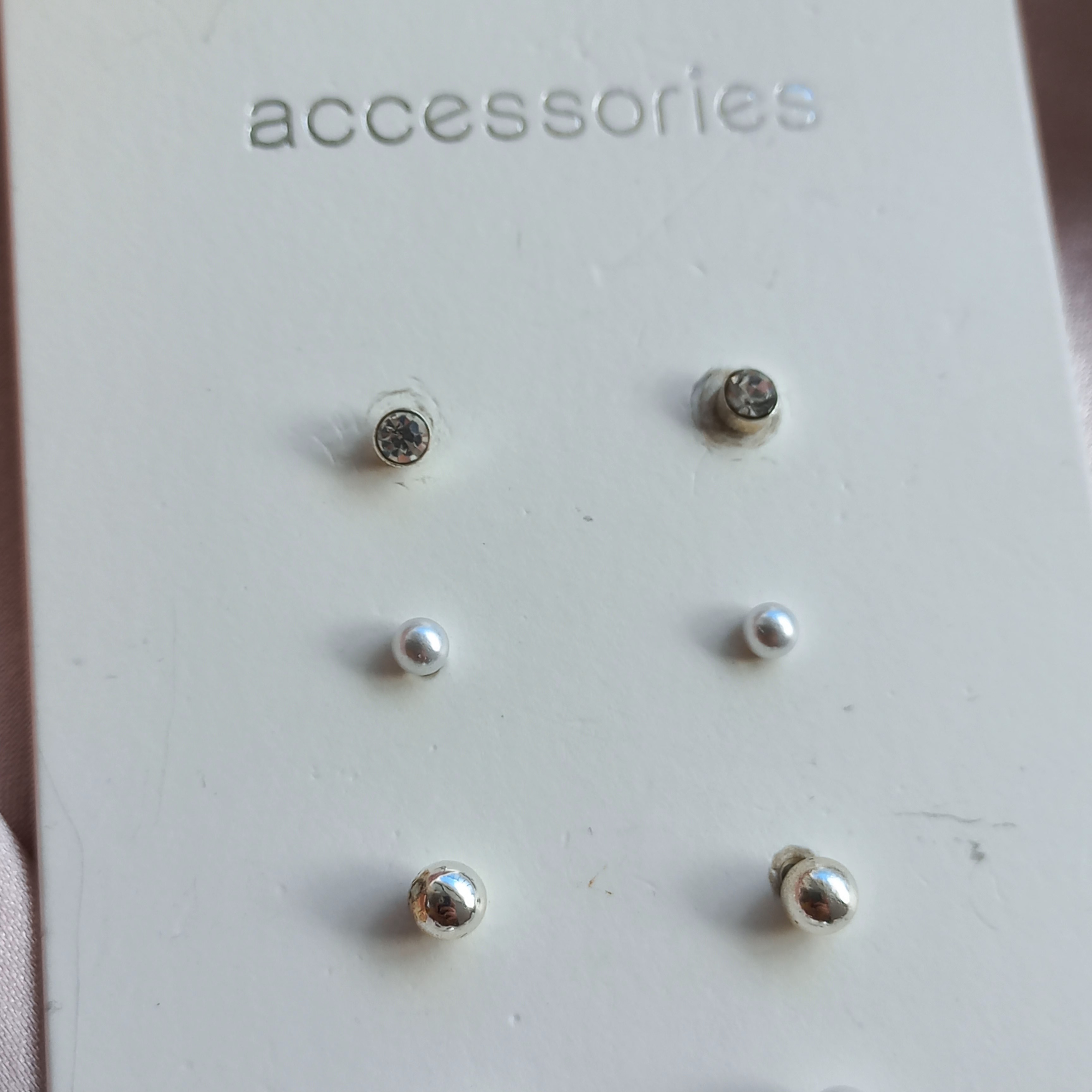 پک گوشواره زنانه میخی مروارید و نگین نقره ای برند اروپایی accessories ضدحساسیت