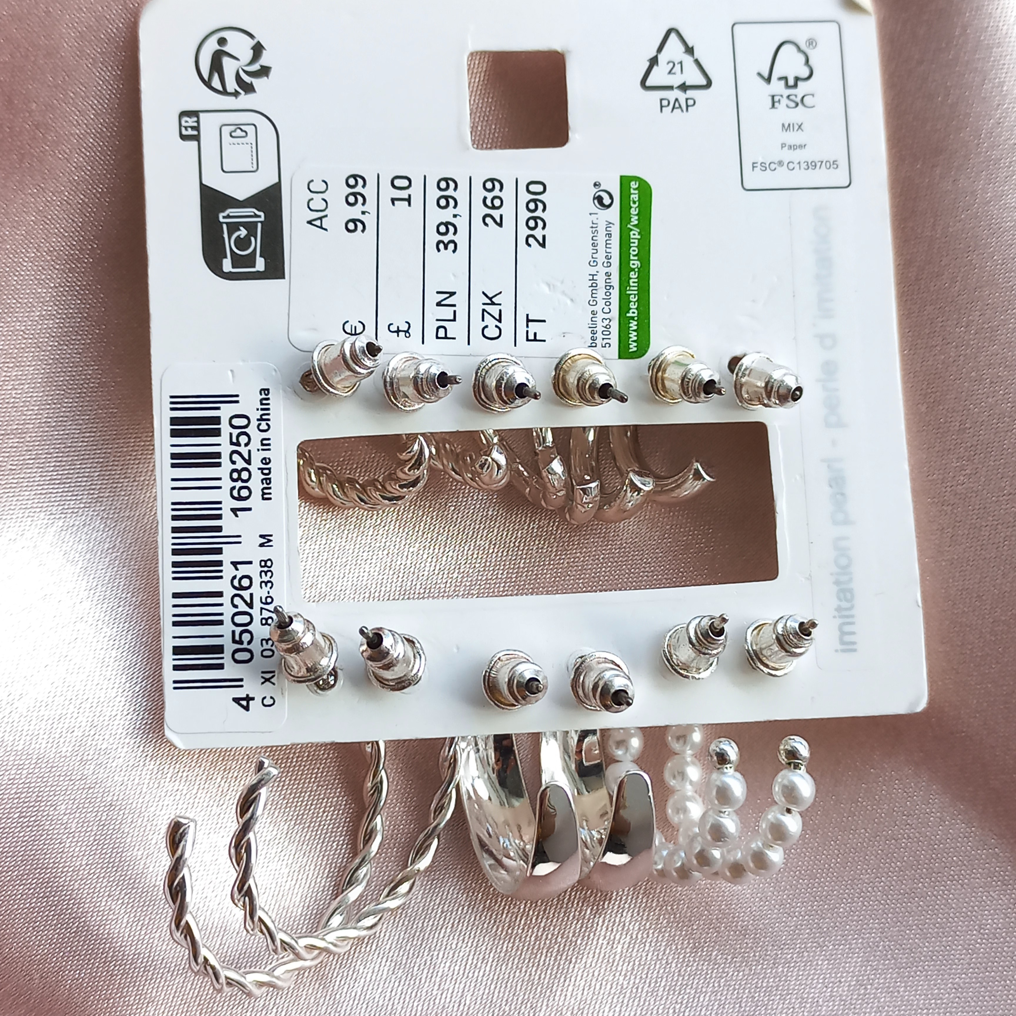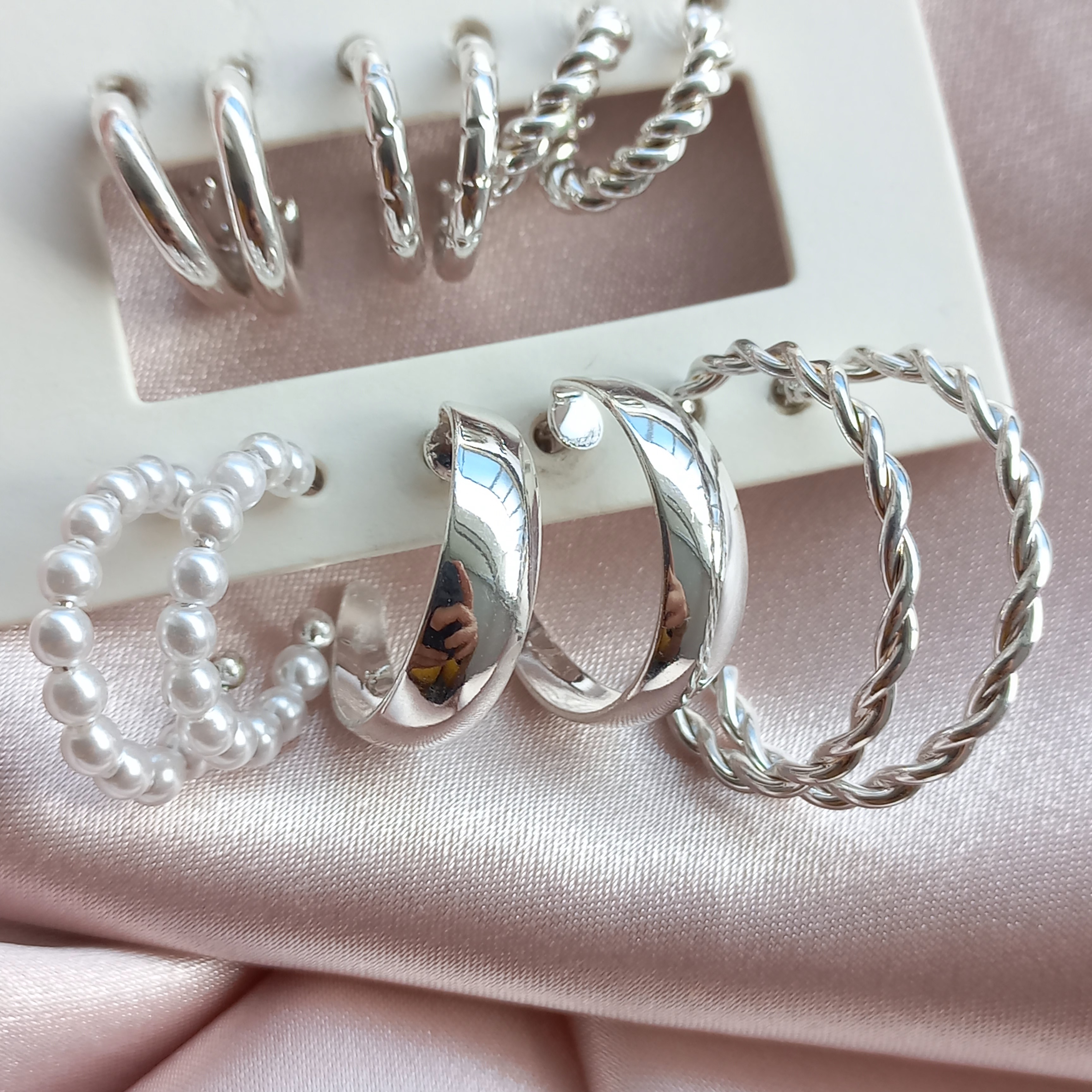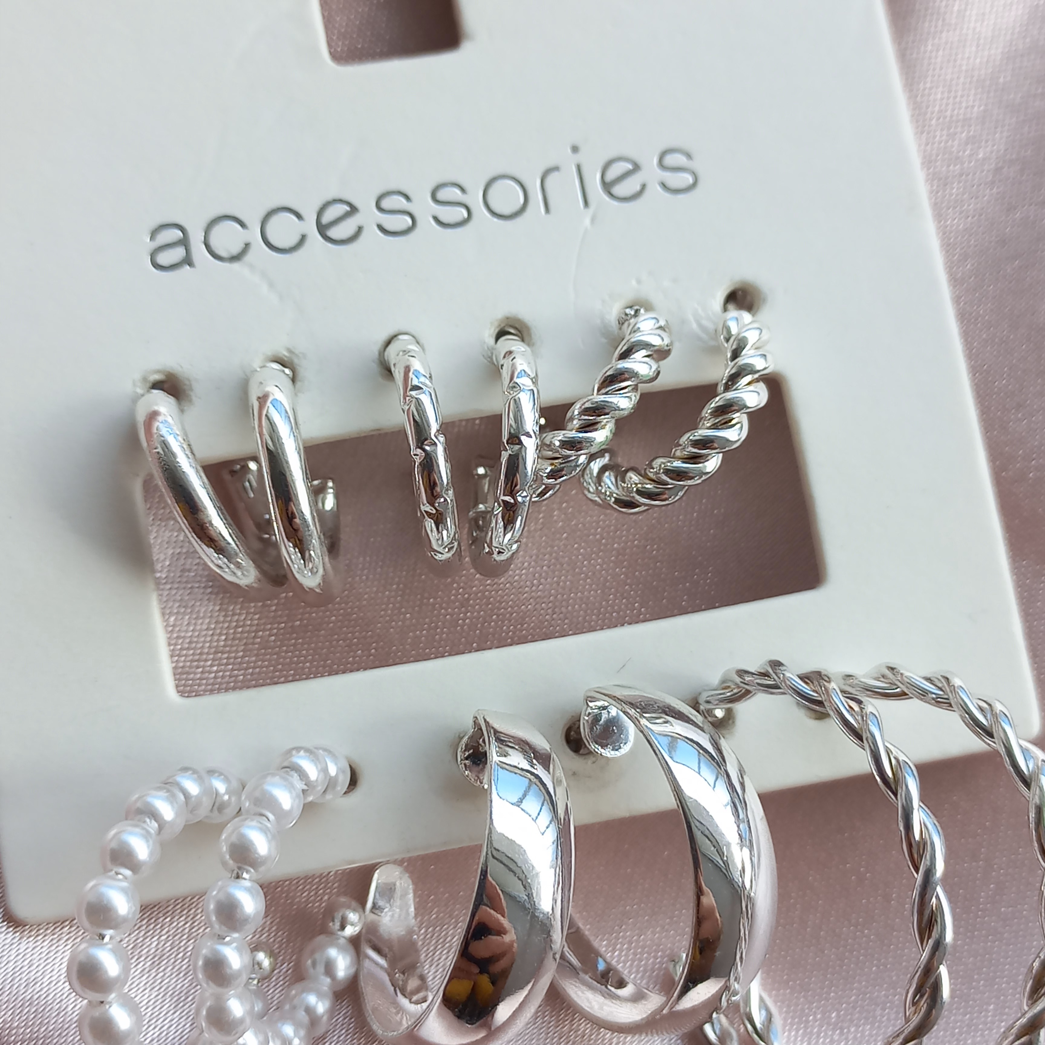 پک گوشواره زنانه نیم حلقه ای نقره ای برند اروپایی accessories ضدحساسیت