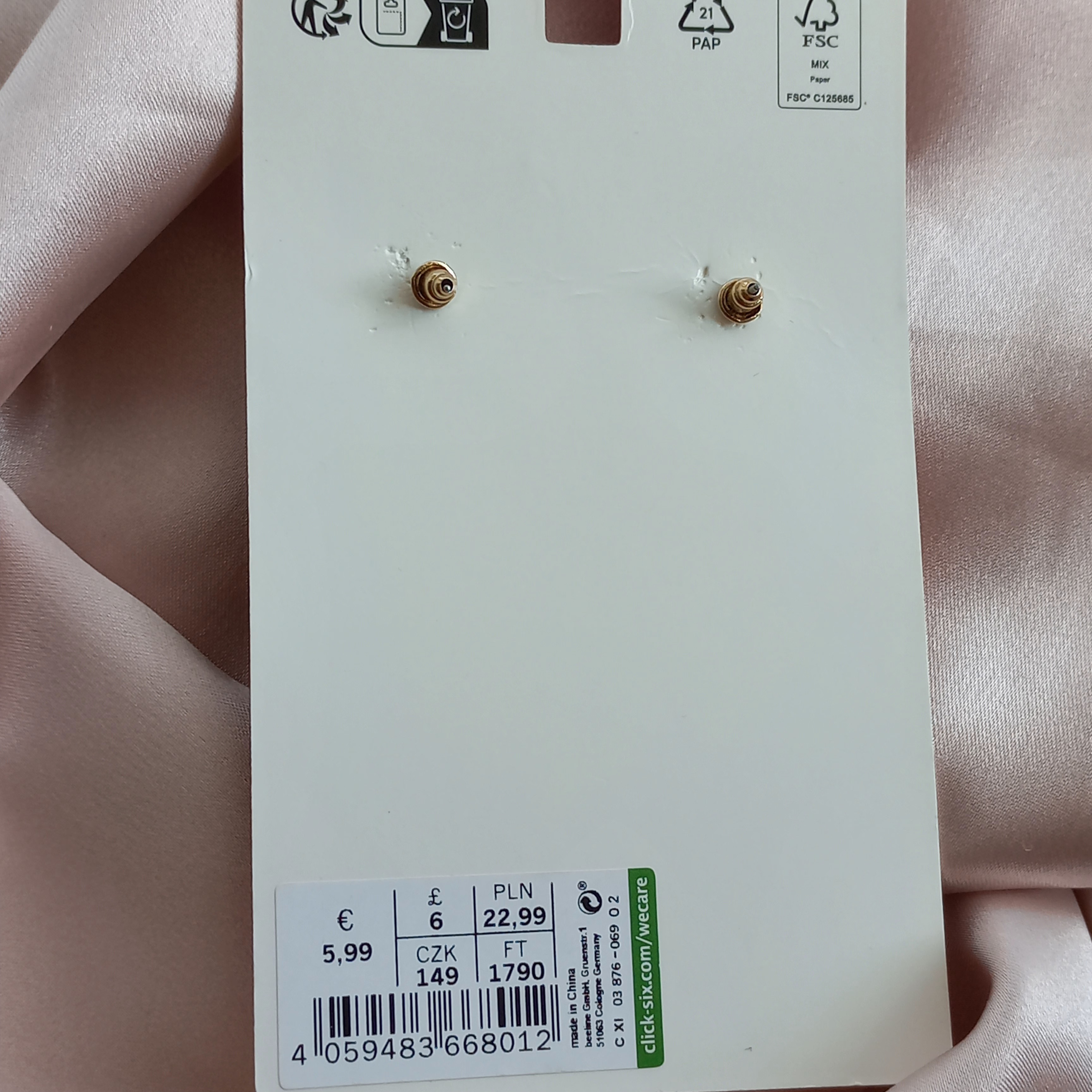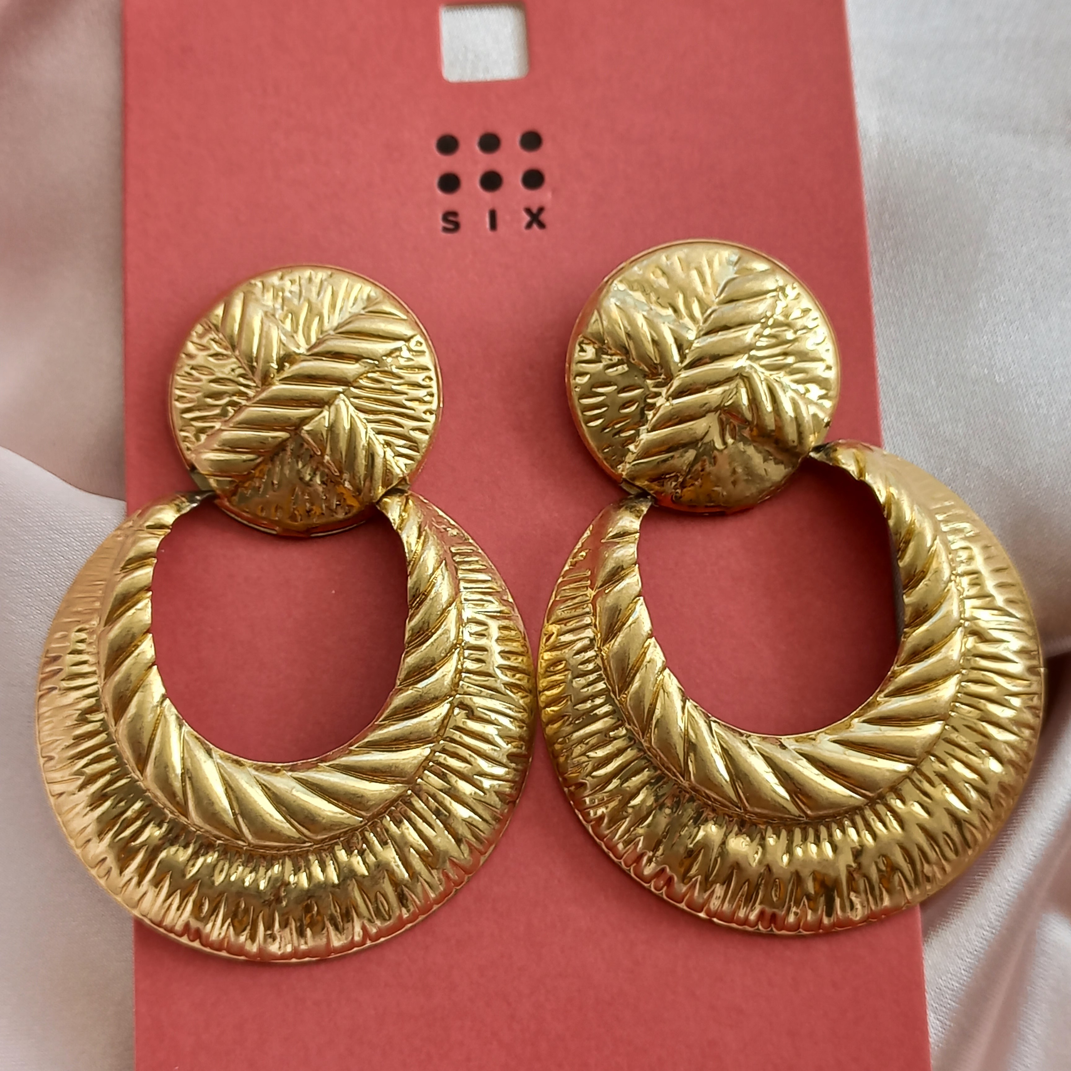 گوشواره زنانه میخی آویز طلایی برند اروپایی six ضدحساسیت