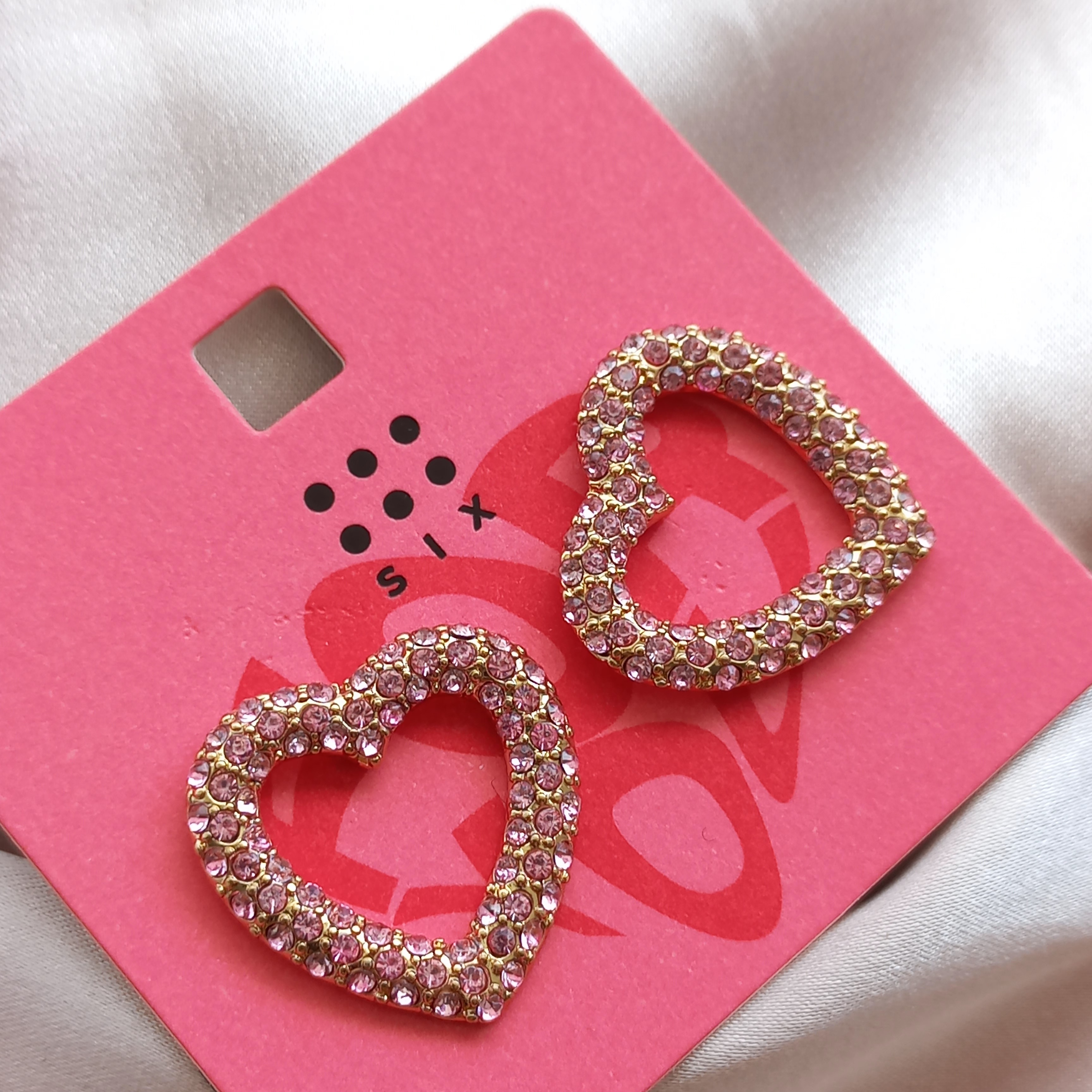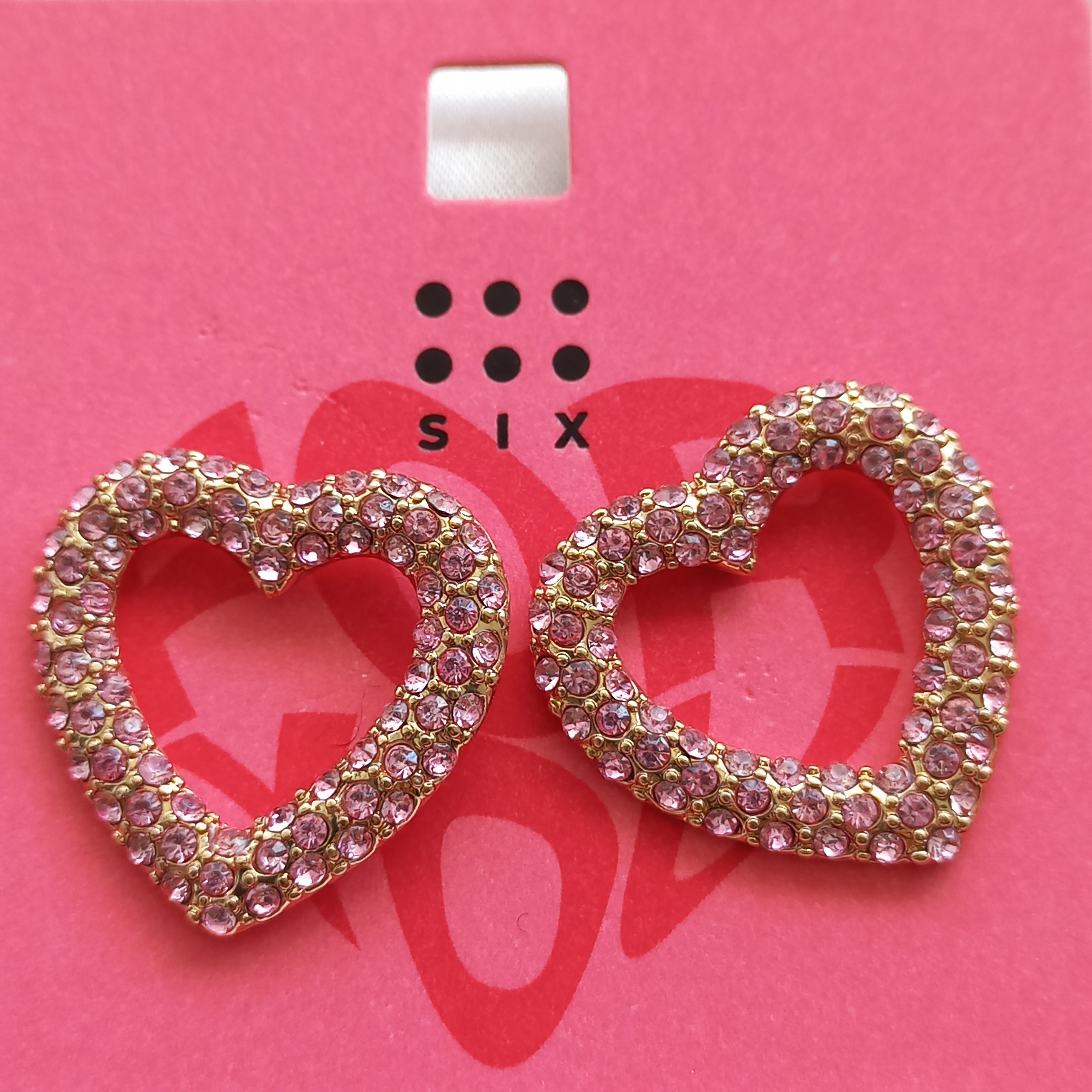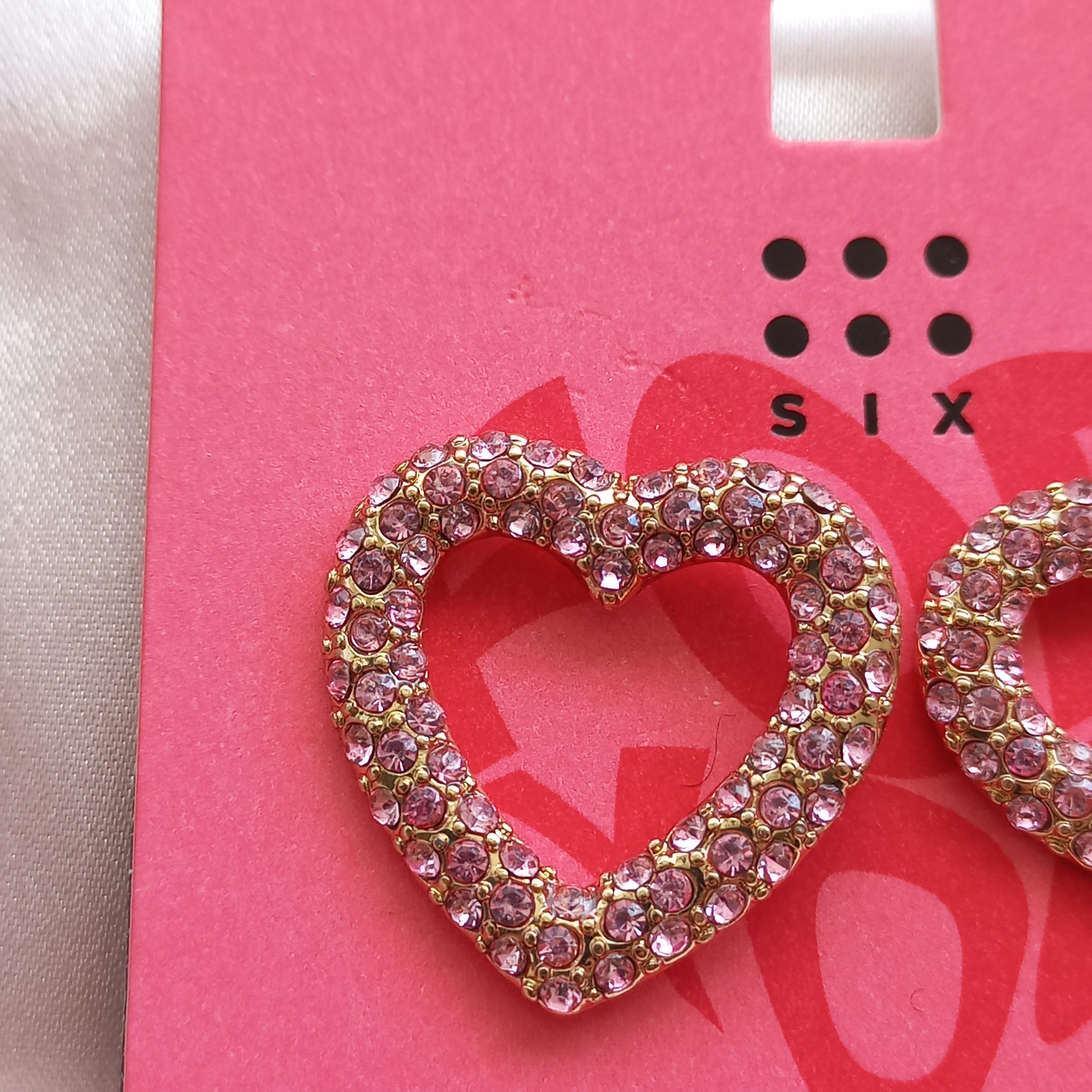 گوشواره زنانه میخی قلب نگین صورتی برند اروپایی six ضدحساسیت