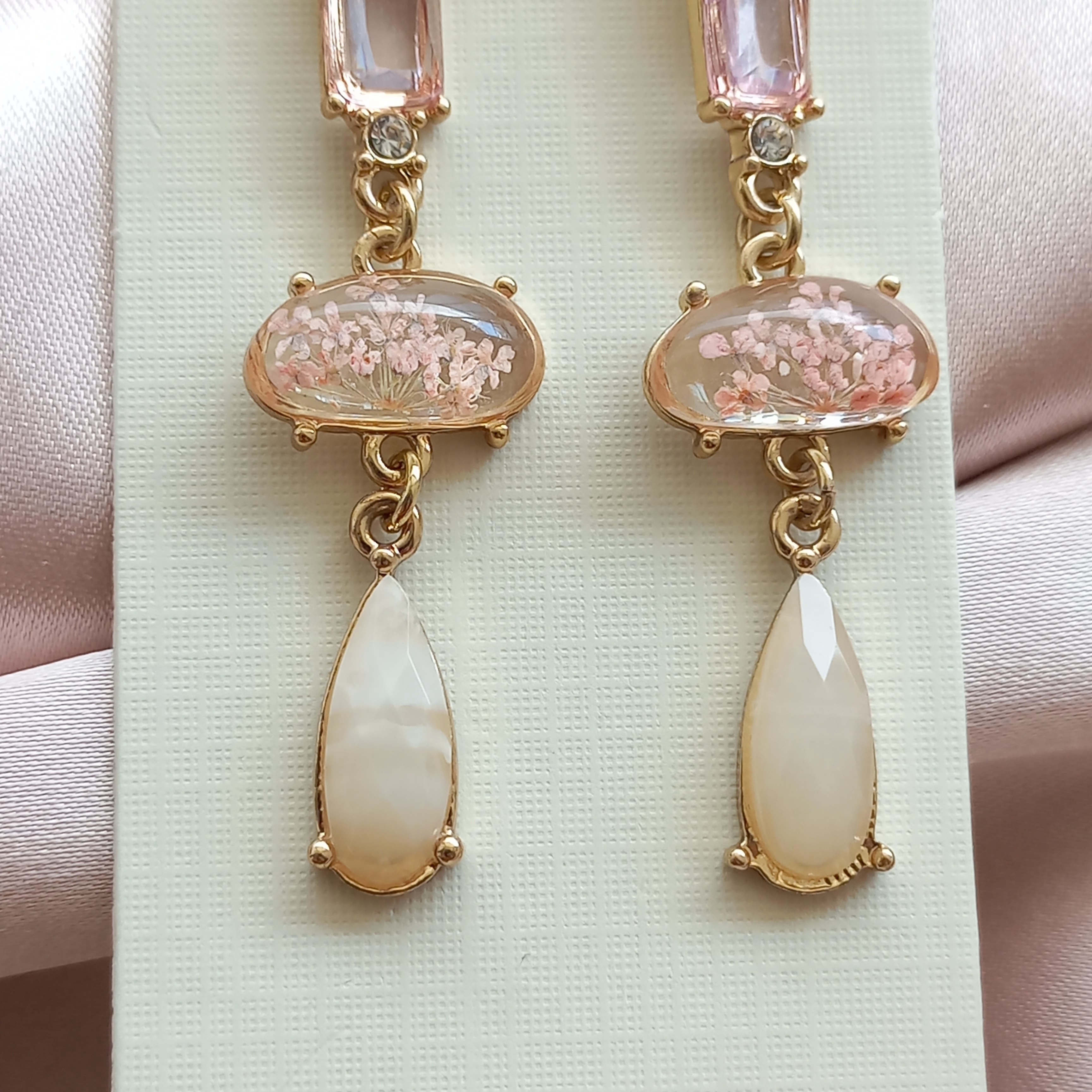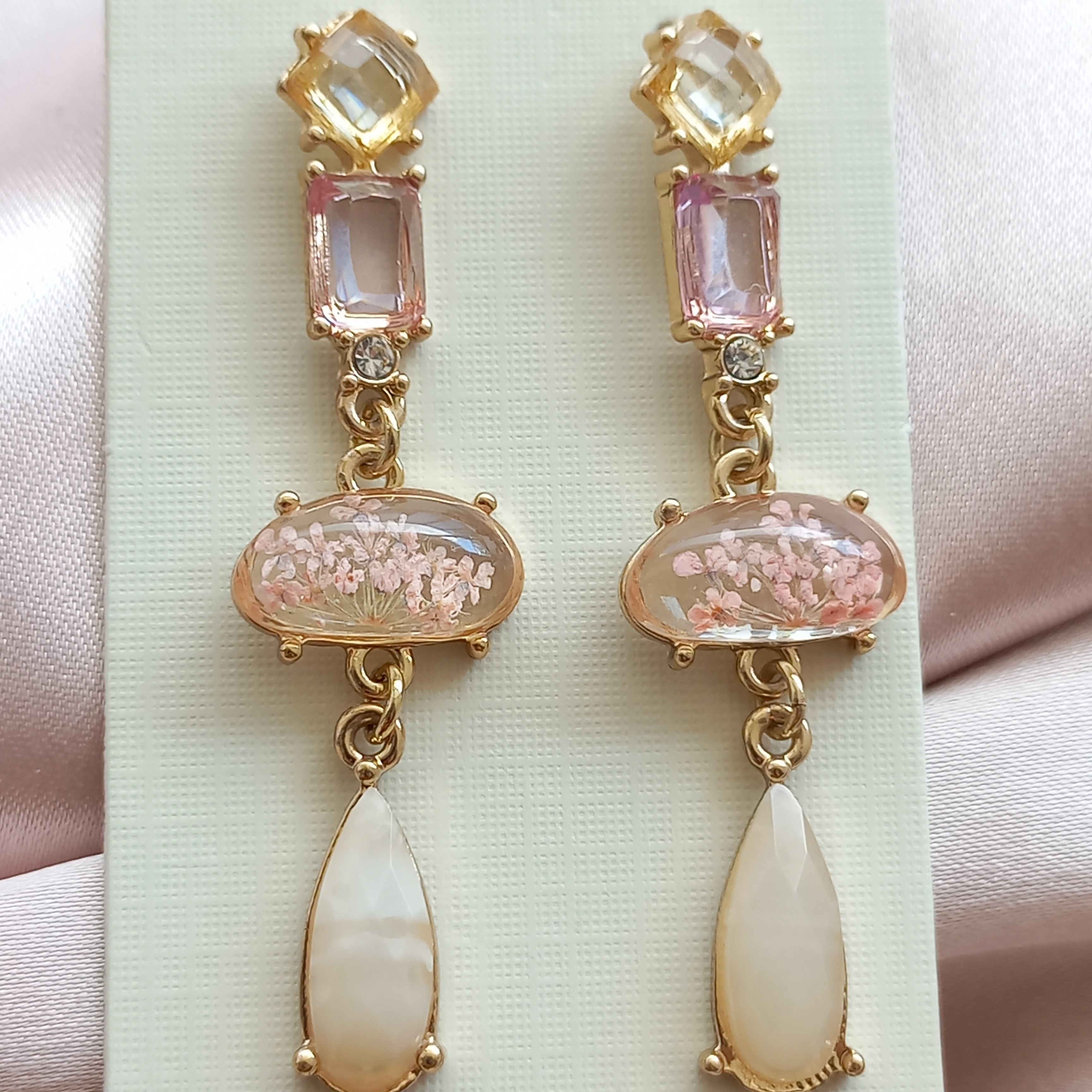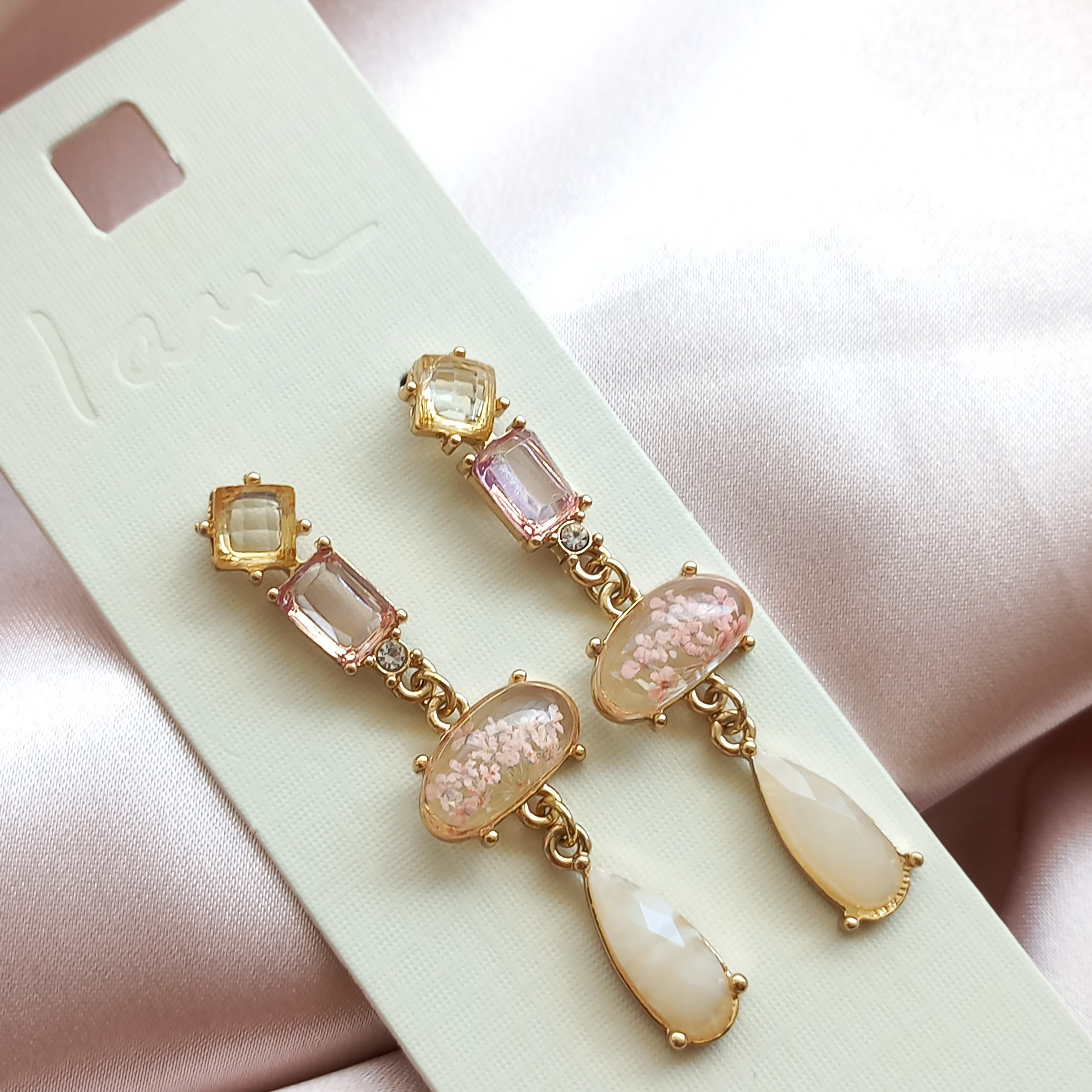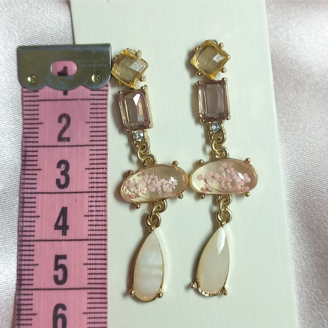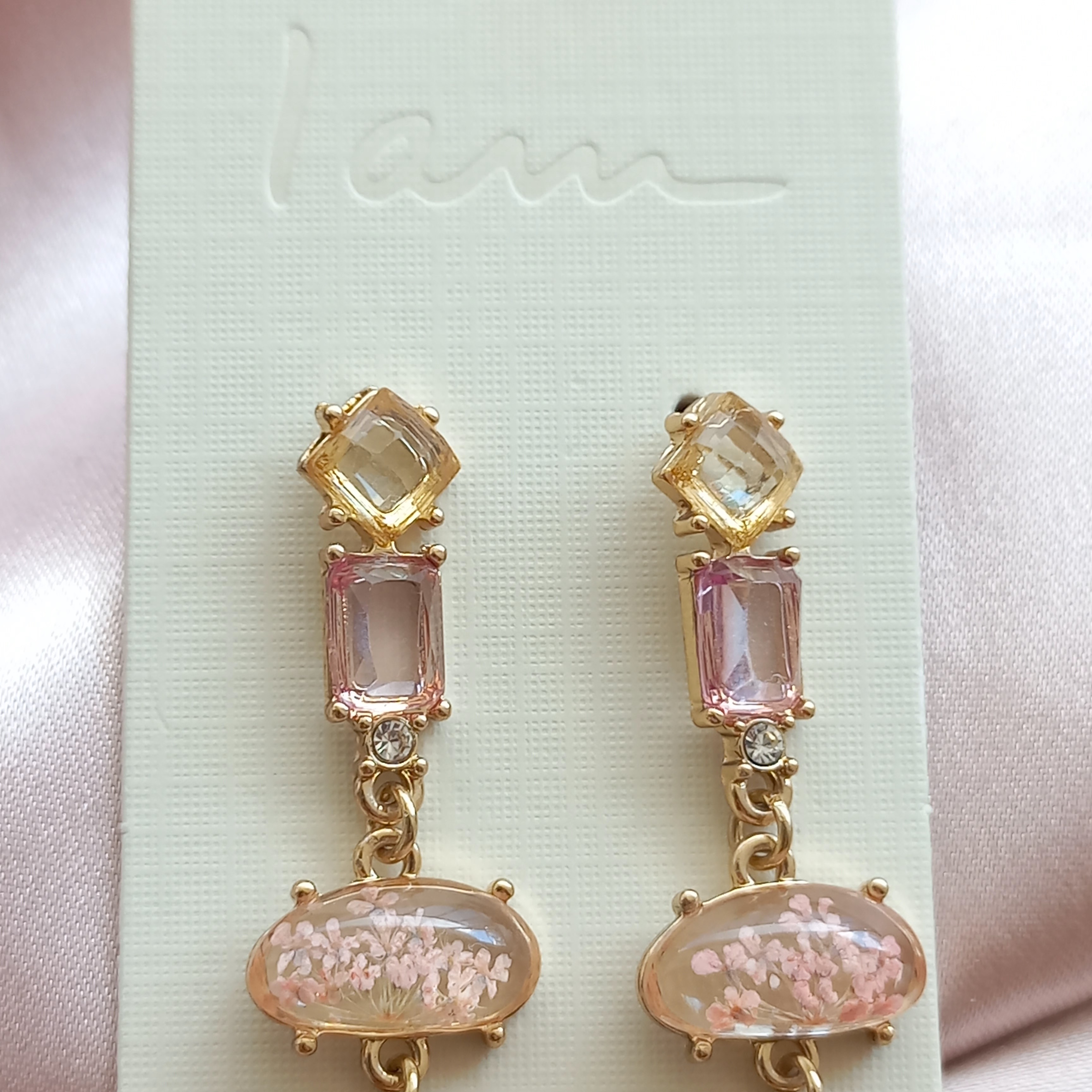 گوشواره زنانه میخی آویز سنگی رزین طلایی برند اروپایی Iam ضدحساسیت