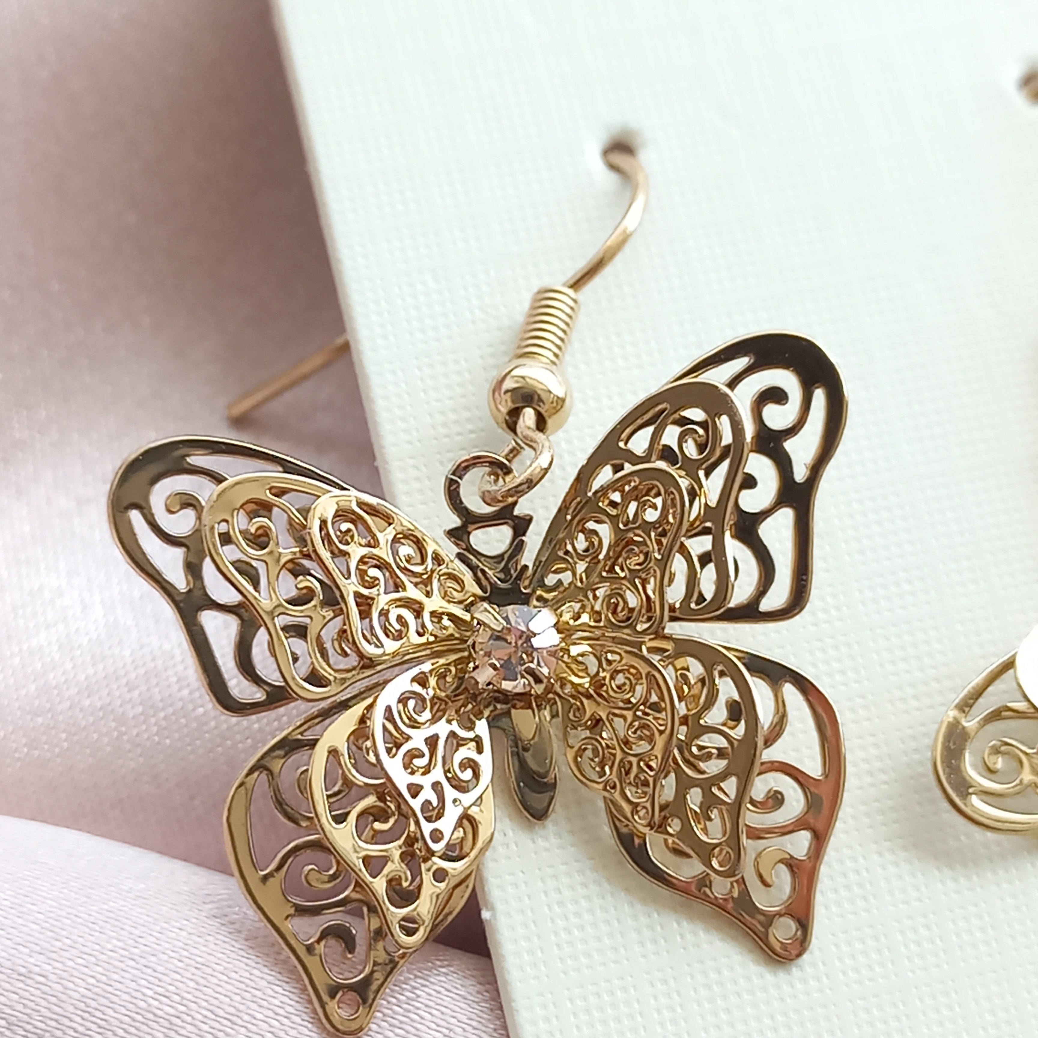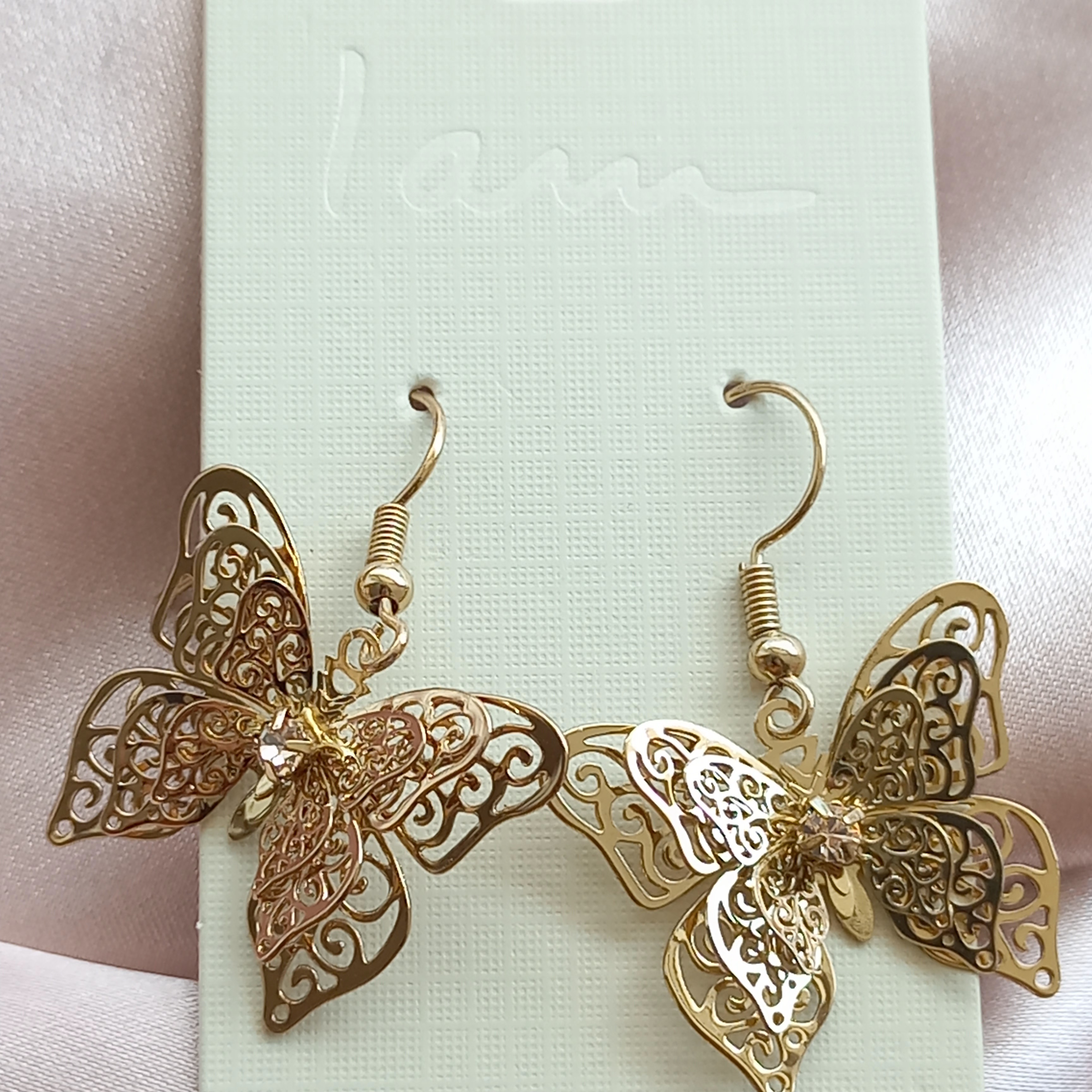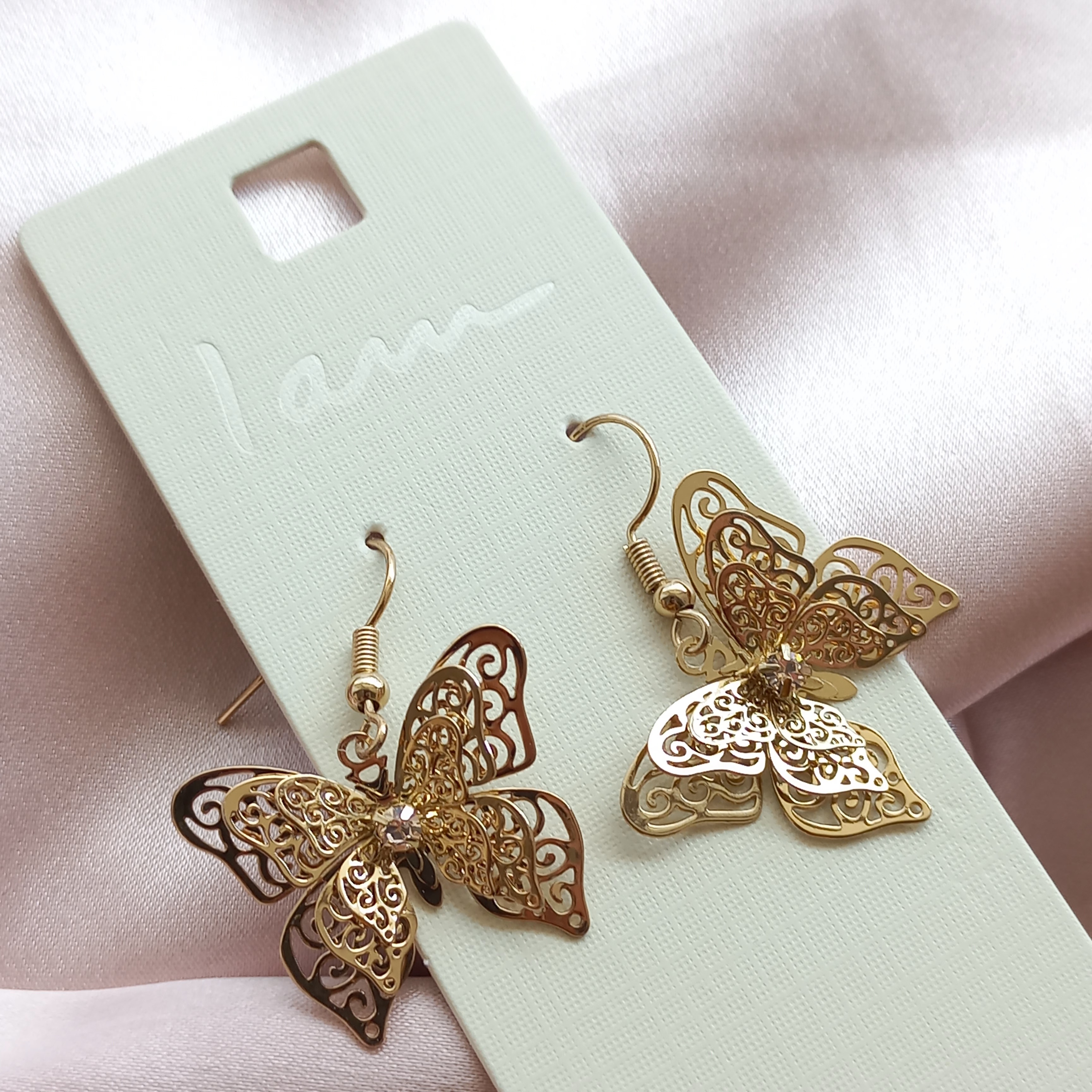 گوشواره زنانه آویز پروانه نگین دار طلایی برند اروپایی Iam ضدحساسیت