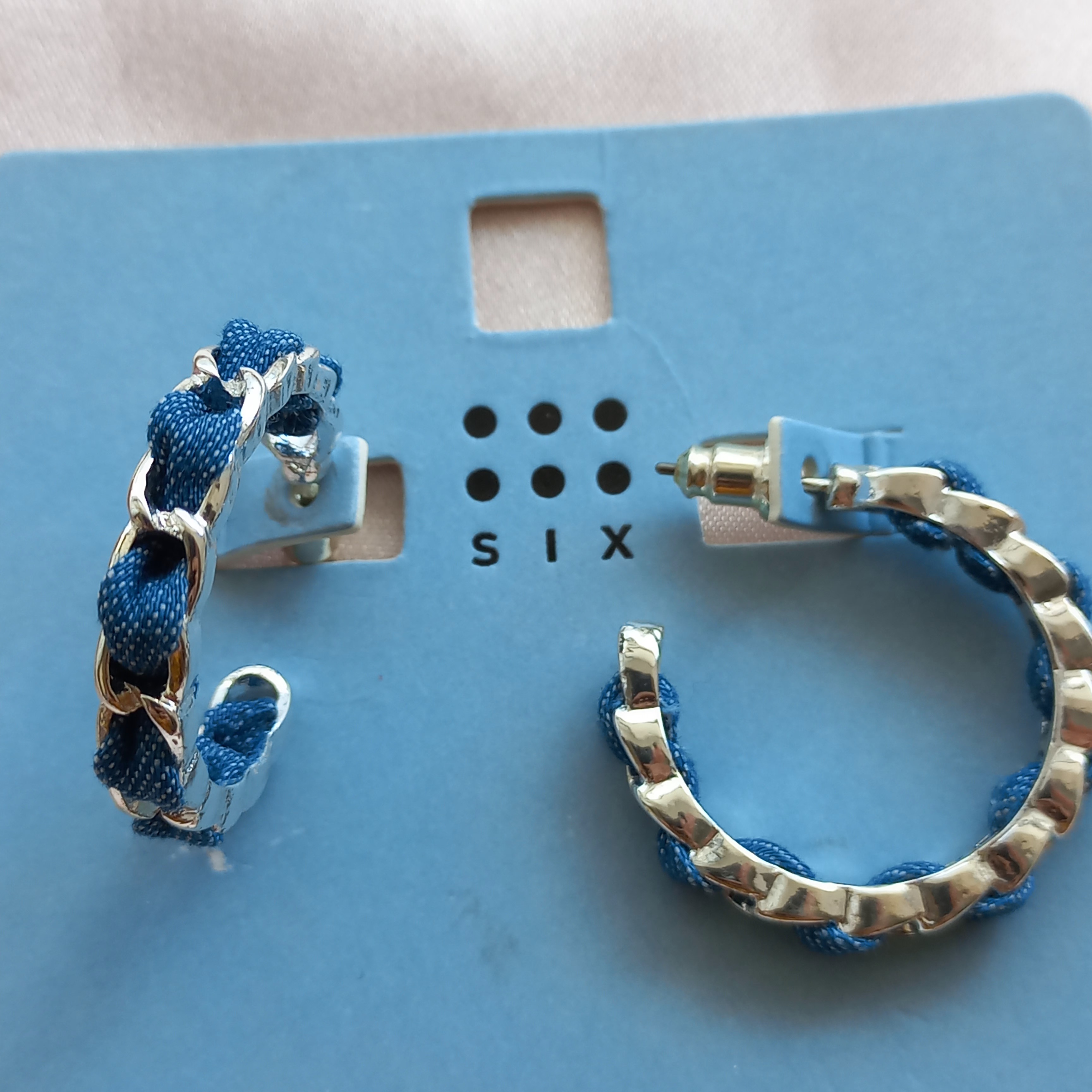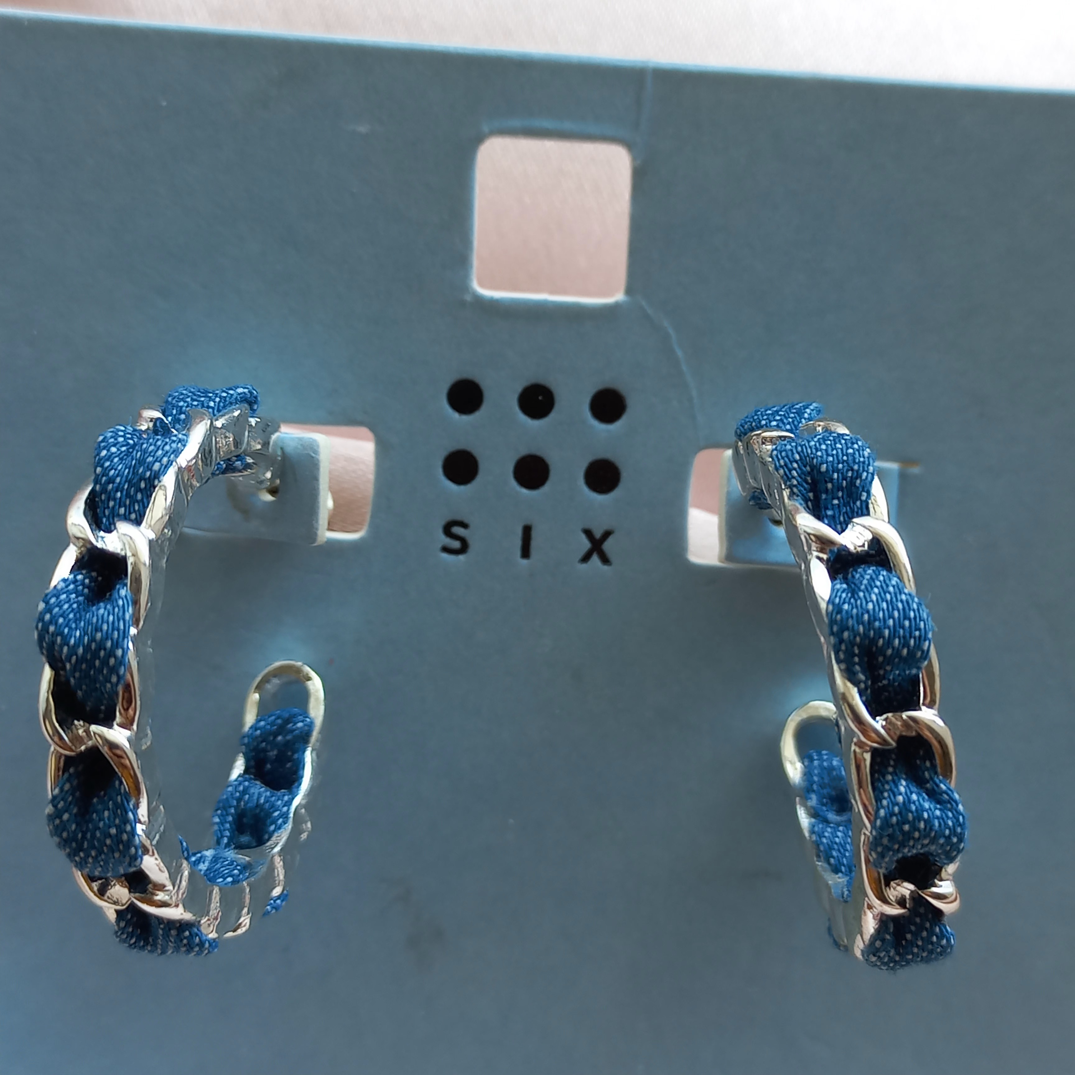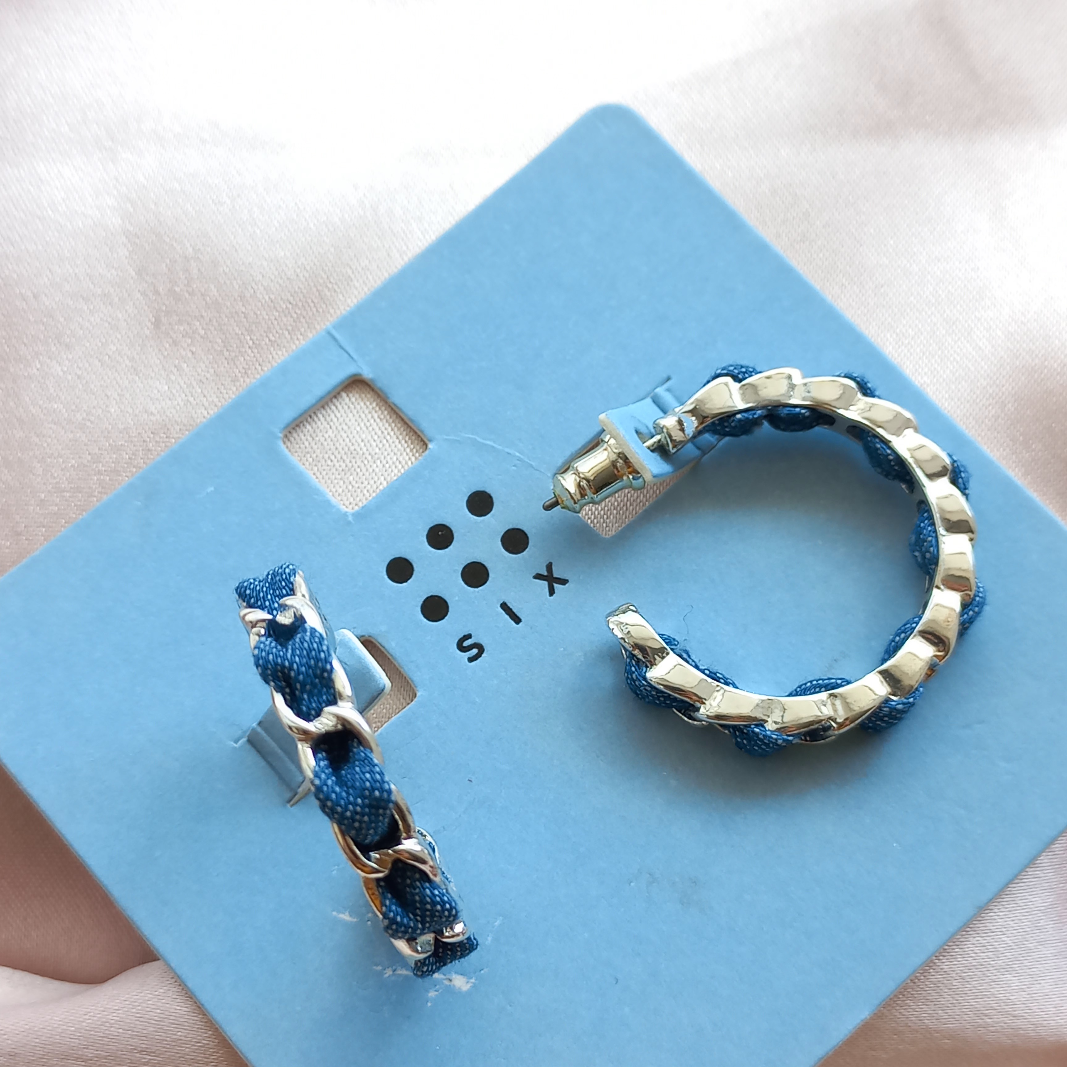 گوشواره زنانه نیم حلقه کارتیر سرمه ای نقره ای برند اروپایی six ضدحساسیت