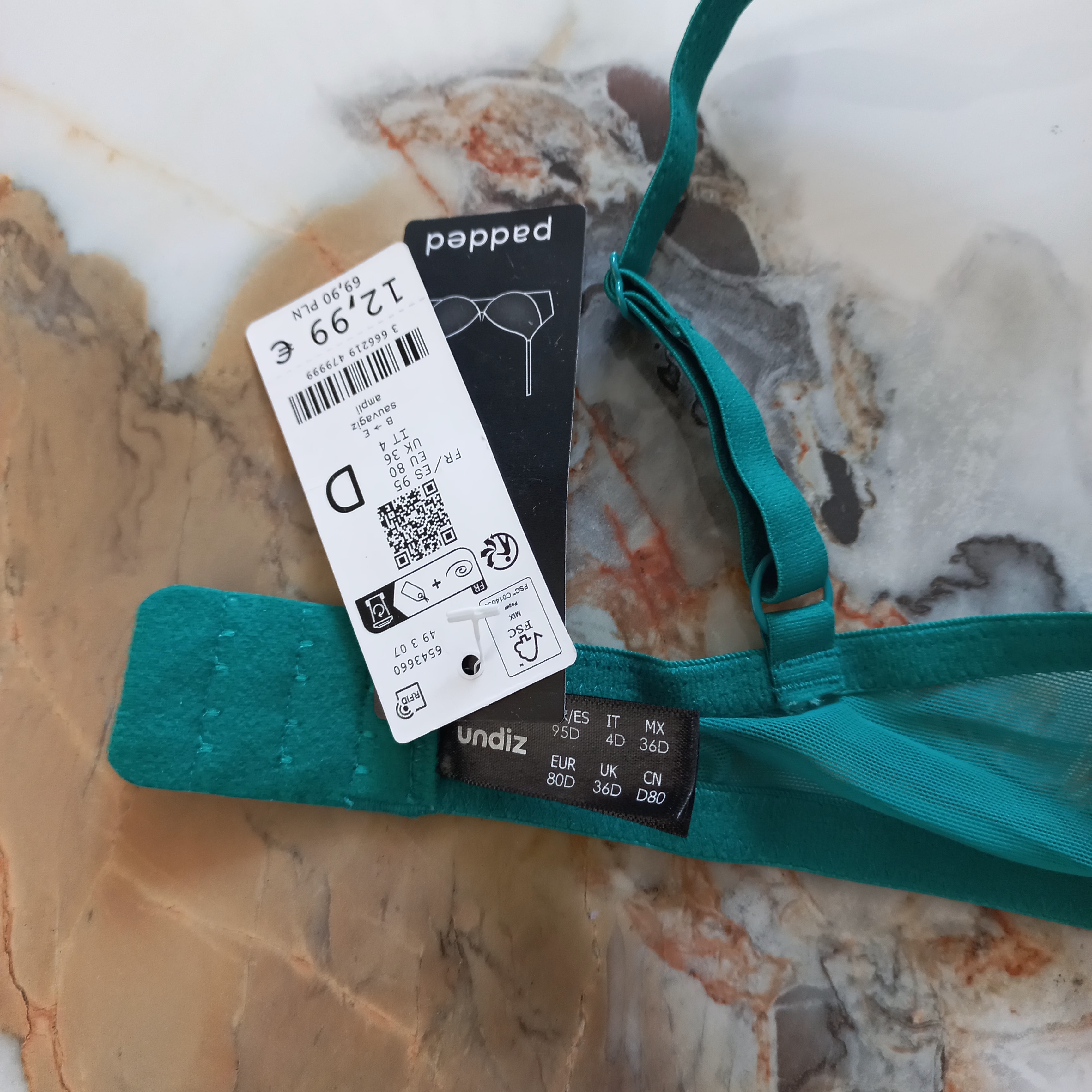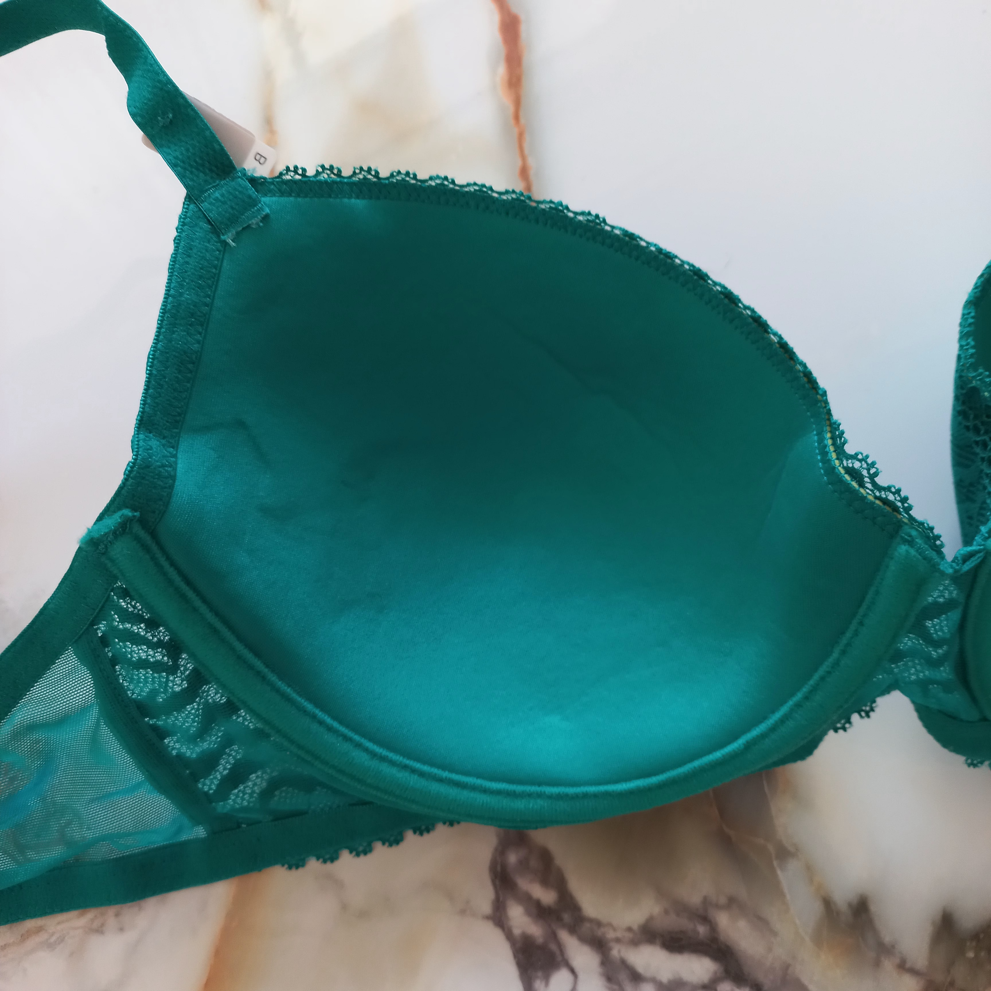 سوتین زنانه اسفنجی فنردار توری سبز برند اروپایی UNDIZ