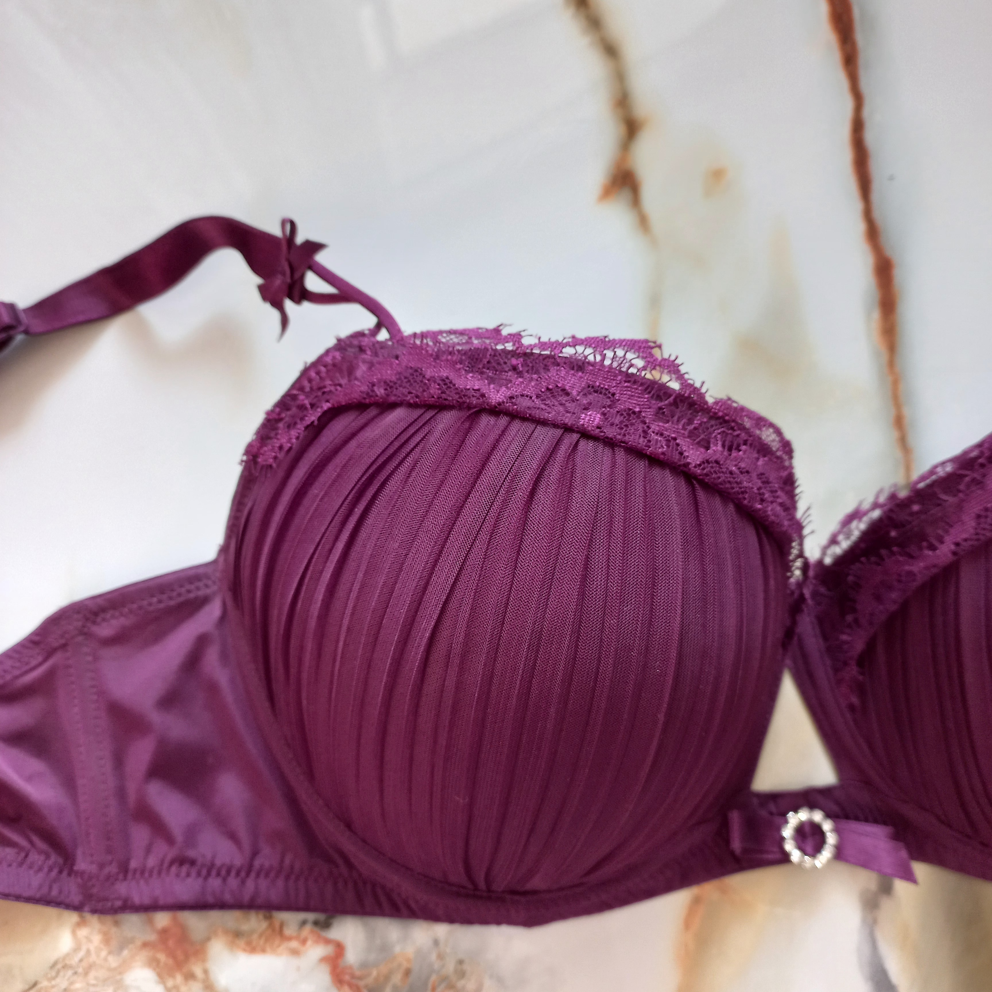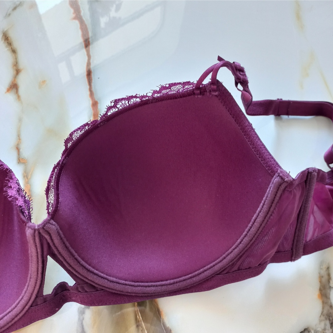 سوتین زنانه اسفنجی فنردار پلی استر توری بادمجانی برند اروپایی C&A