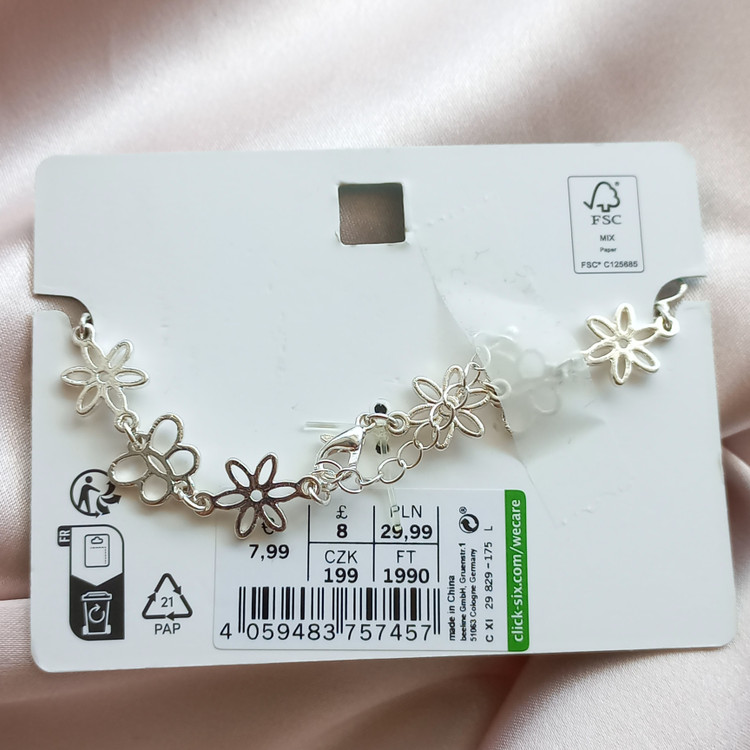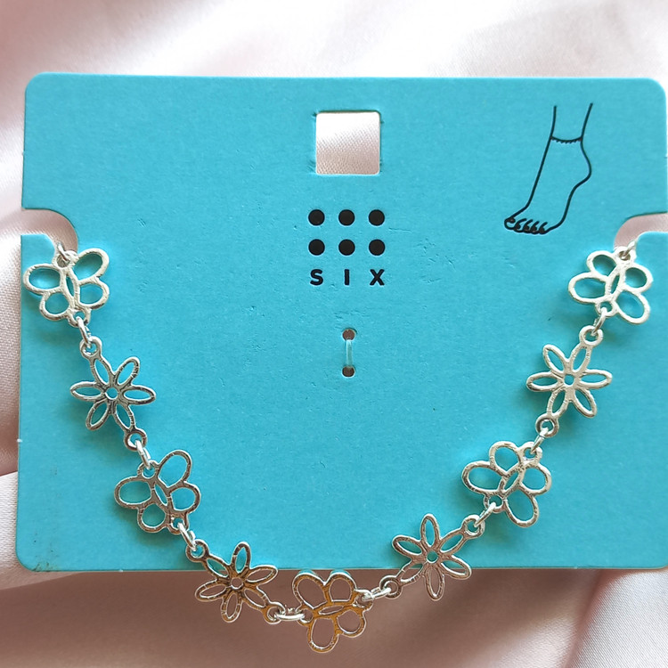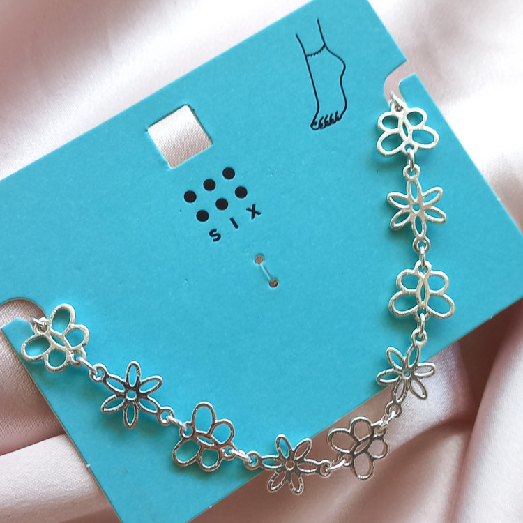 پابند زنانه زنجیر گل نقره ای برند اروپایی six ضدحساسیت