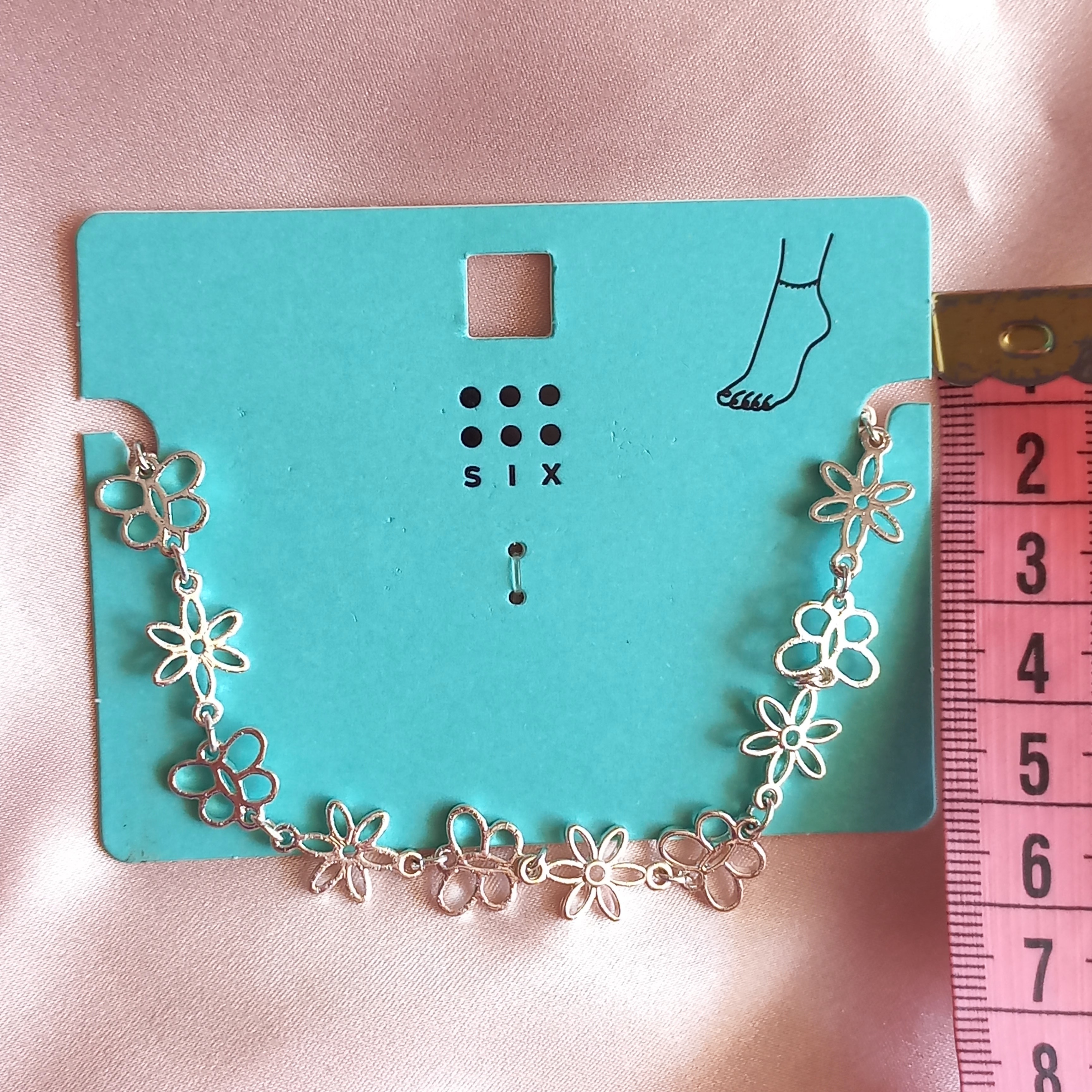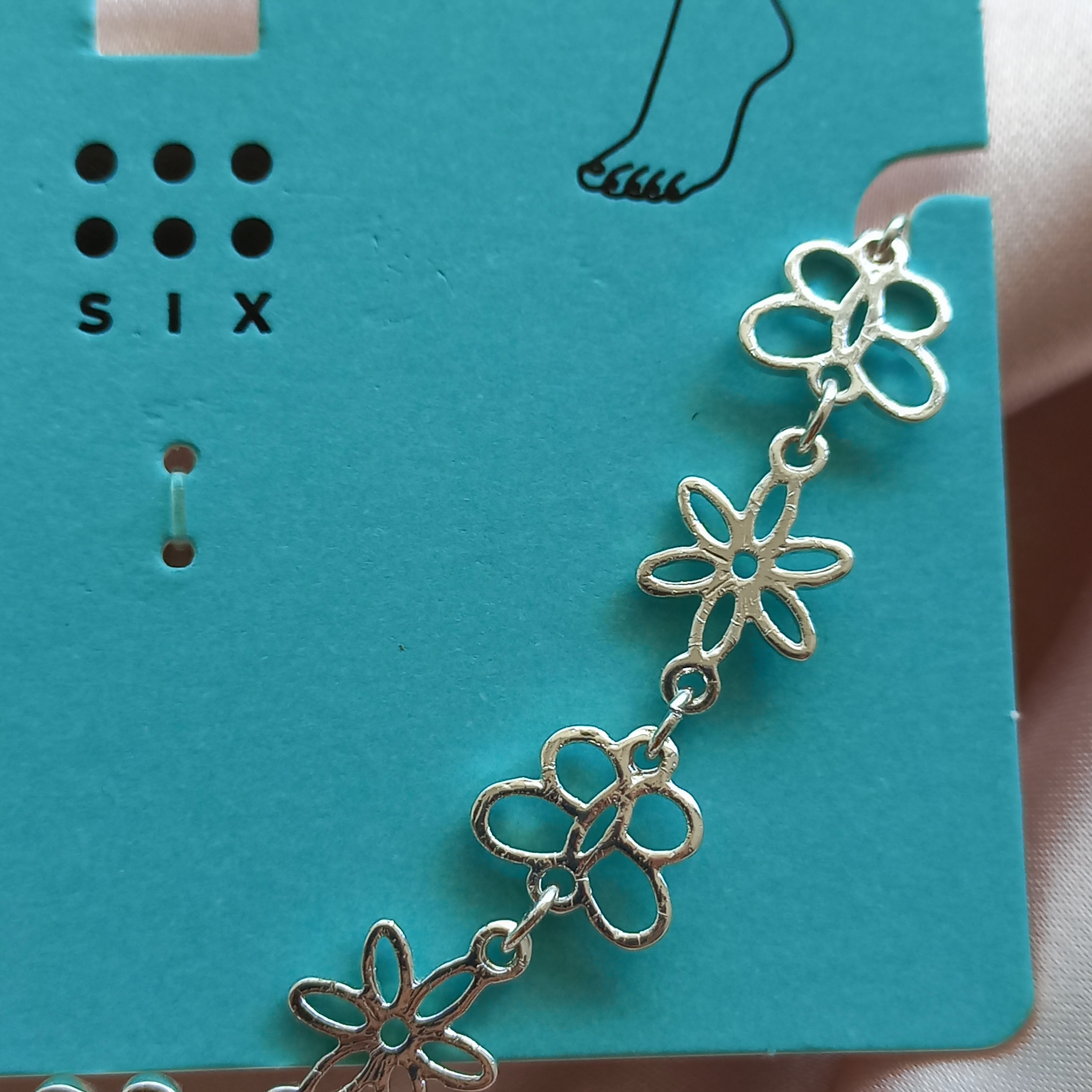 پابند زنانه زنجیر گل نقره ای برند اروپایی six ضدحساسیت