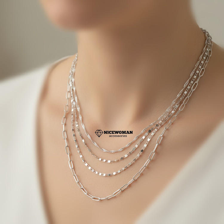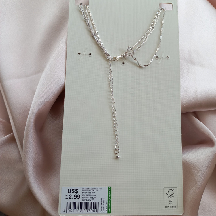 گردنبند زنانه سه ردیف نقره ای برند اروپایی ضدحساسیت