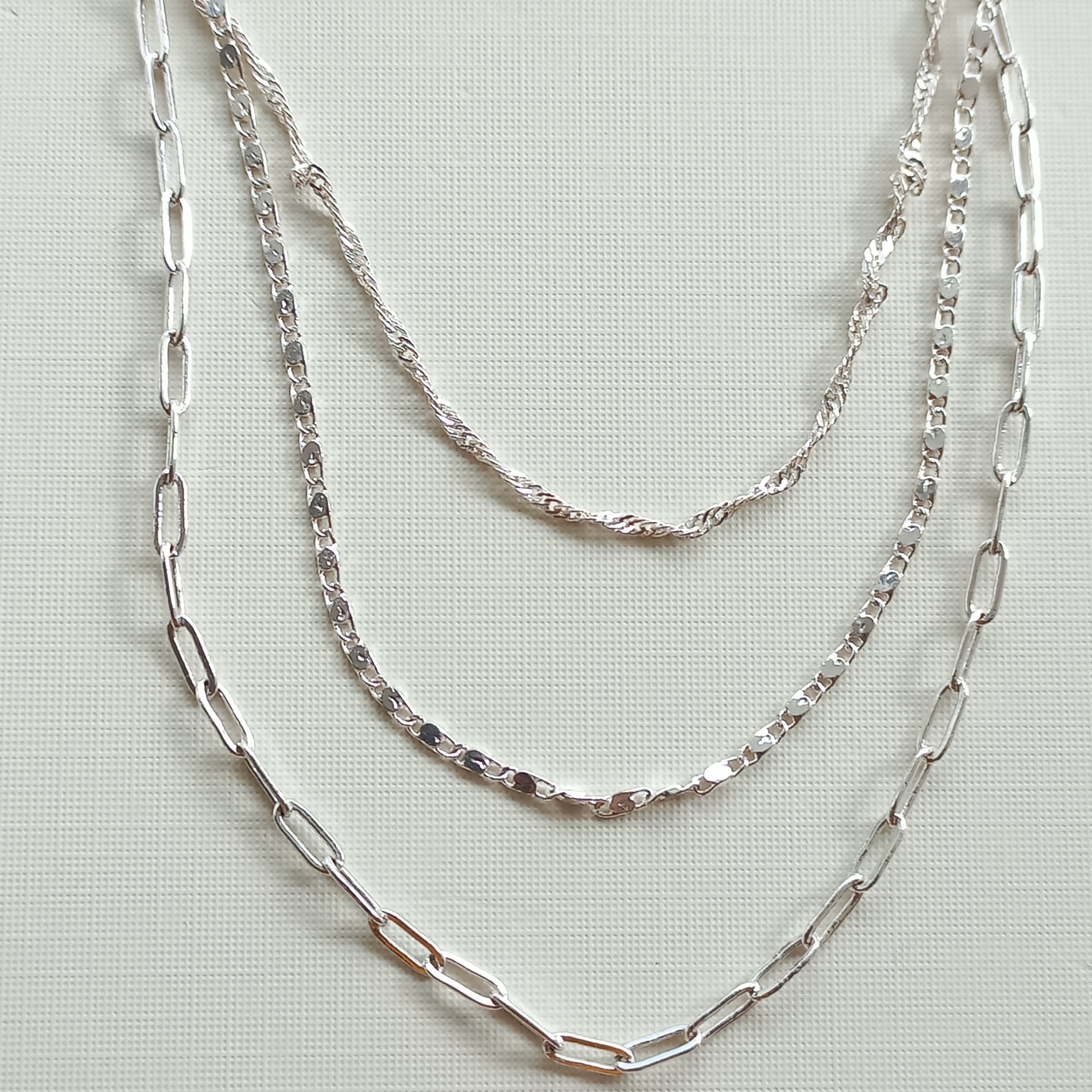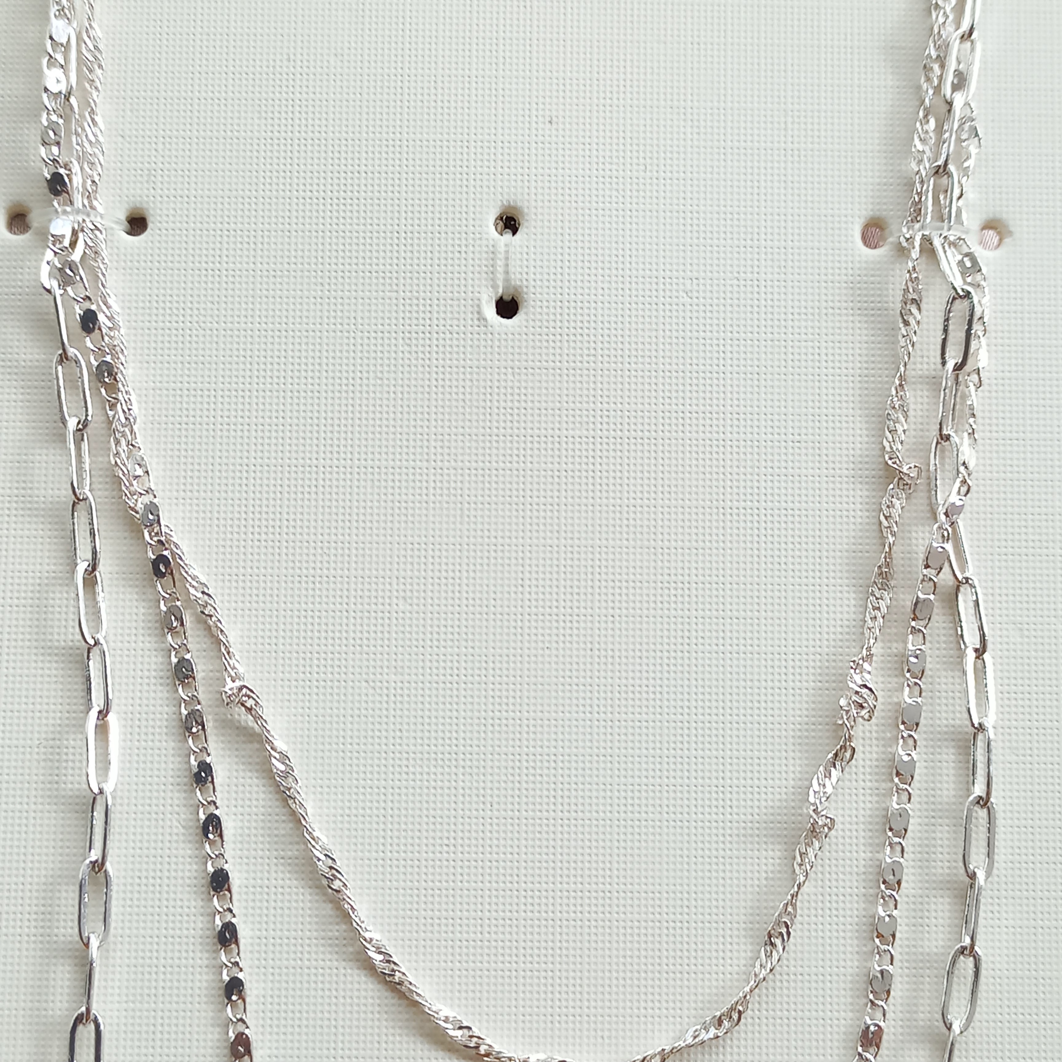 گردنبند زنانه سه ردیف نقره ای برند اروپایی ضدحساسیت
