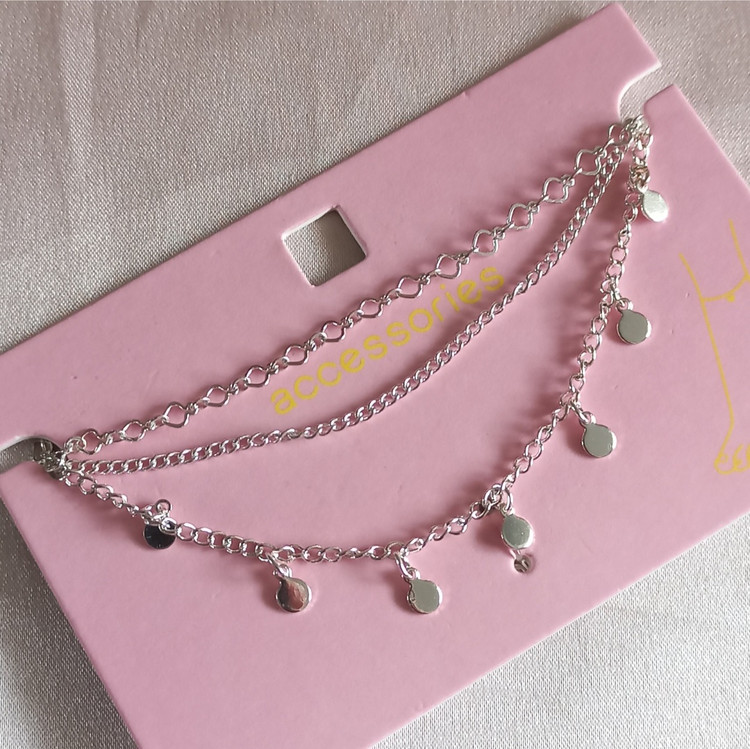 پابند زنانه سه ردیف زنجیر و آویز نقره ای برند اروپایی accessories ضدحساسیت