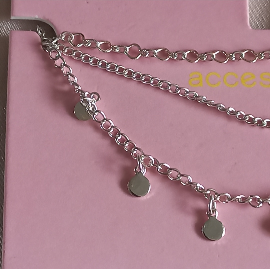 پابند زنانه سه ردیف زنجیر و آویز نقره ای برند اروپایی accessories ضدحساسیت