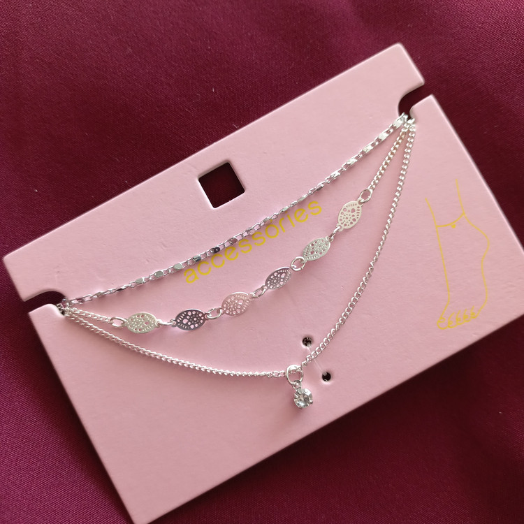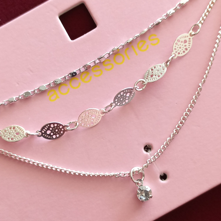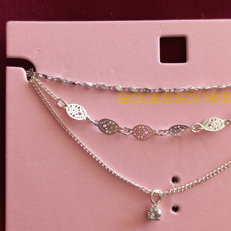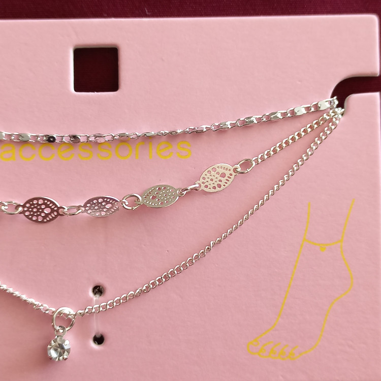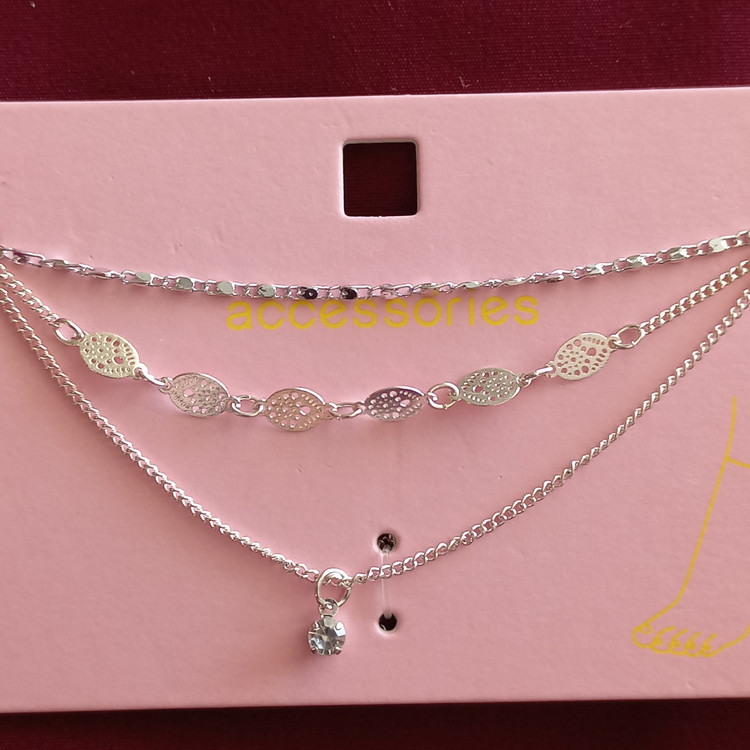 پابند زنانه سه ردیف زنجیر و آویز نگین نقره ای برند اروپایی accessories ضدحساسیت