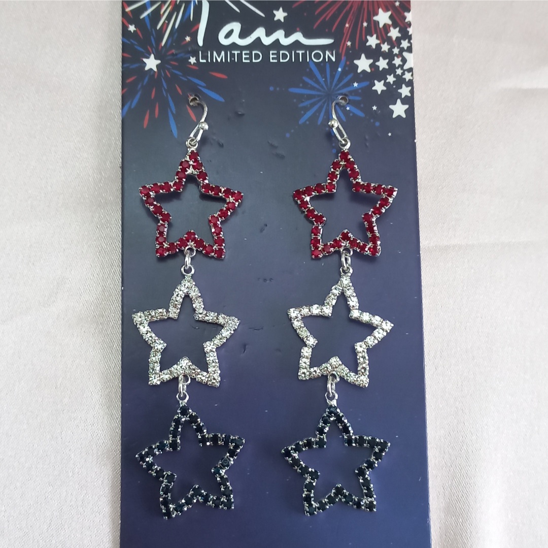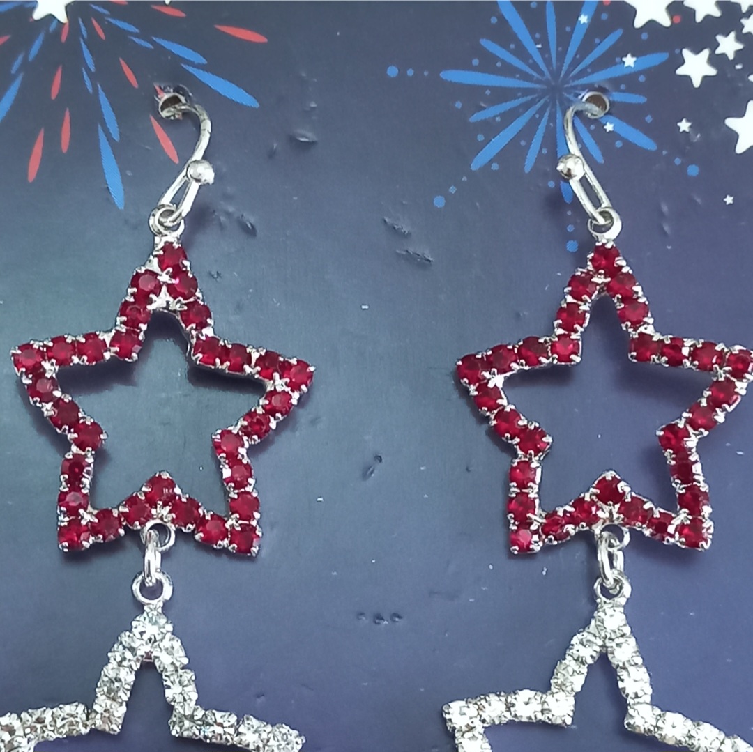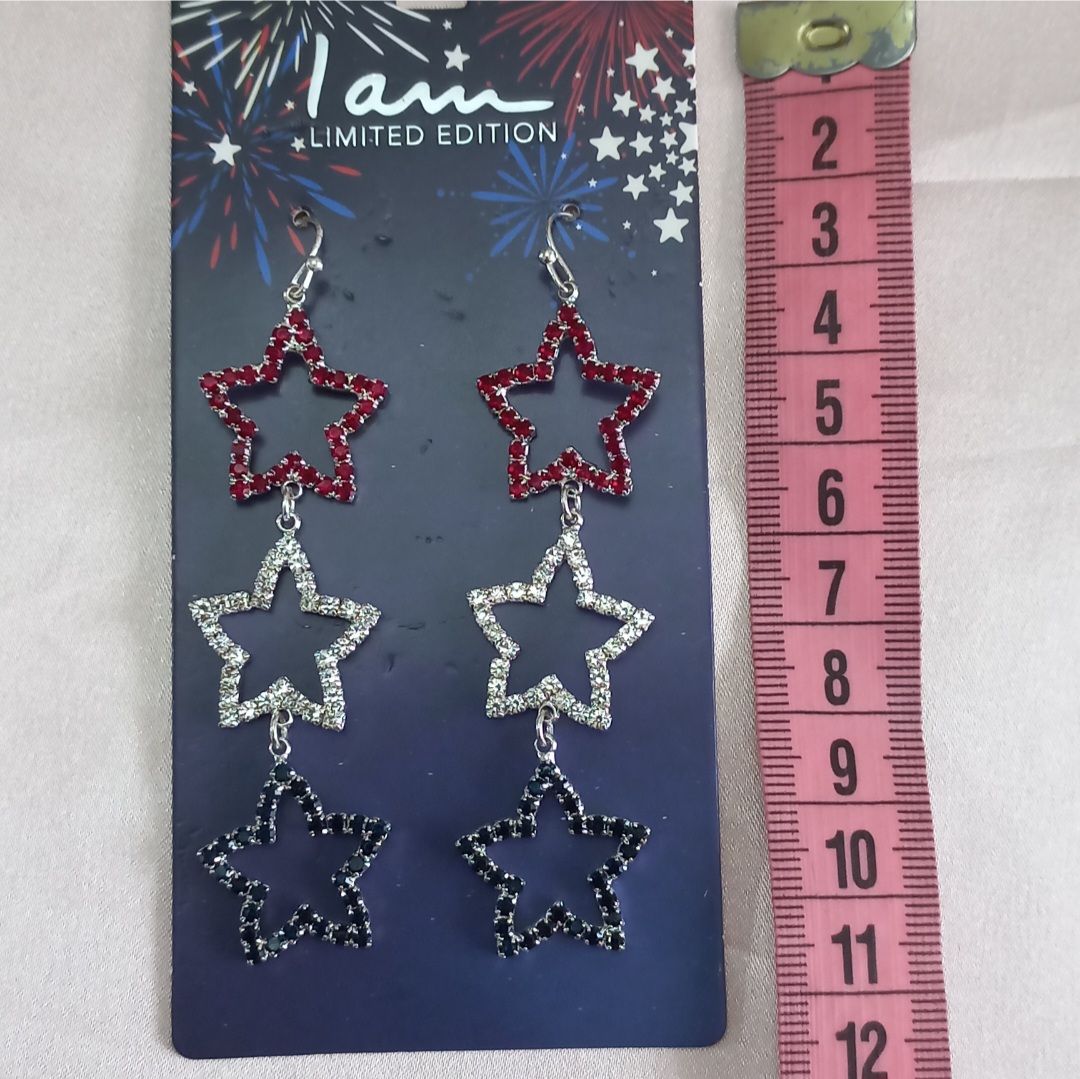 گوشواره زنانه آویز ستاره نگین دار نقره ای برند اروپایی Iam ضدحساسیت