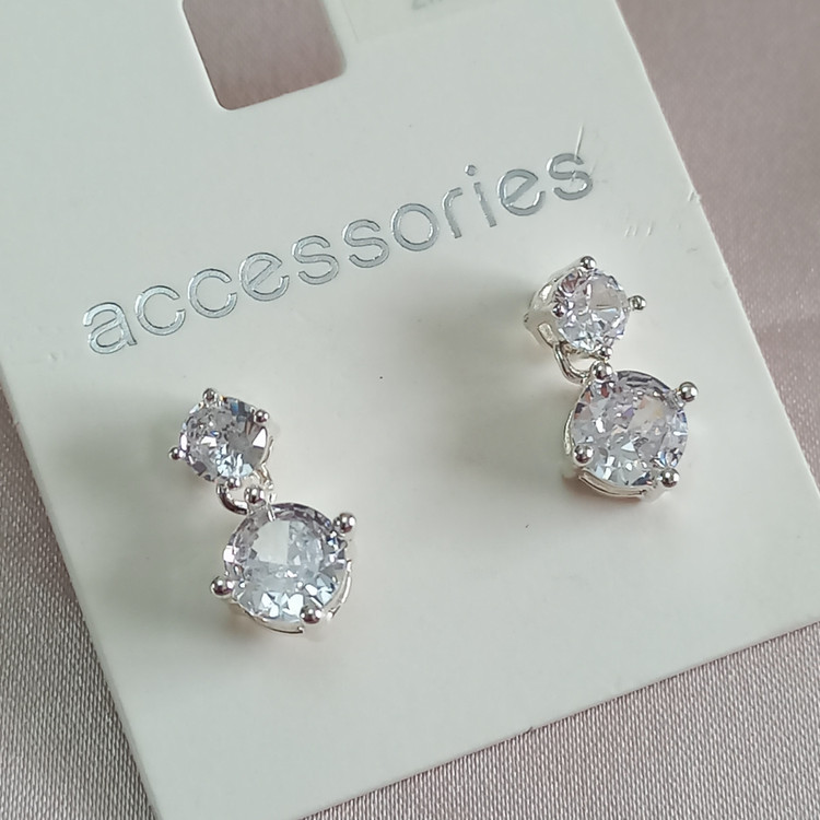 گوشواره زنانه میخی آویز نگین نقره ای برند اروپایی accessories ضدحساسیت