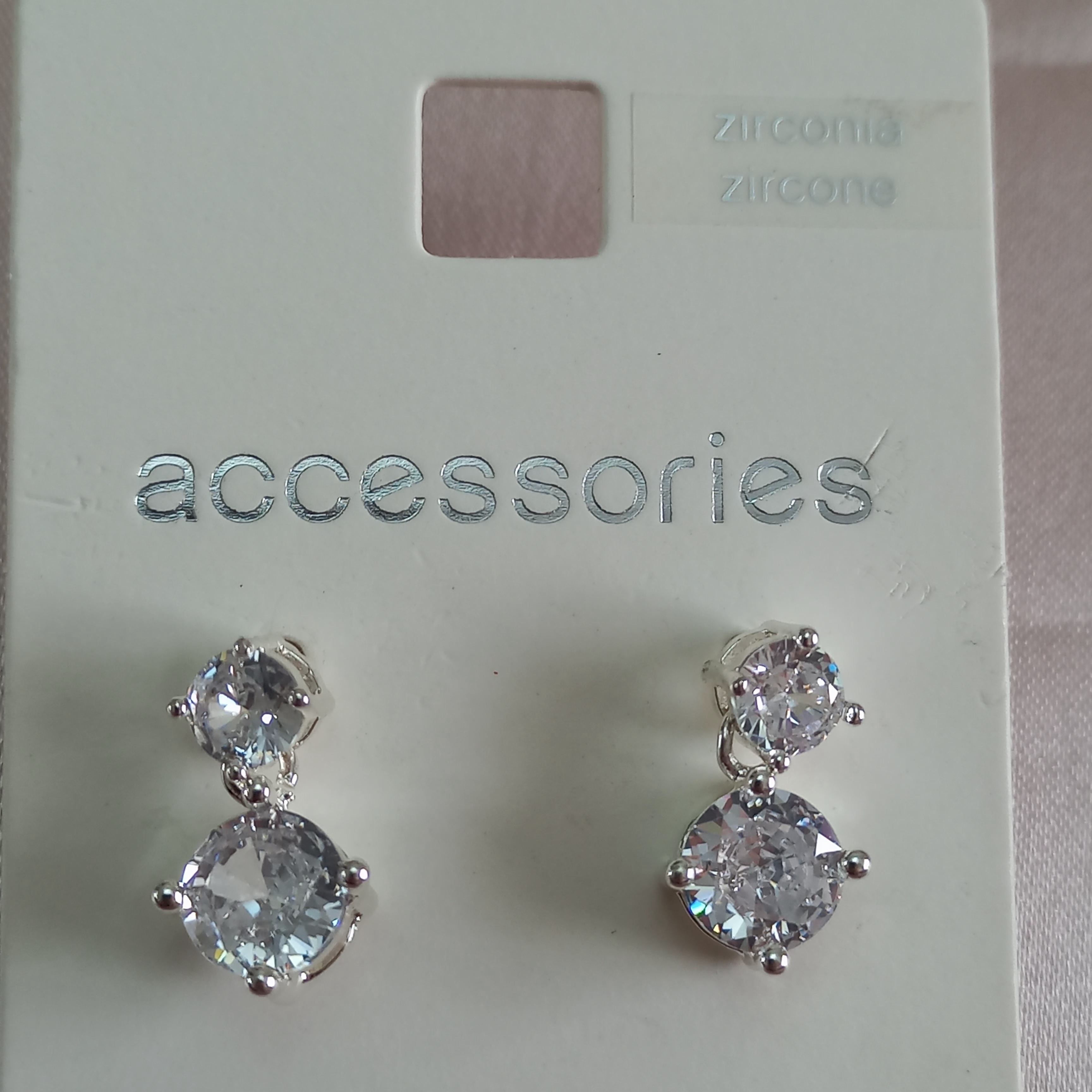 گوشواره زنانه میخی آویز نگین نقره ای برند اروپایی accessories ضدحساسیت