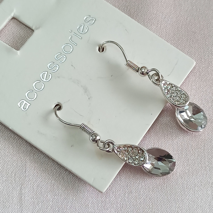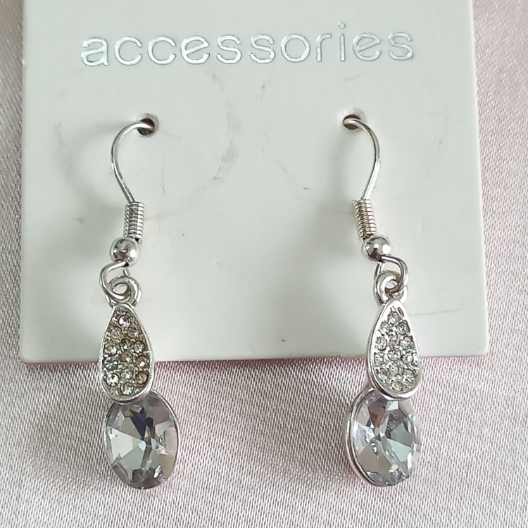 گوشواره زنانه آویز نگین نقره ای برند اروپایی accessories ضدحساسیت