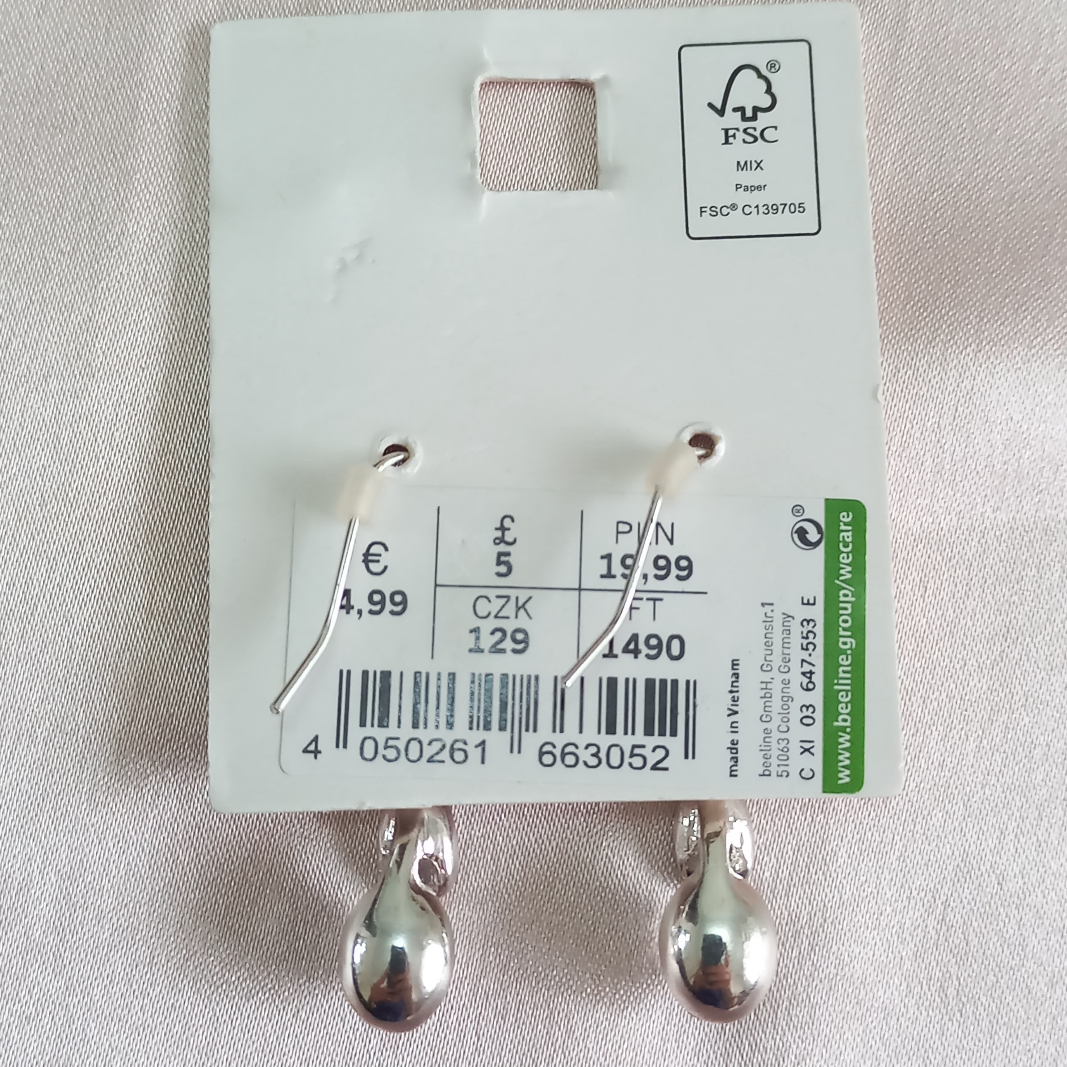 گوشواره زنانه آویز نگین نقره ای برند اروپایی accessories ضدحساسیت