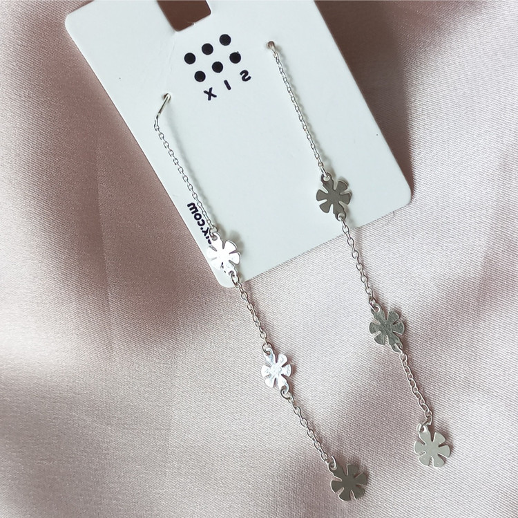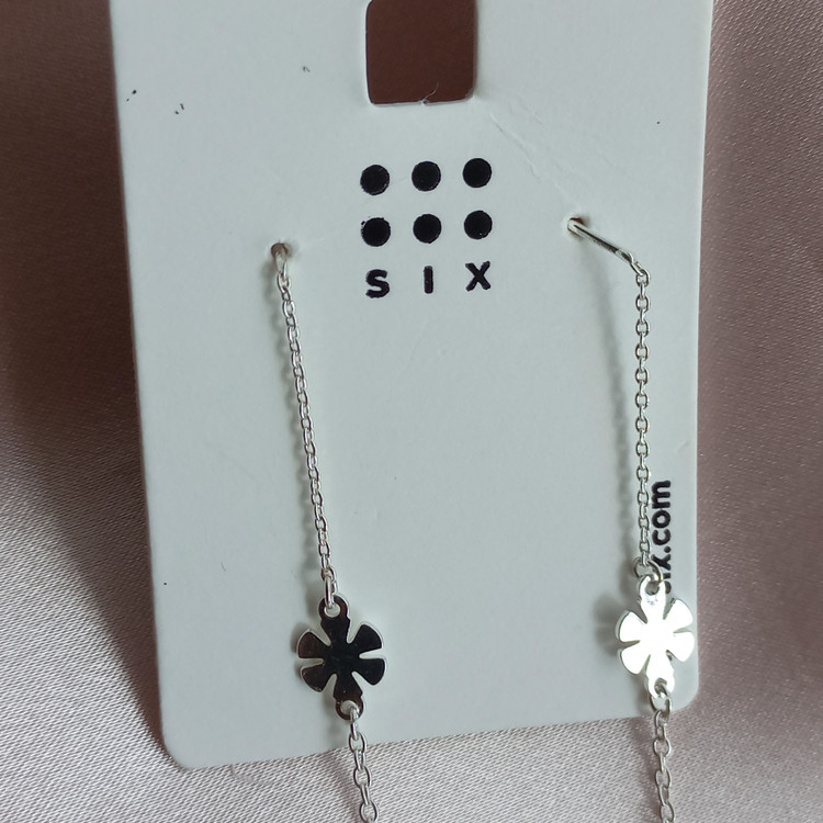 گوشواره زنانه بخیه گل نقره ای برند اروپایی six ضدحساسیت