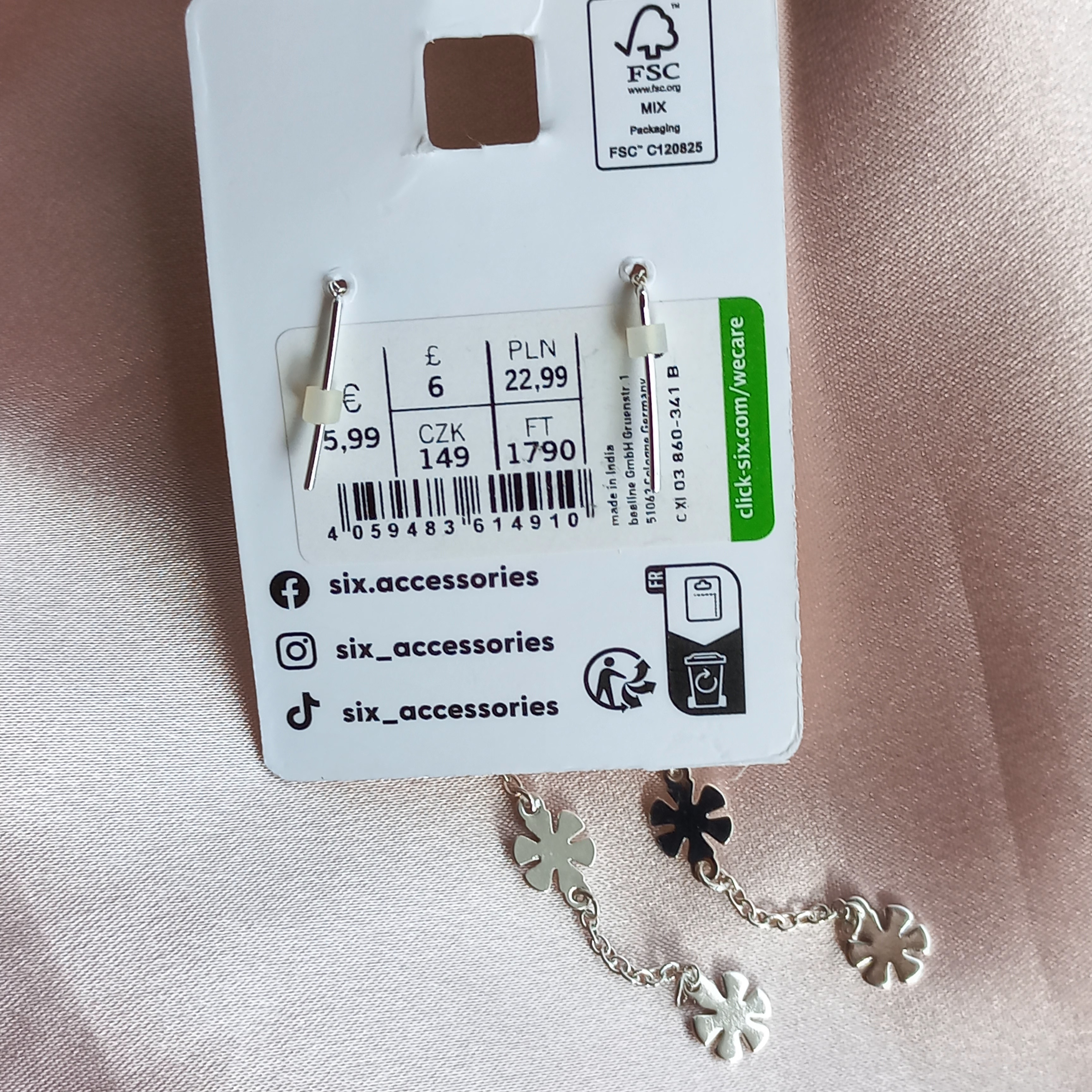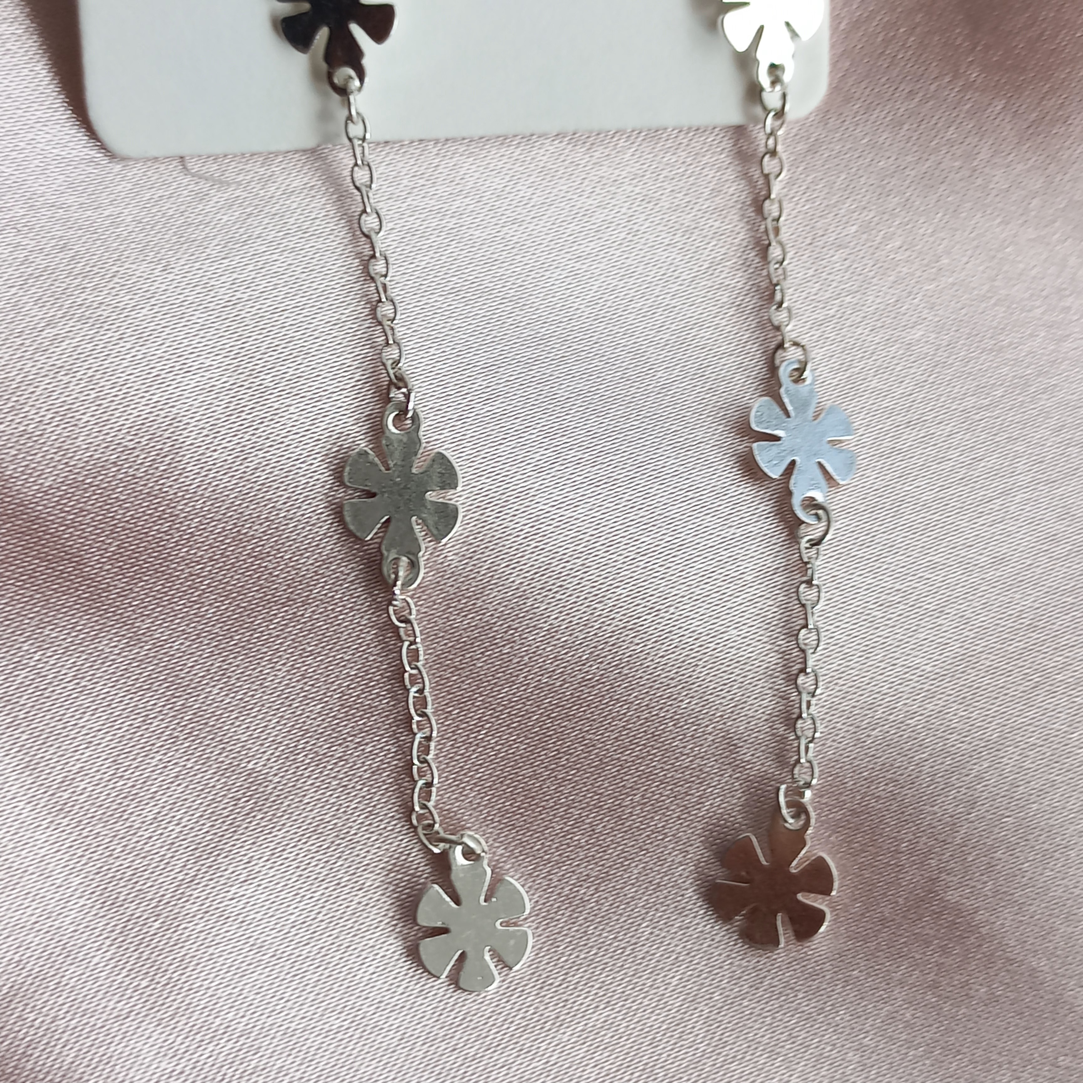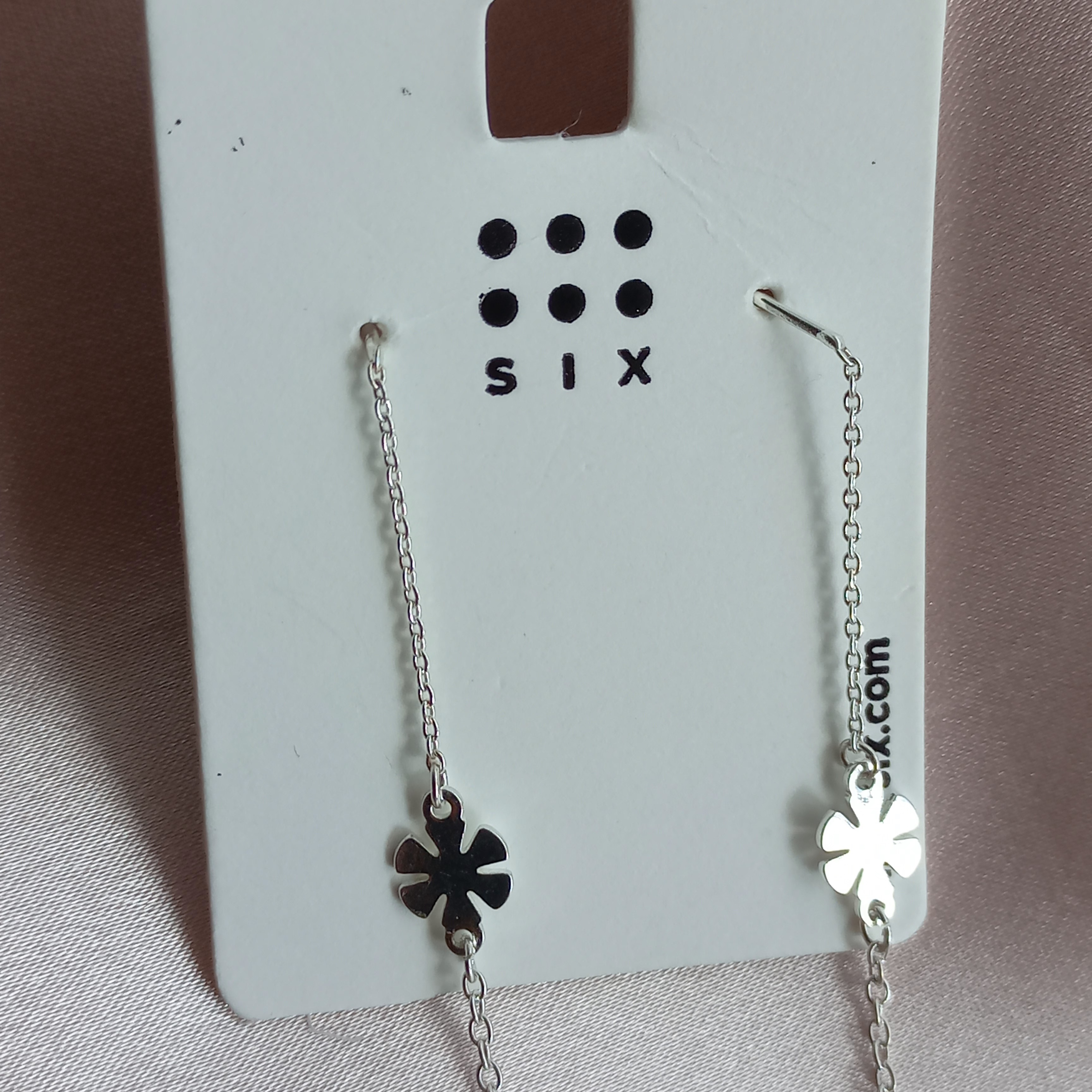 گوشواره زنانه بخیه گل نقره ای برند اروپایی six ضدحساسیت