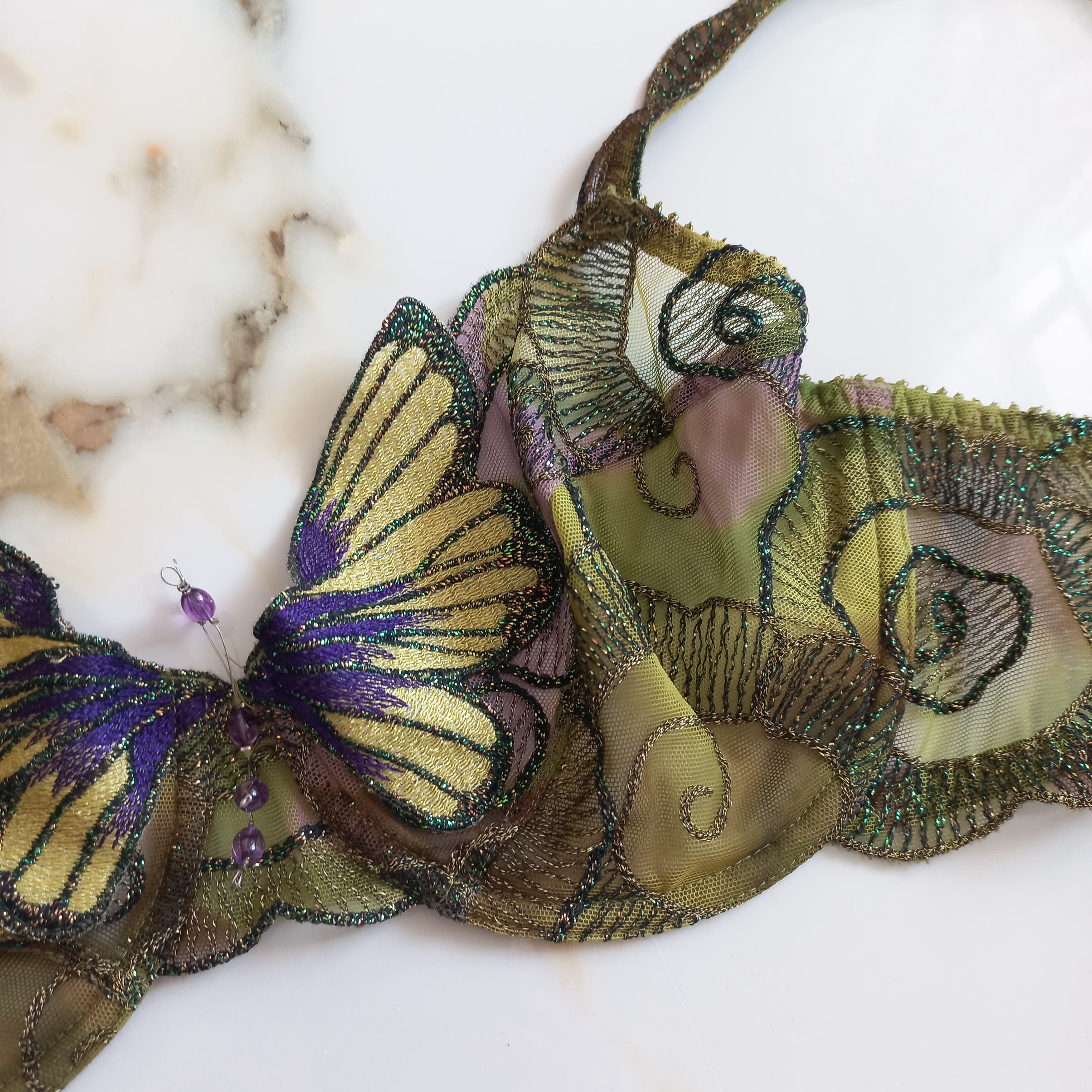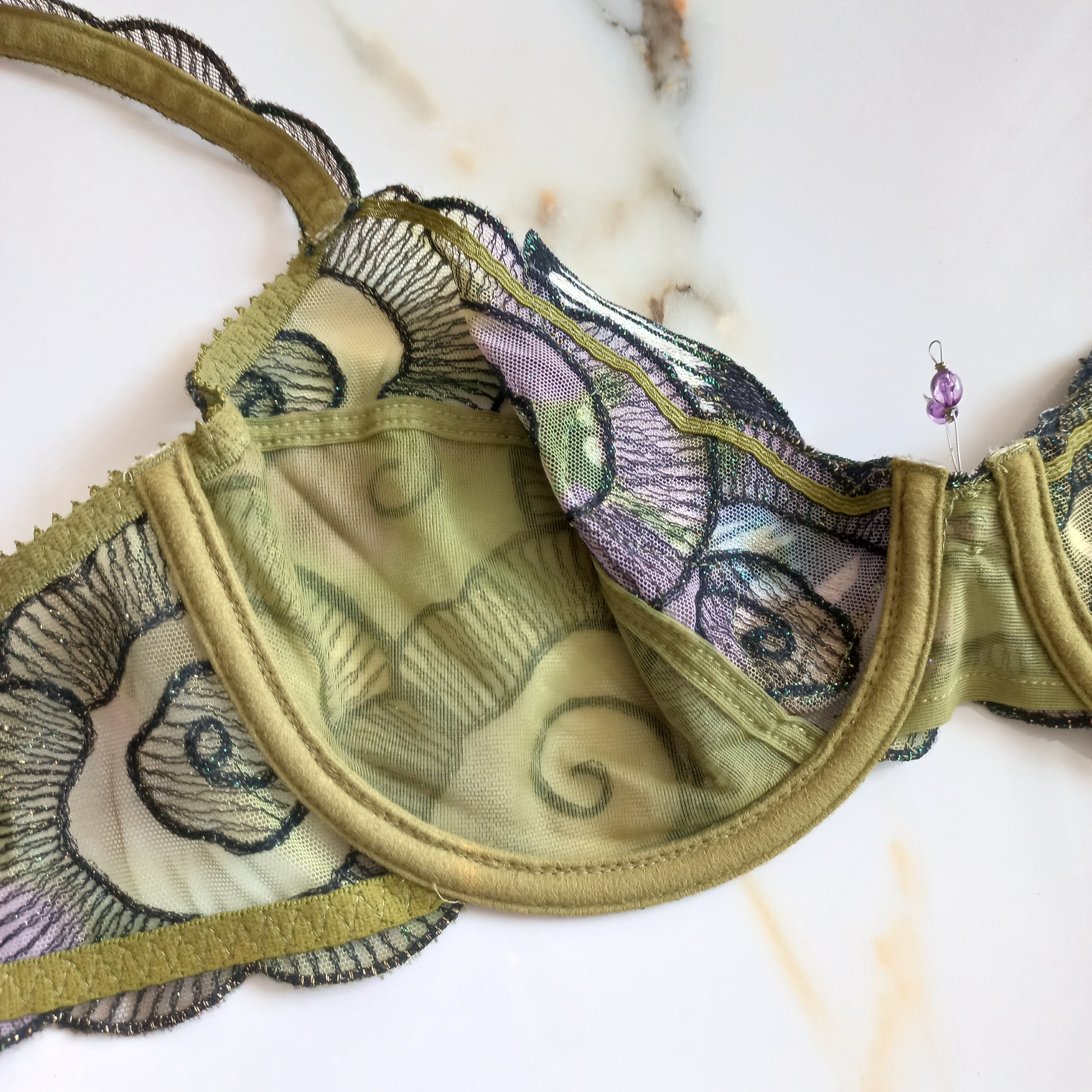 سوتین زنانه فنردار توری سبز بنفش اکلیلی برند اروپایی Ravage