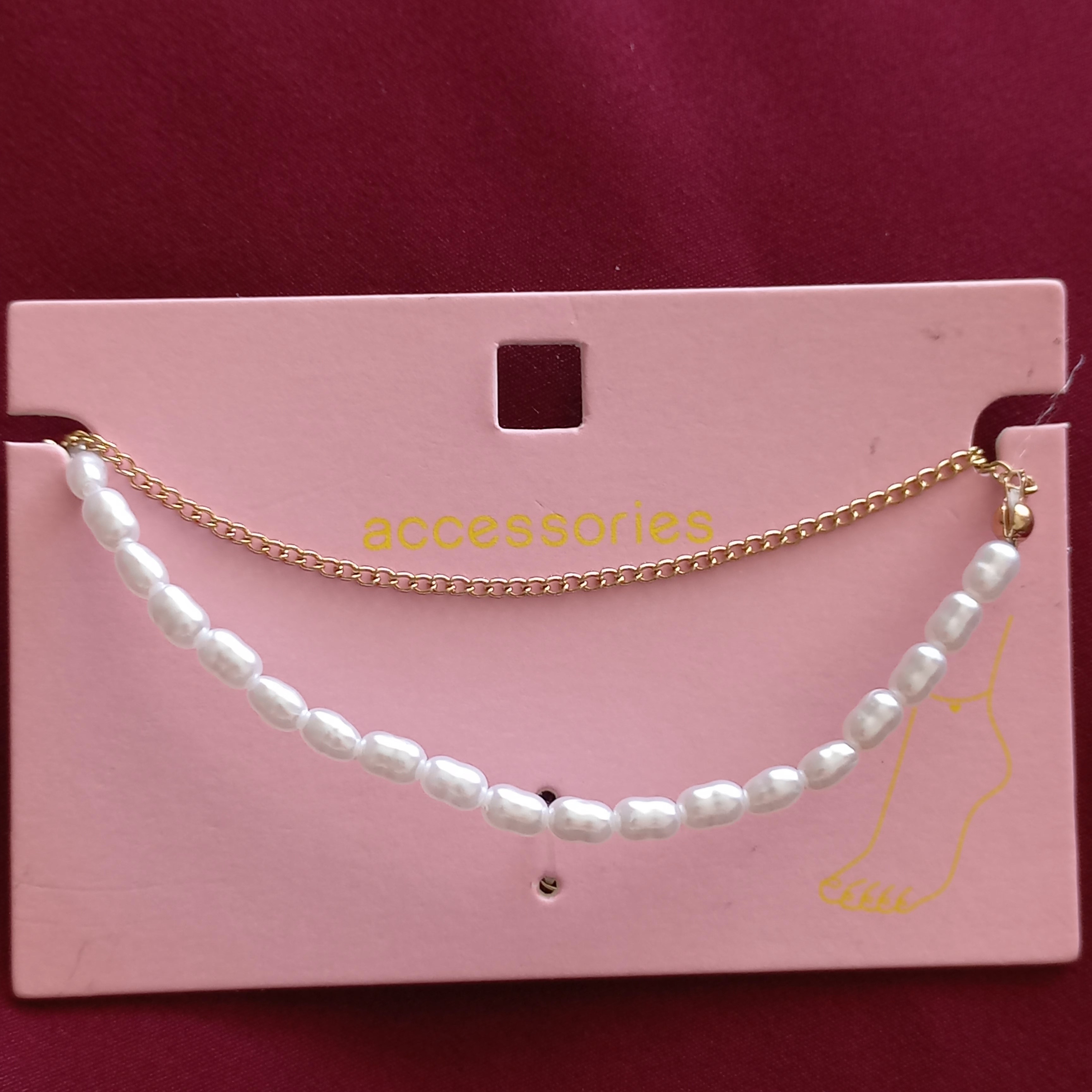 پابند زنانه دو ردیف زنجیر مروارید طلایی برند اروپایی accessories ضدحساسیت