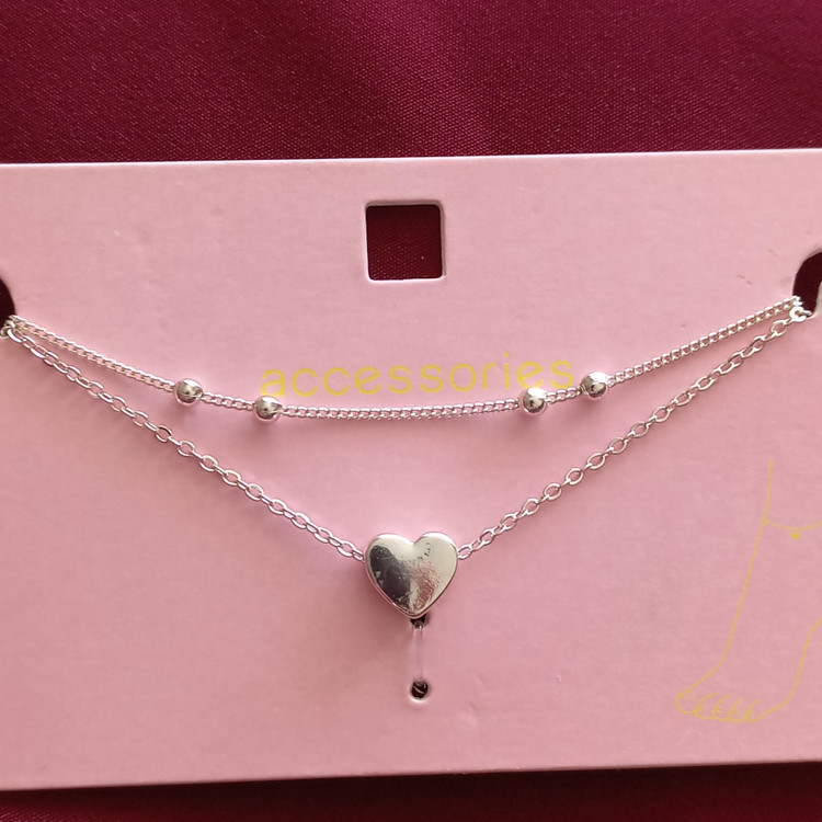پابند زنانه دو ردیف زنجیر آویز قلب نقره ای برند اروپایی accessories ضدحساسیت