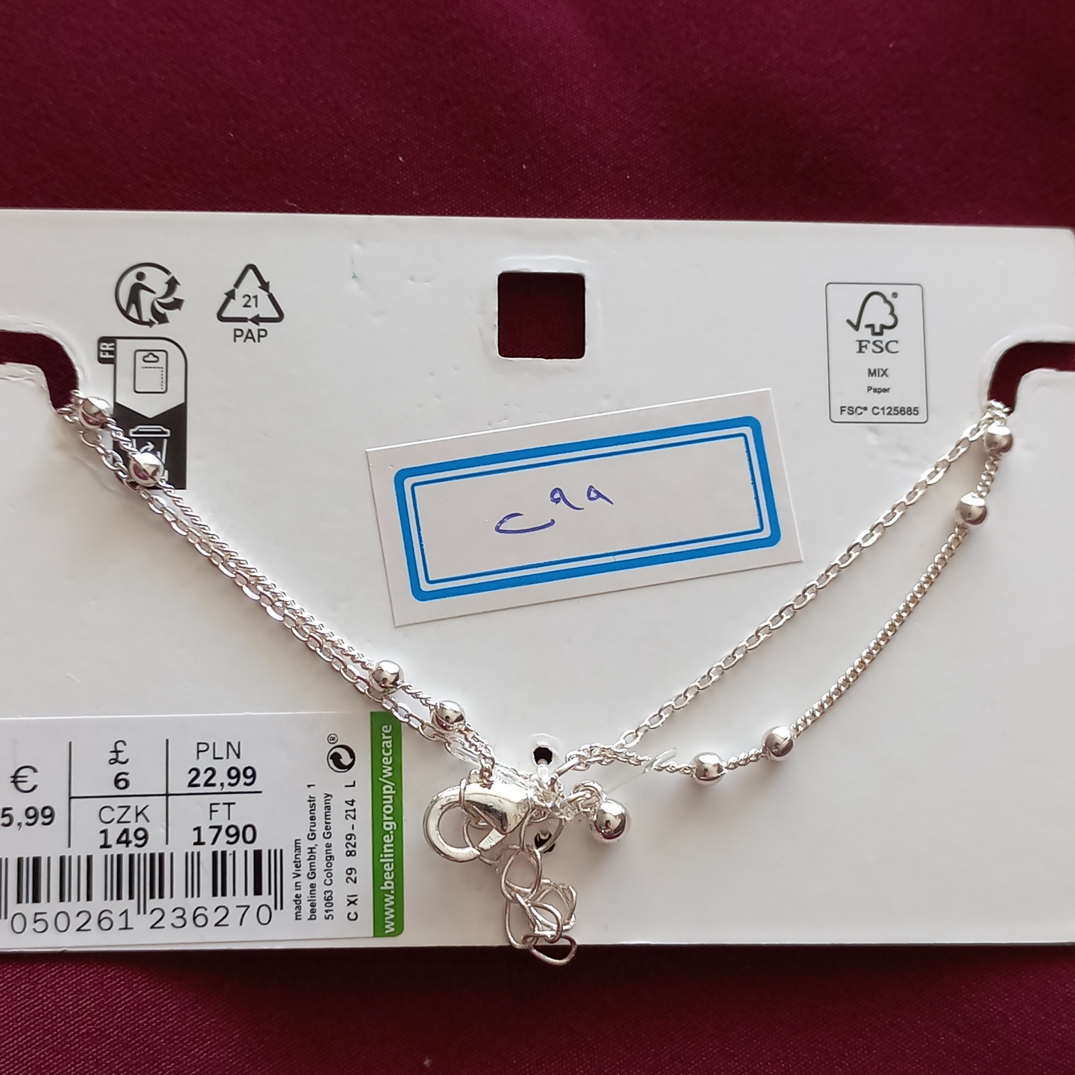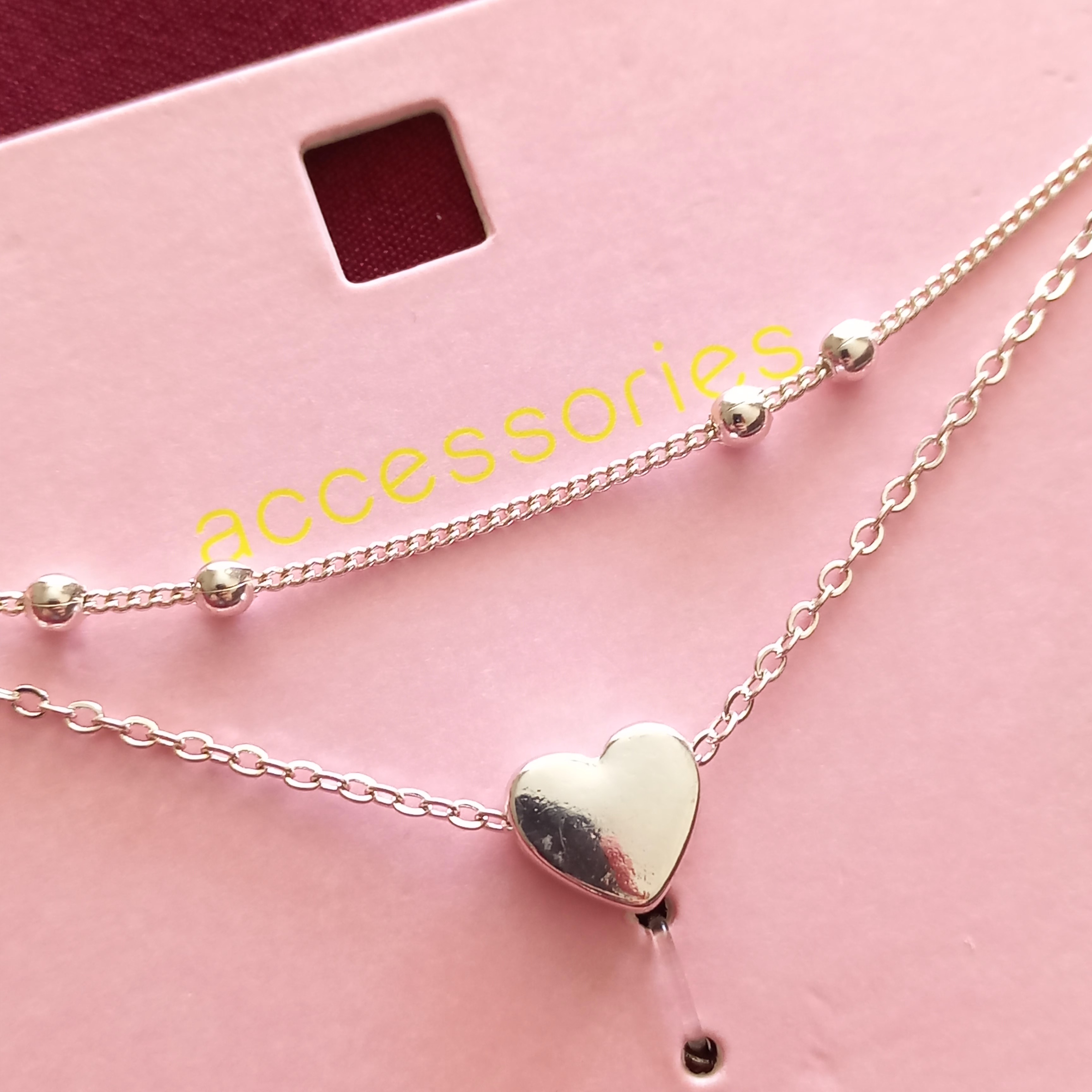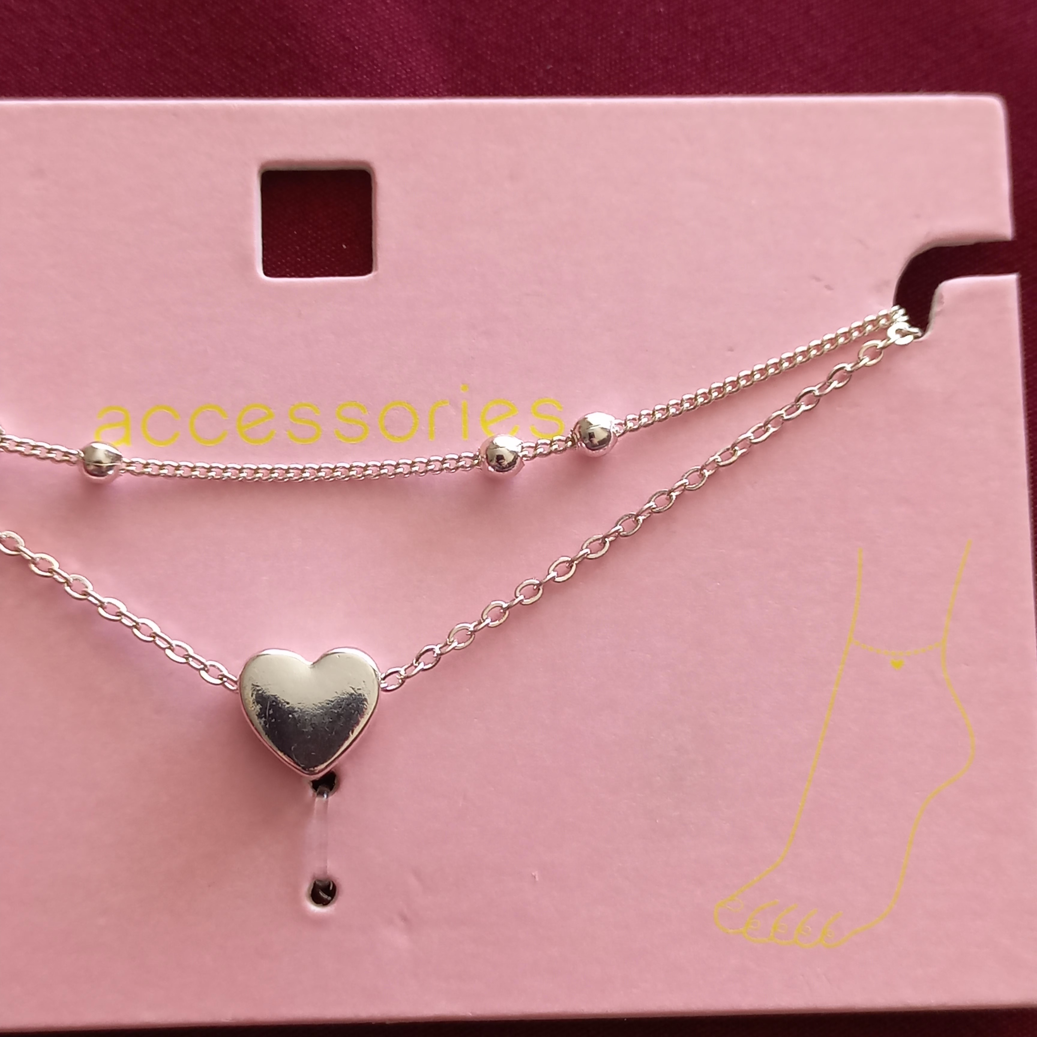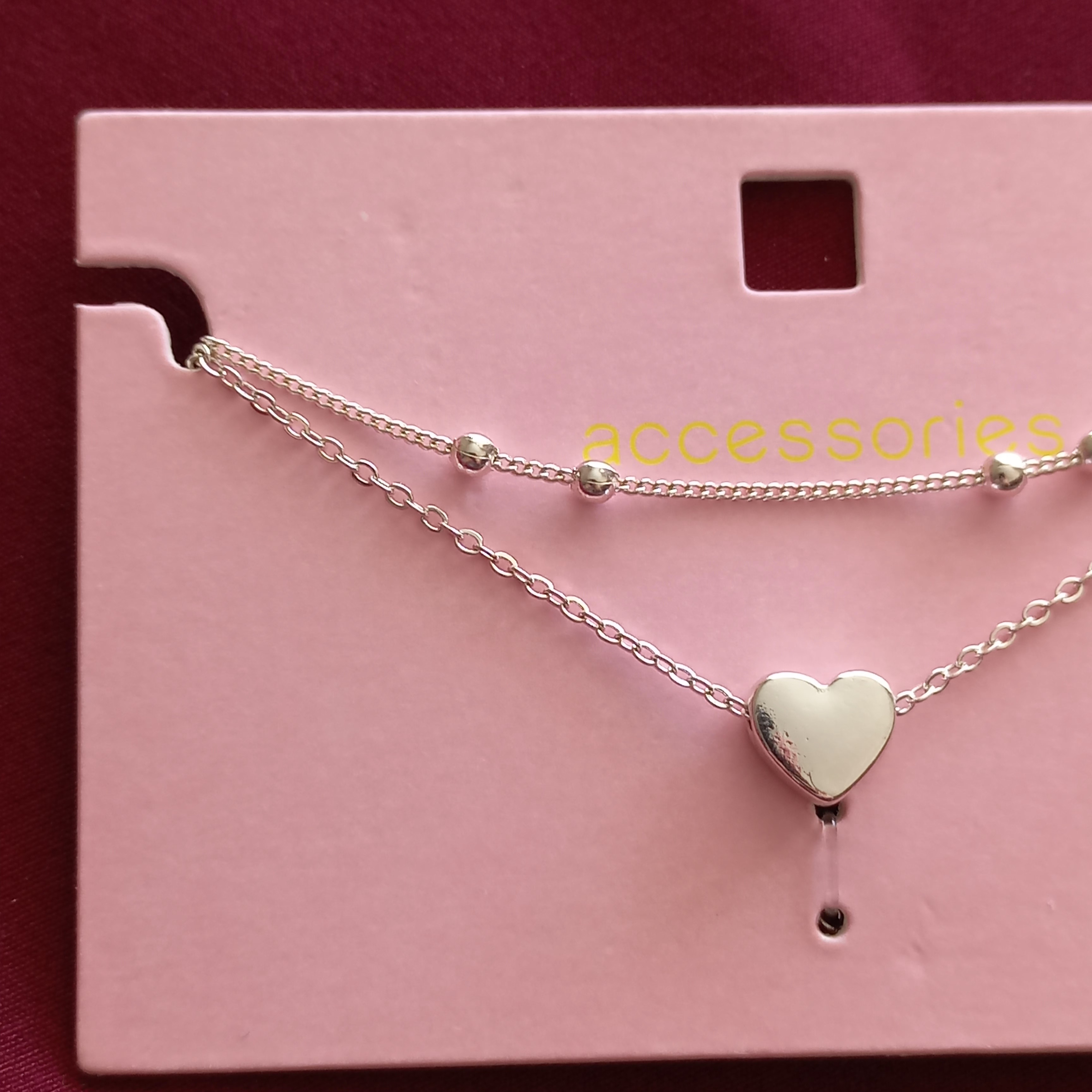 پابند زنانه دو ردیف زنجیر آویز قلب نقره ای برند اروپایی accessories ضدحساسیت