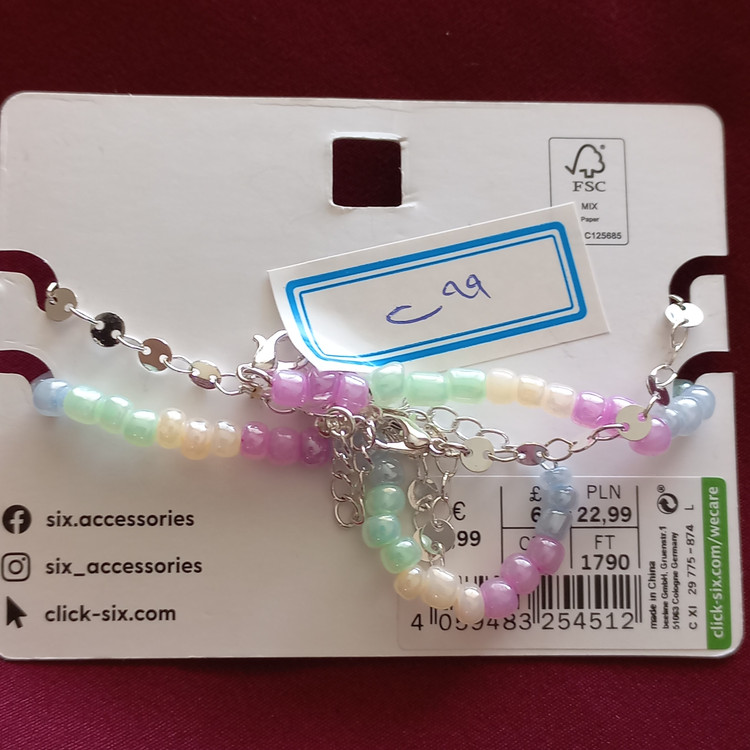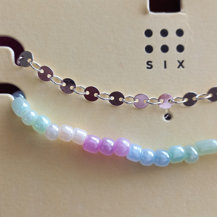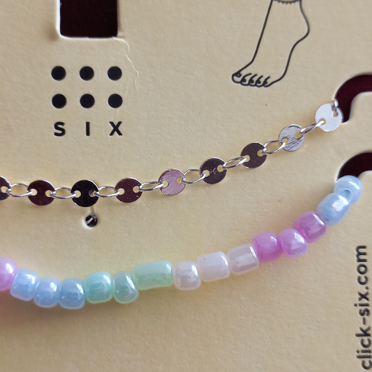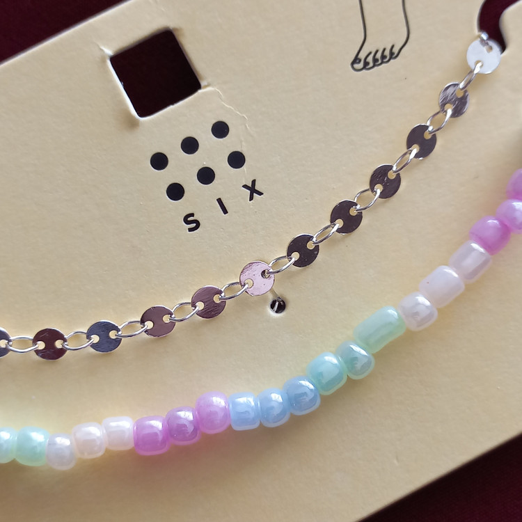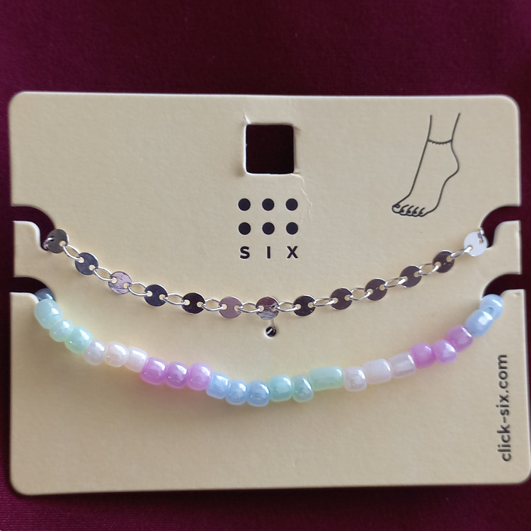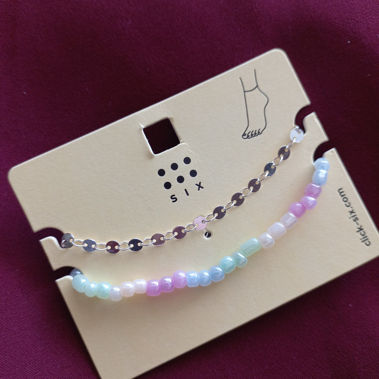 پابند زنانه دو ردیف مهره رنگی زنجیر نقره ای برند اروپایی six ضدحساسیت