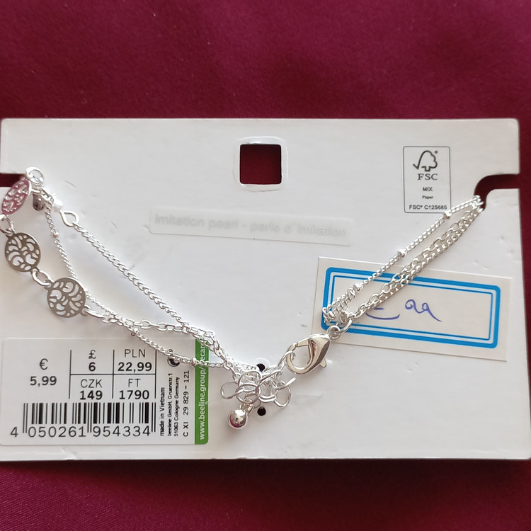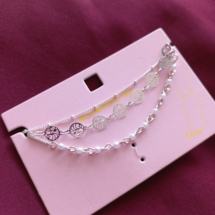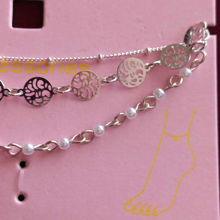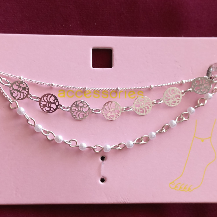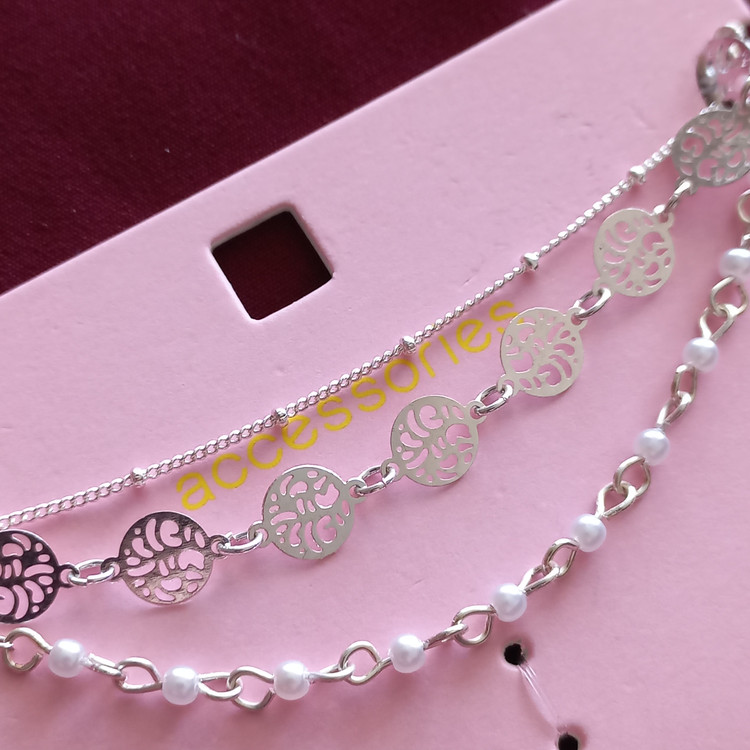 پابند زنانه سه ردیف زنجیر مروارید نقره ای برند اروپایی accessories ضدحساسیت
