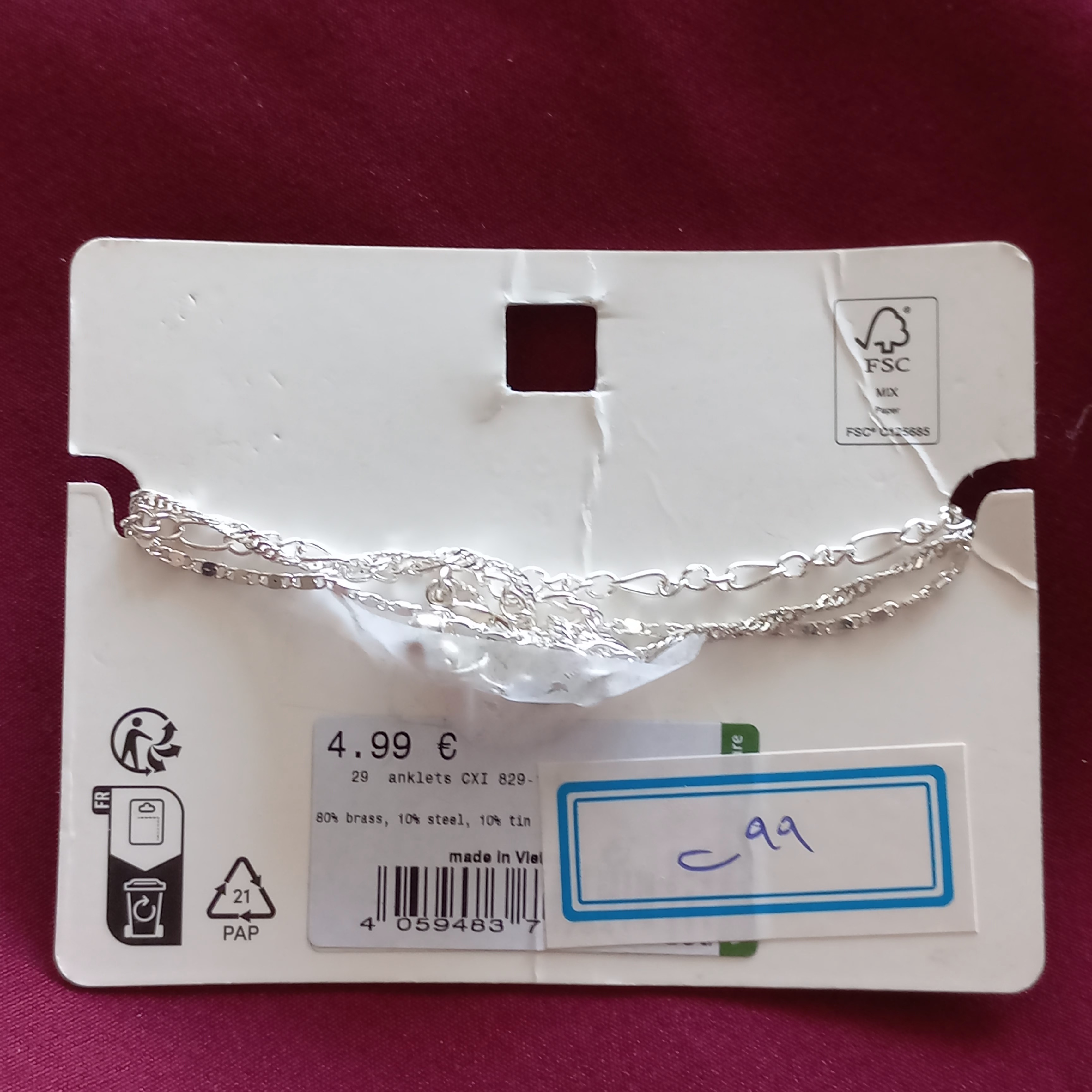 پابند زنانه سه ردیف زنجیر نقره ای برند اروپایی accessories ضدحساسیت