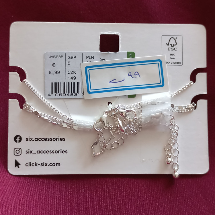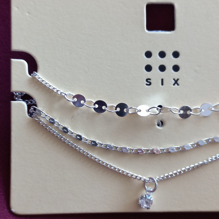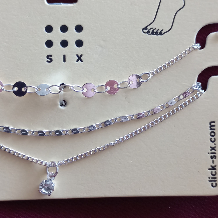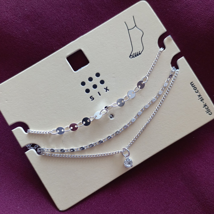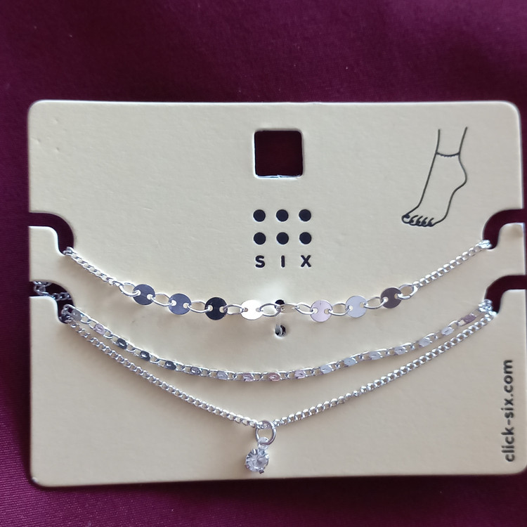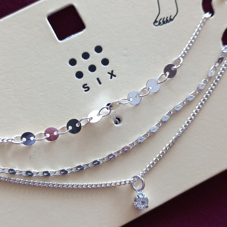 پابند زنانه سه ردیف زنجیر آویز نگین نقره ای برند اروپایی six ضدحساسیت