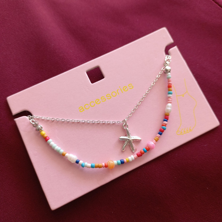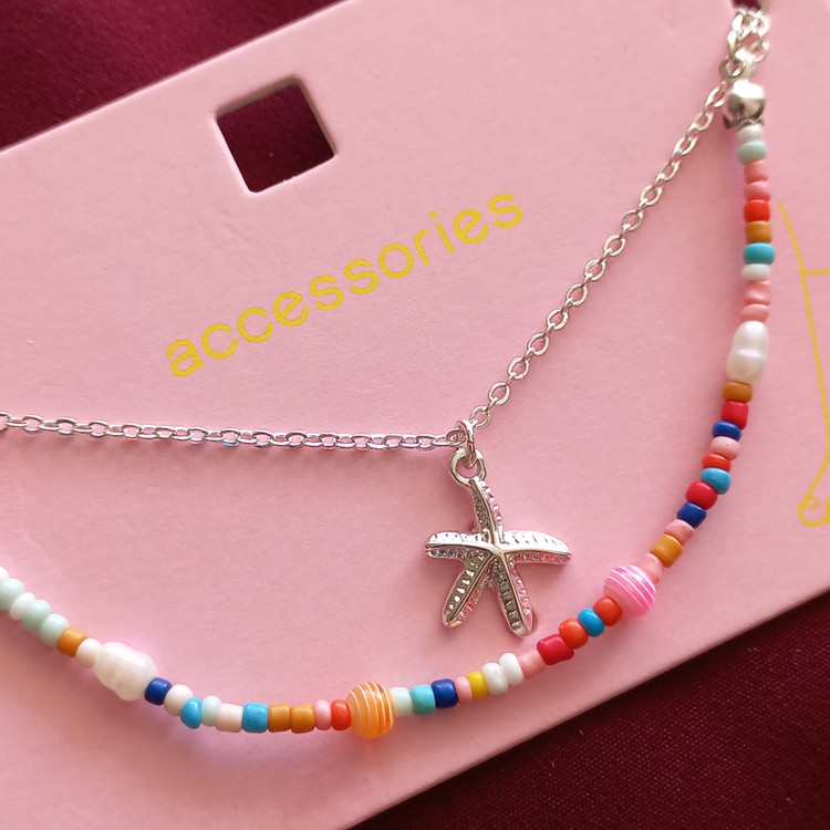 پابند زنانه دو ردیف مهره رنگی آویز ستاره نقره ای برند اروپایی accessories ضدحساسیت