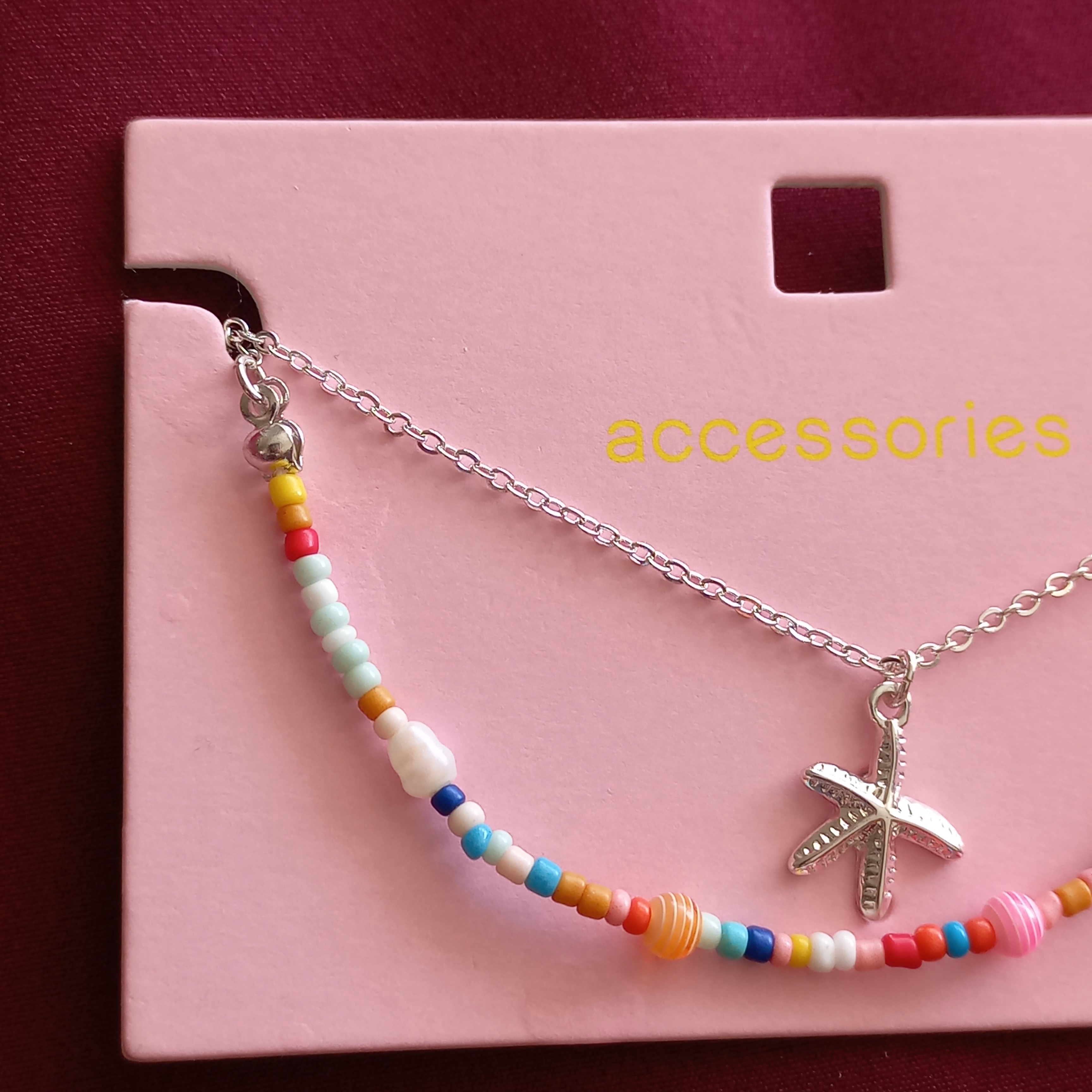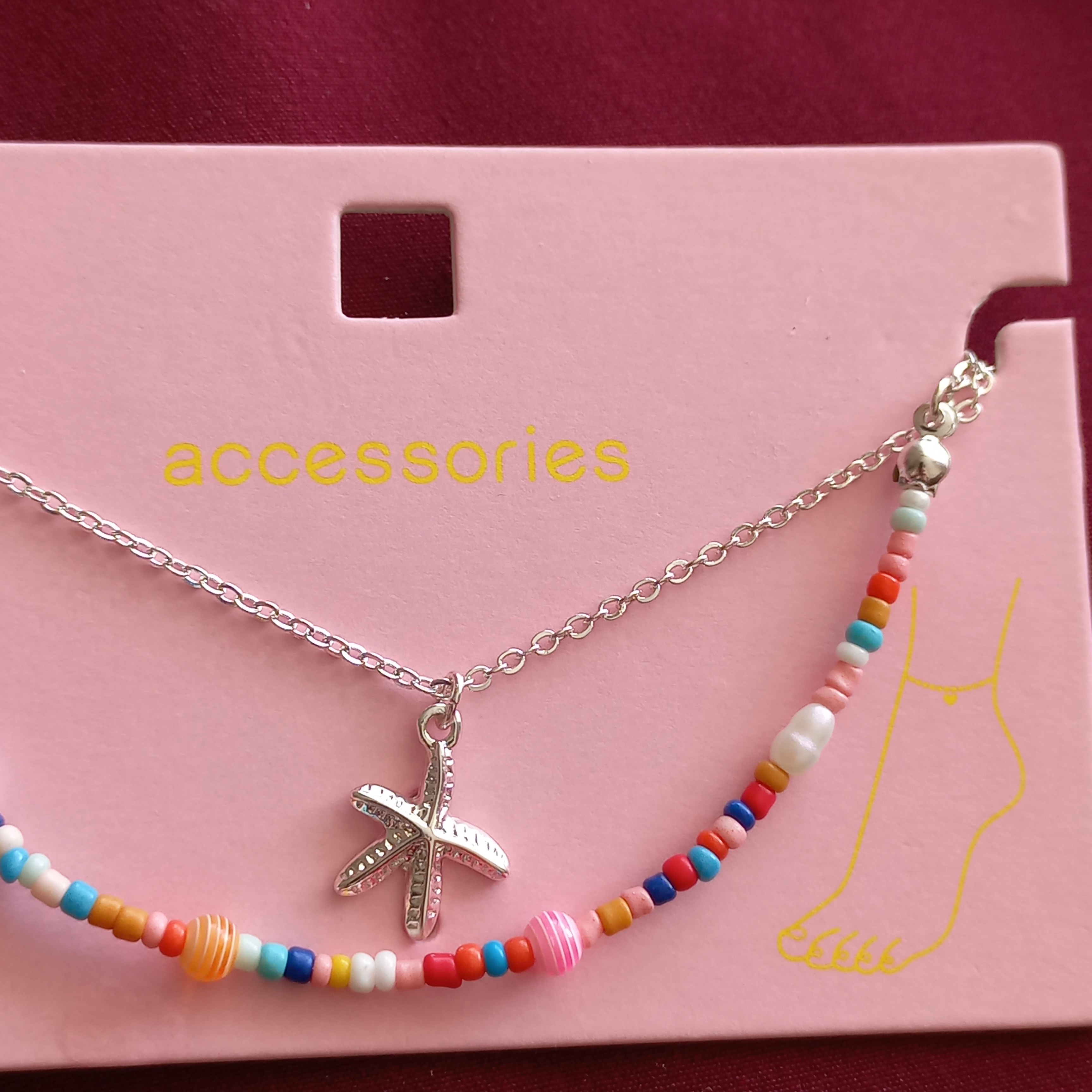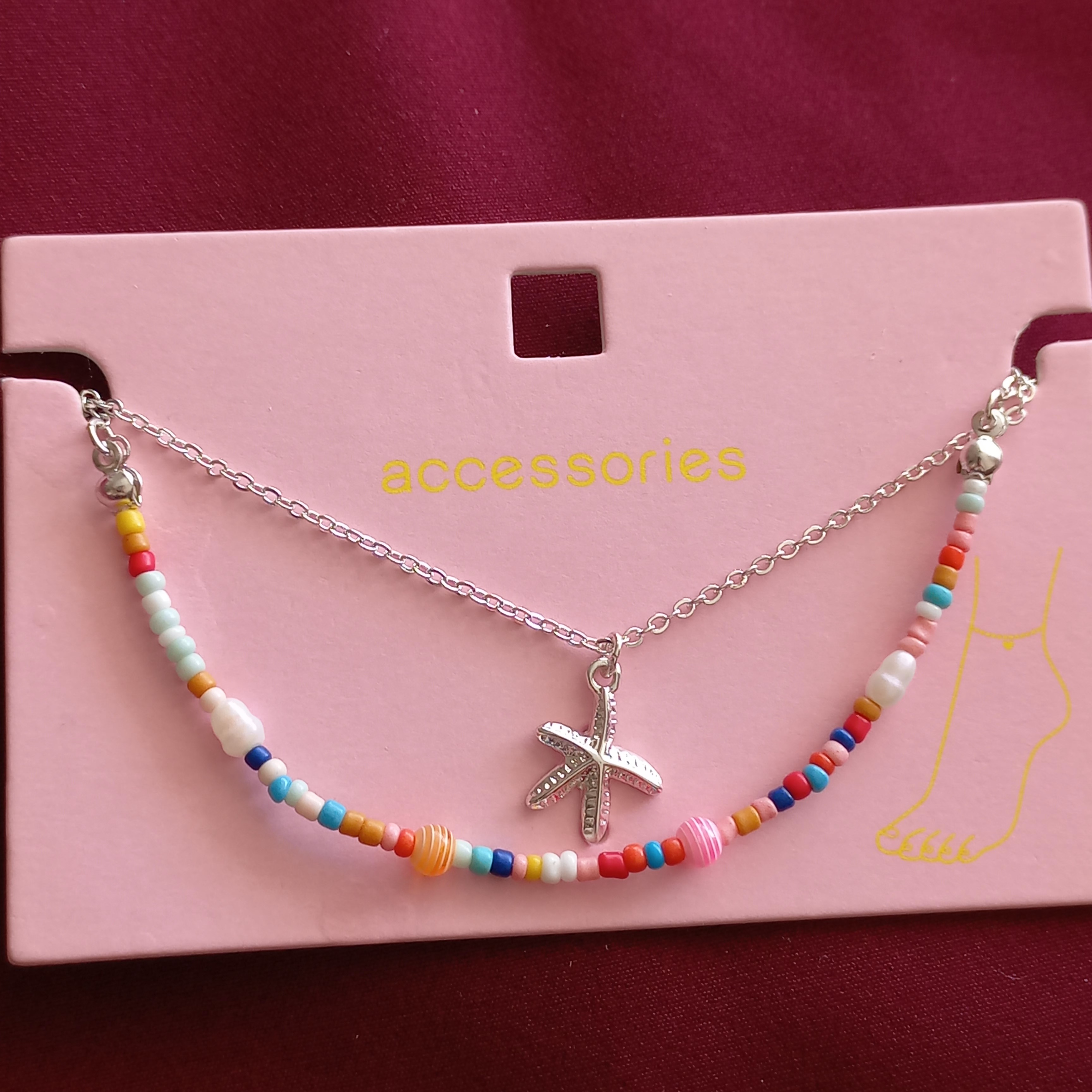 پابند زنانه دو ردیف مهره رنگی آویز ستاره نقره ای برند اروپایی accessories ضدحساسیت