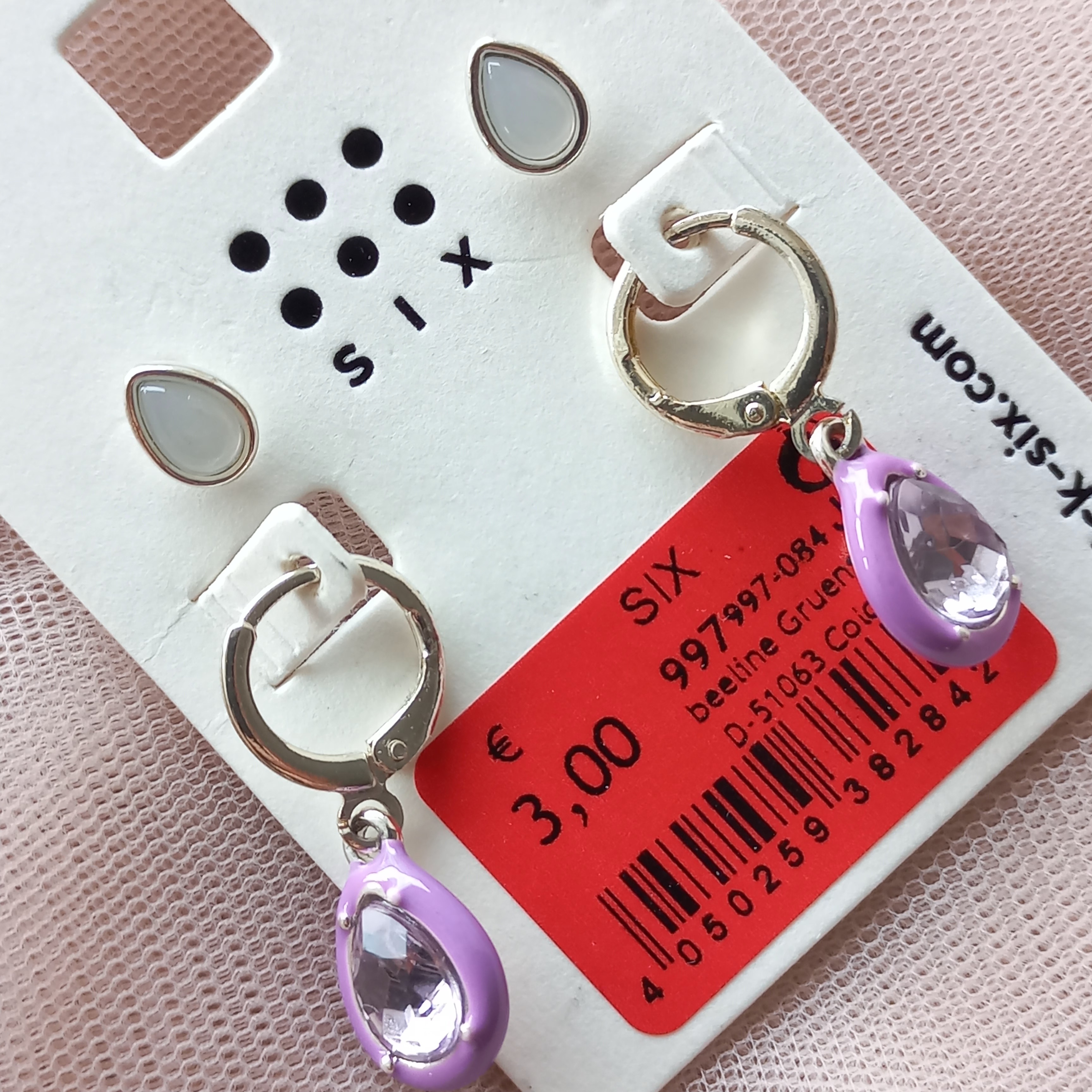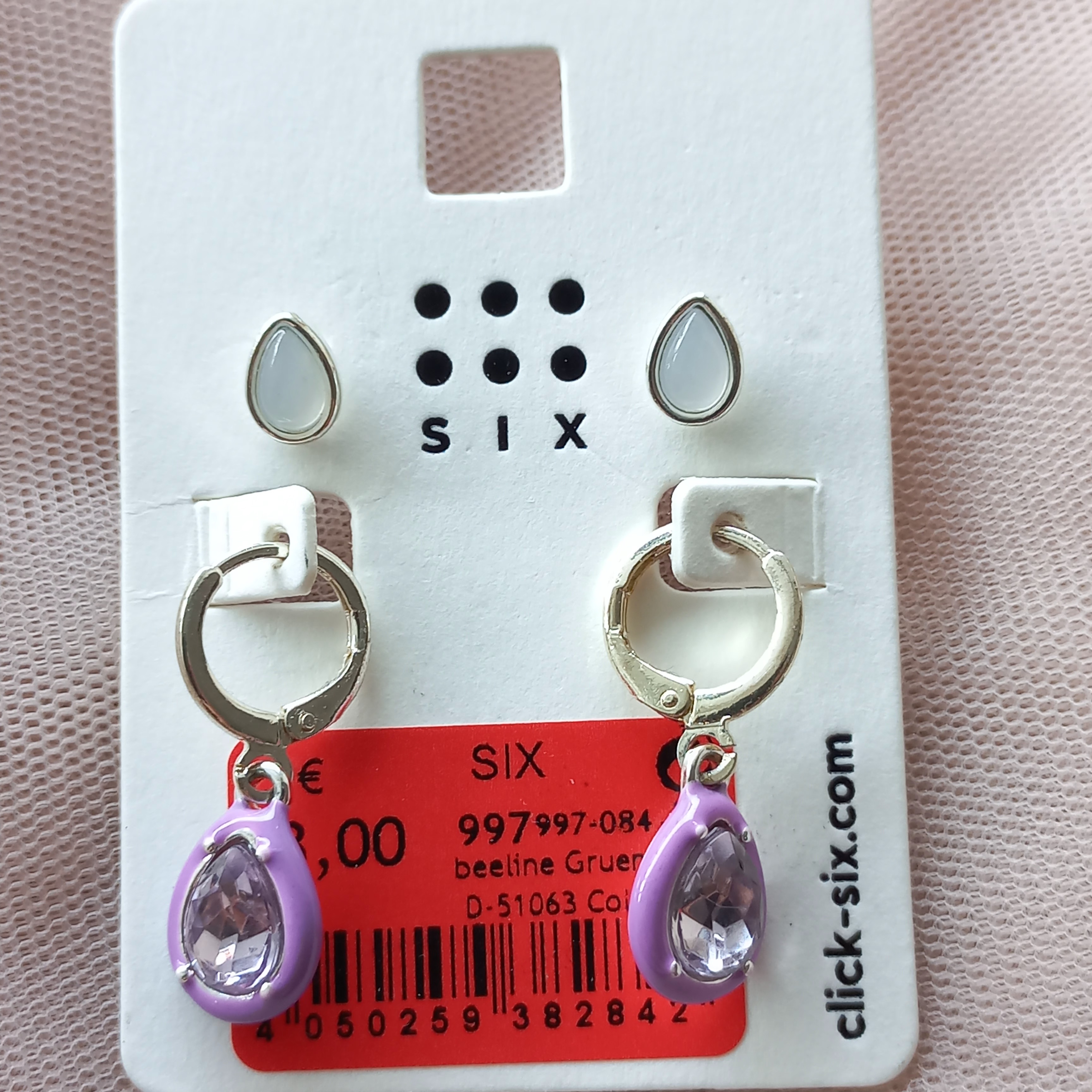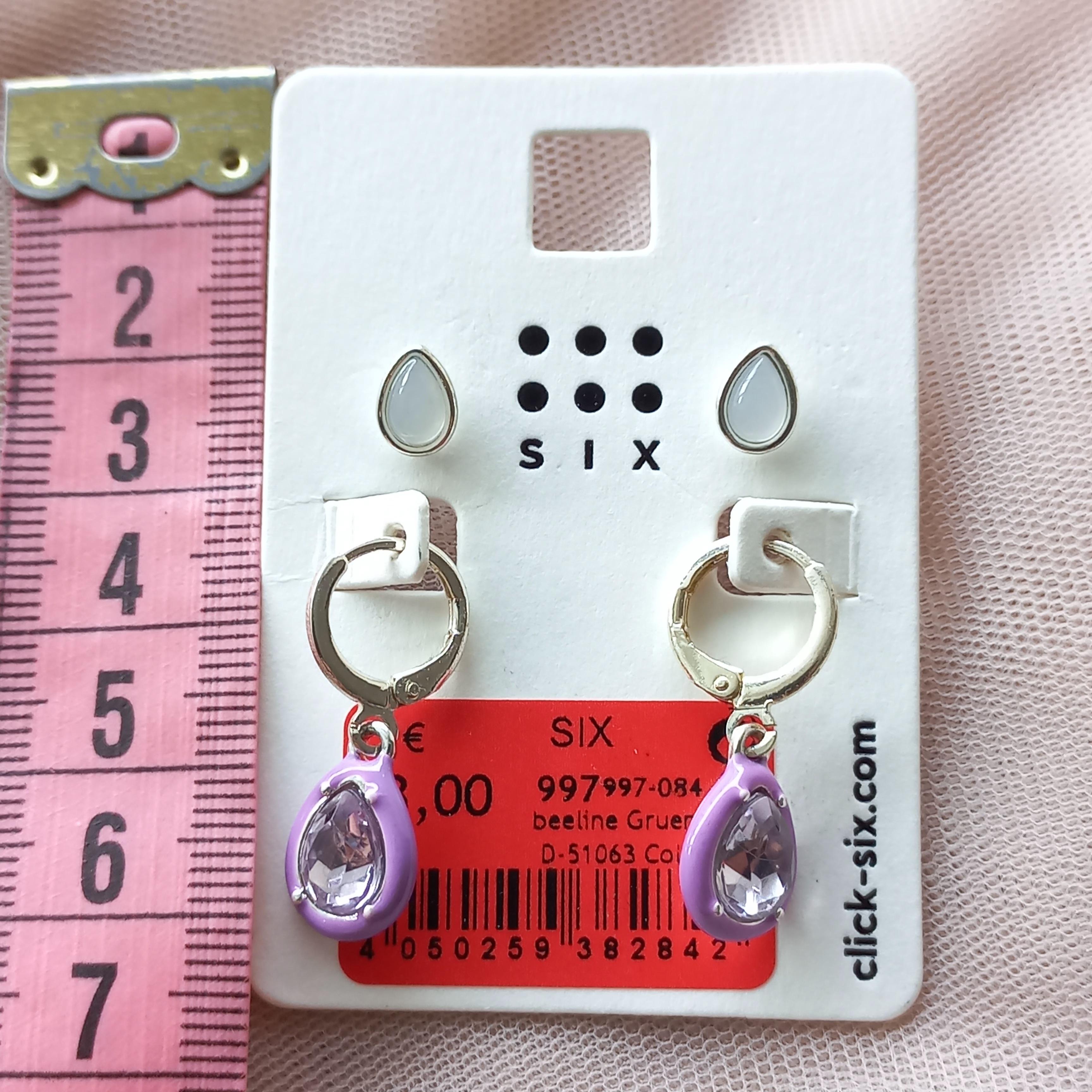 پک گوشواره زنانه میخی آویز قفلی نگین نقره ای برند اروپایی six ضدحساسیت