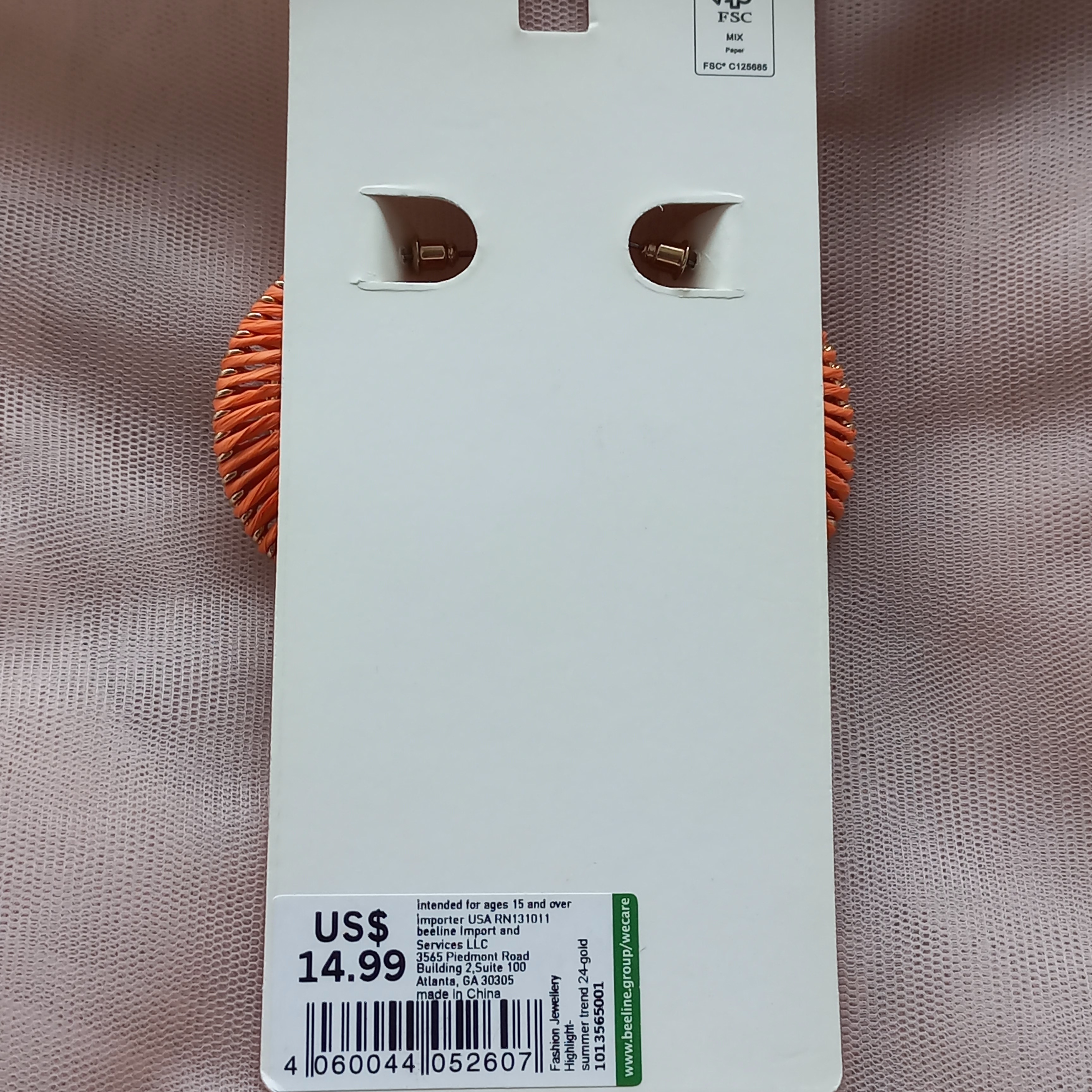 گوشواره زنانه نیم حلقه مکرومه نارنجی طلایی برند اروپایی Iam ضدحساسیت