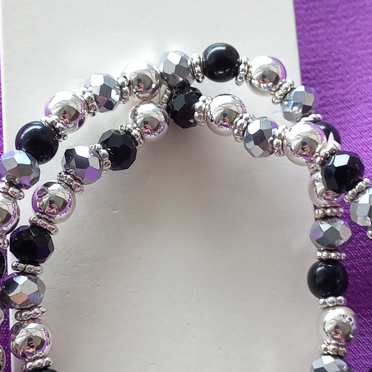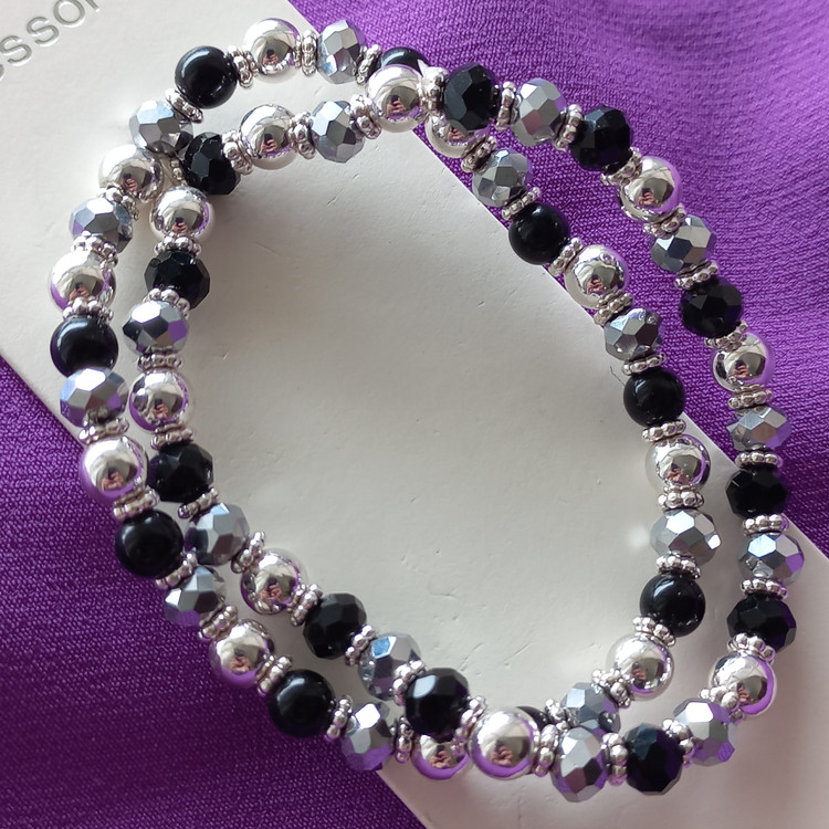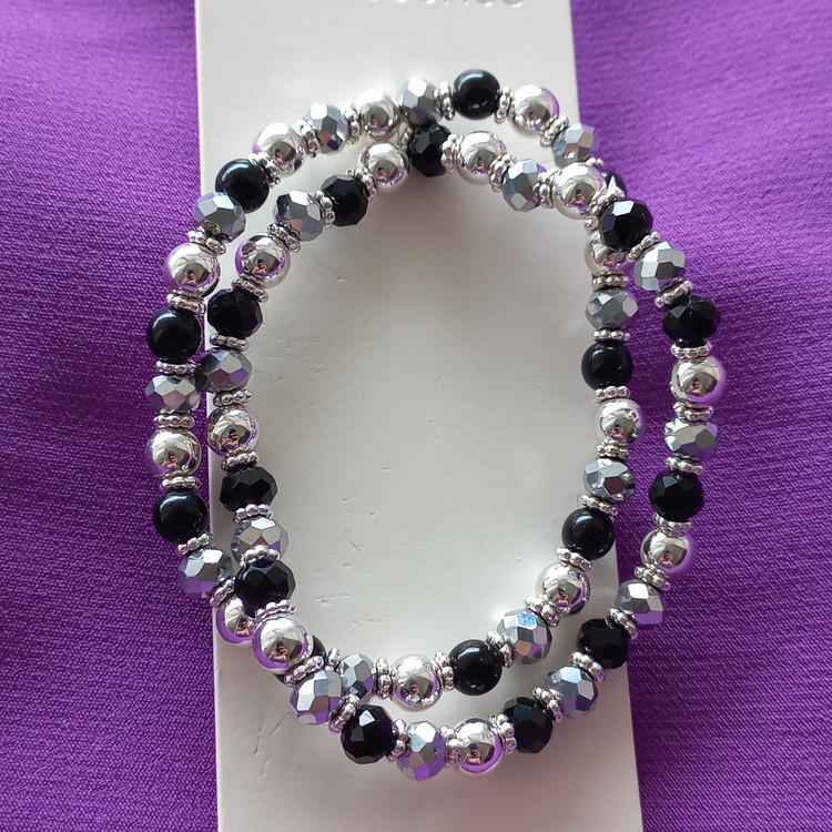 پک دستبند زنانه کشی مهره مشکی نقره ای برند اروپایی accessories ضدحساسیت