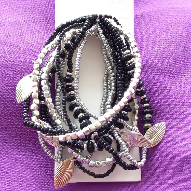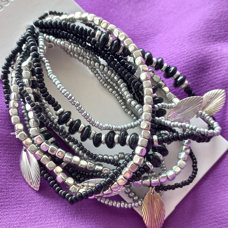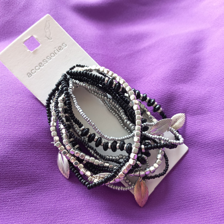 پک دستبند زنانه کشی مهره مشکی نقره ای برند اروپایی accessories ضدحساسیت