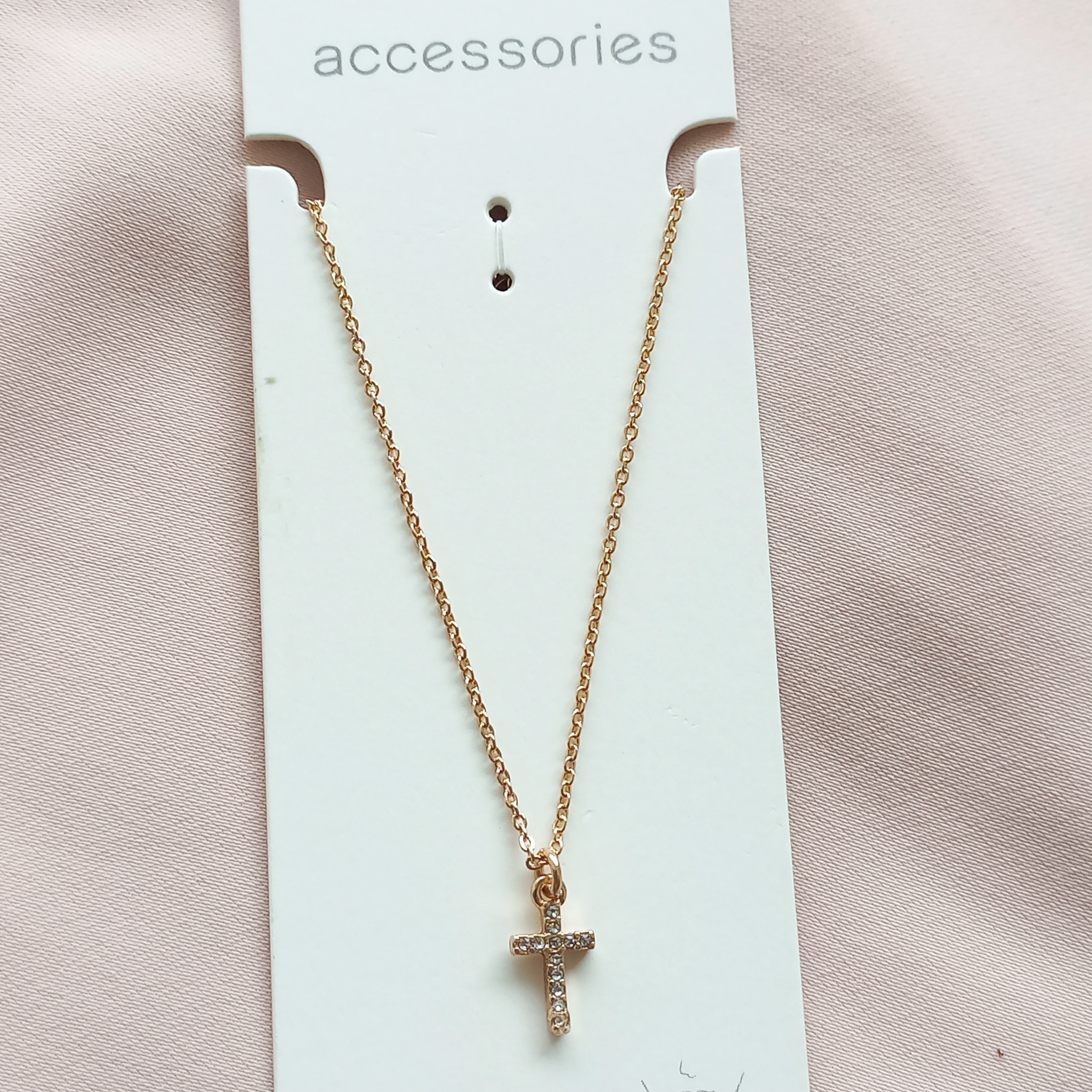 گردنبند زنانه آویز صلیب طلایی برند اروپایی accessories ضدحساسیت