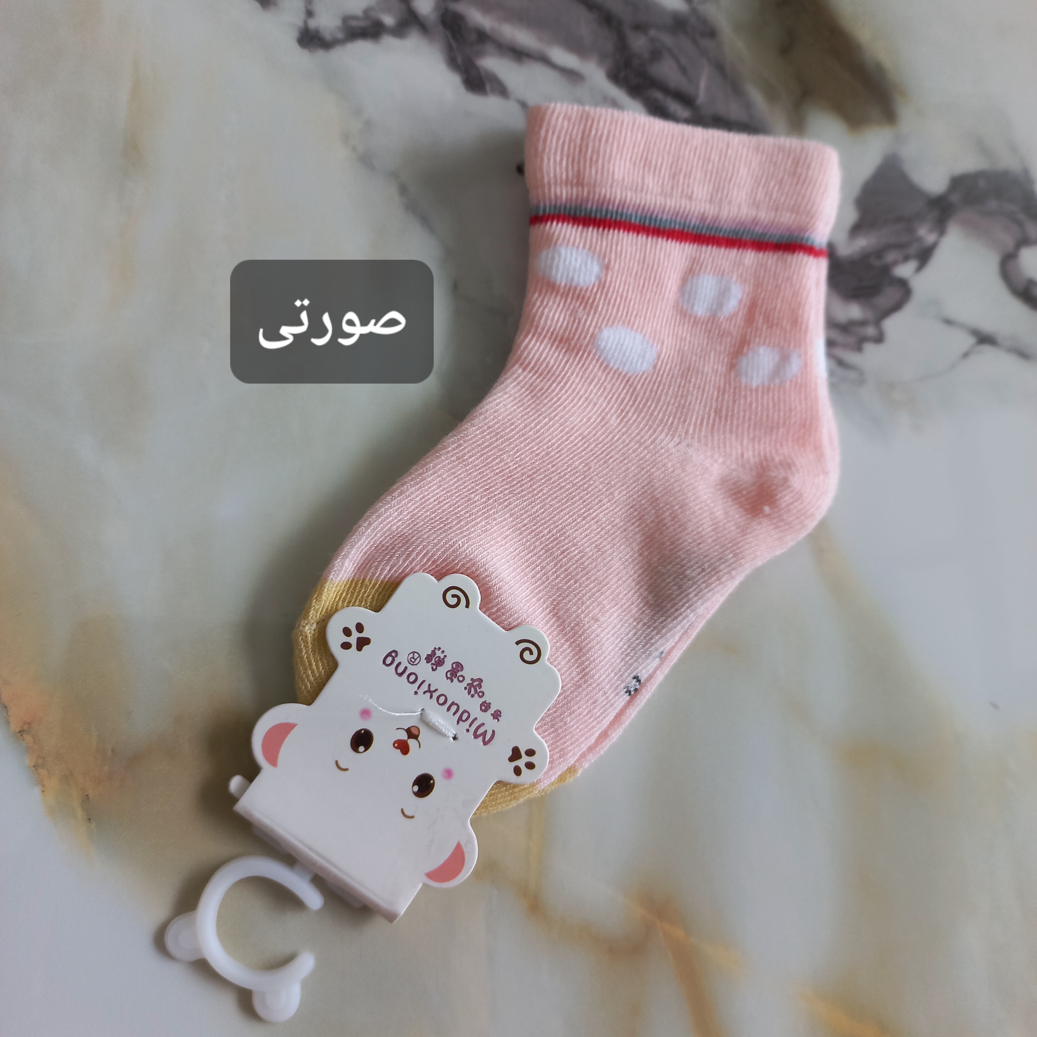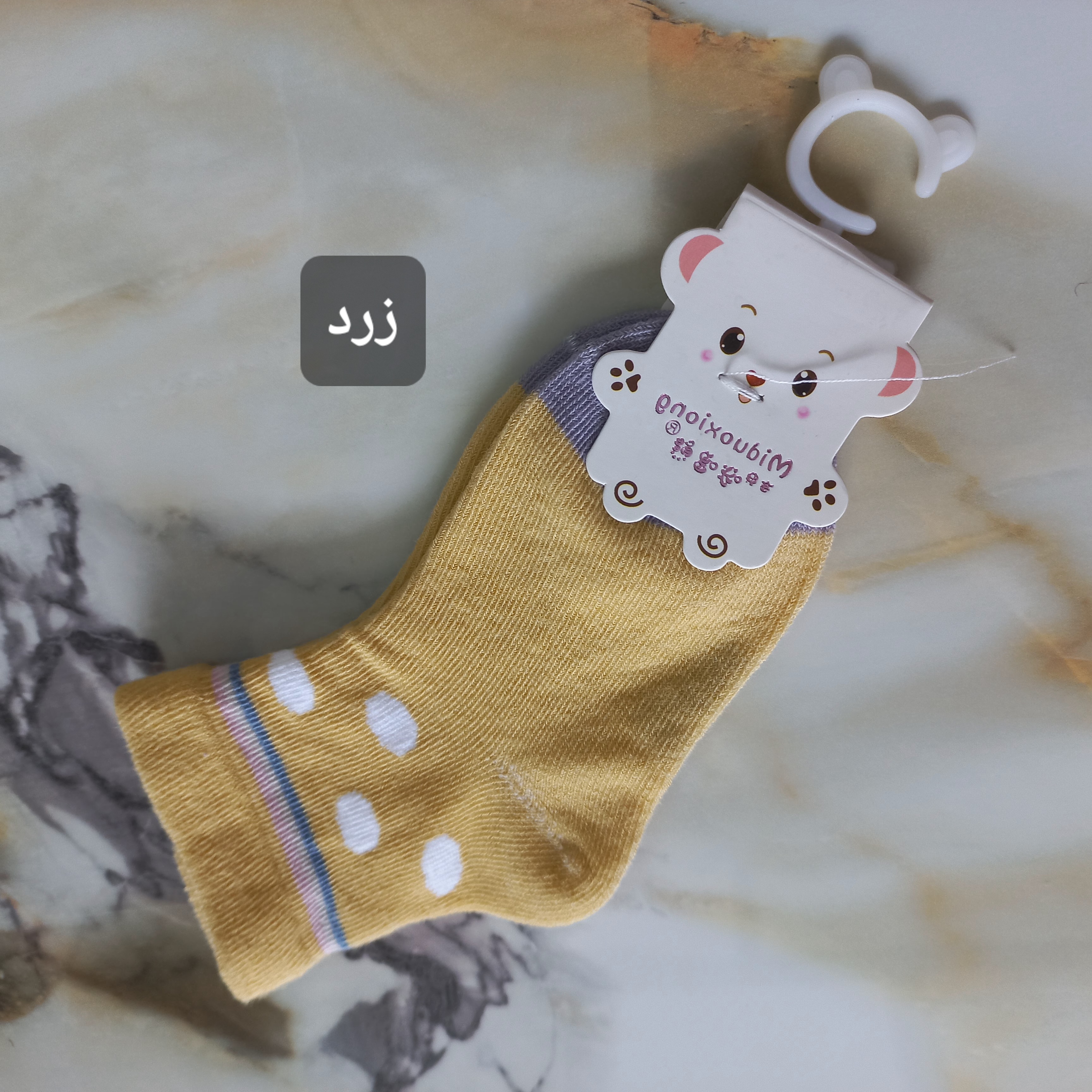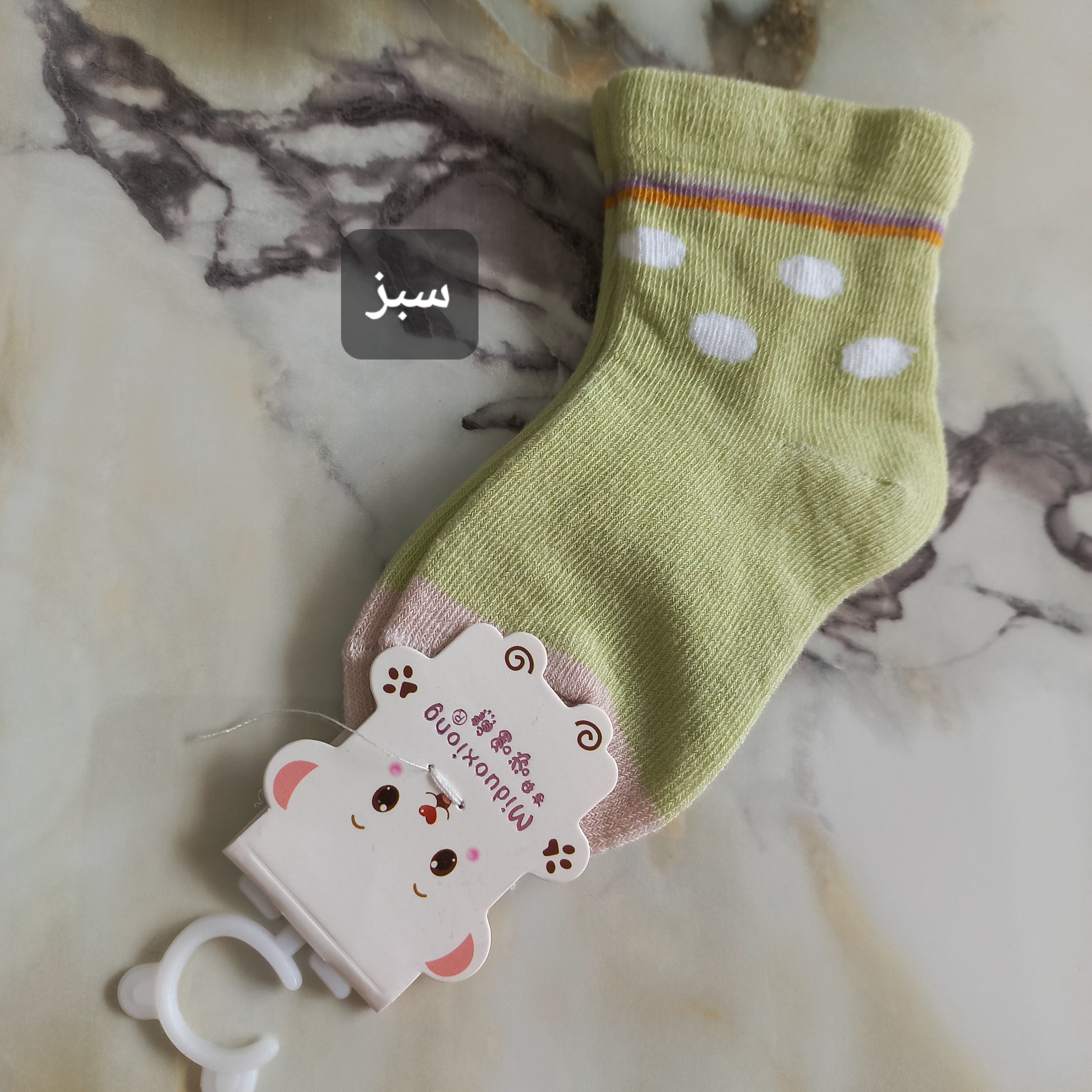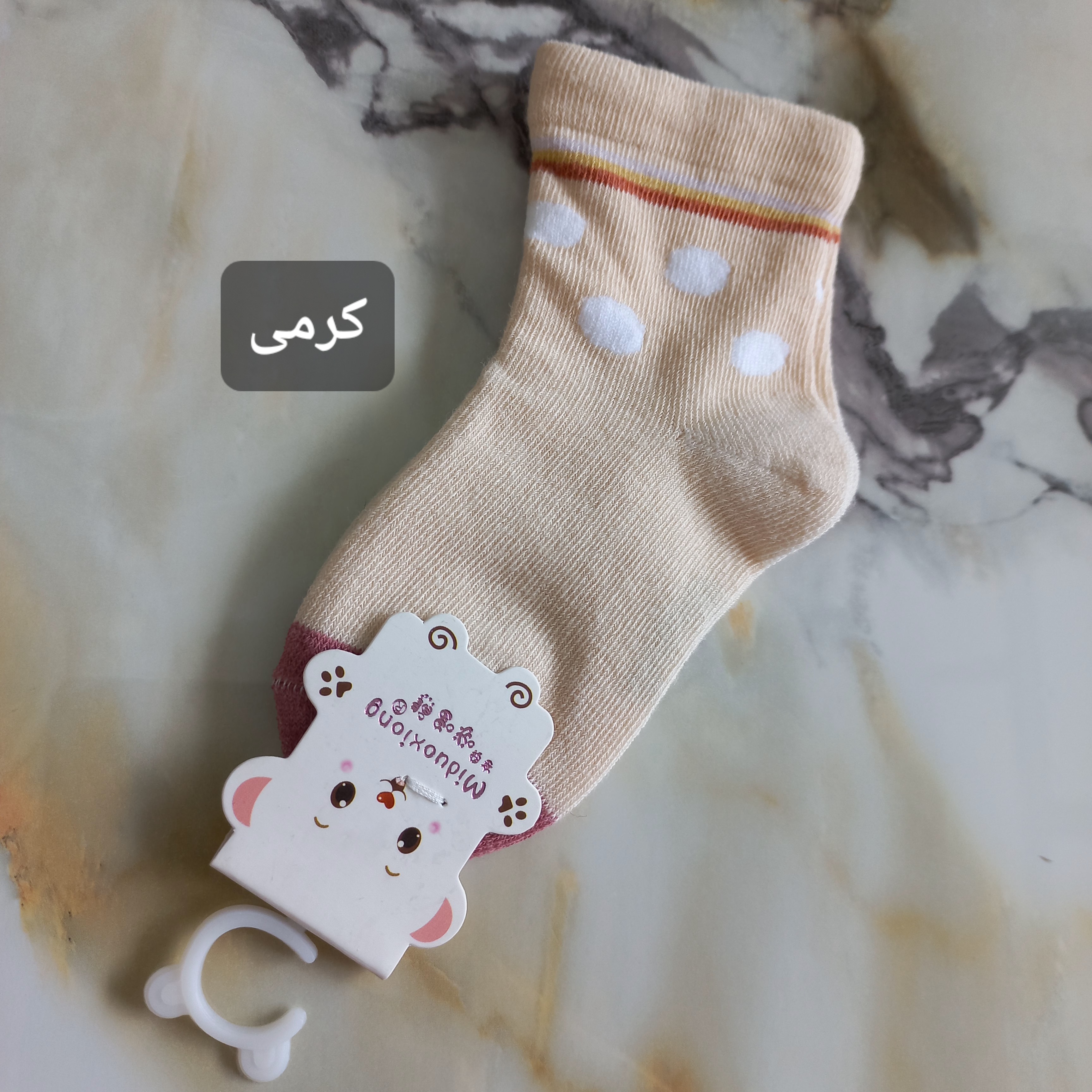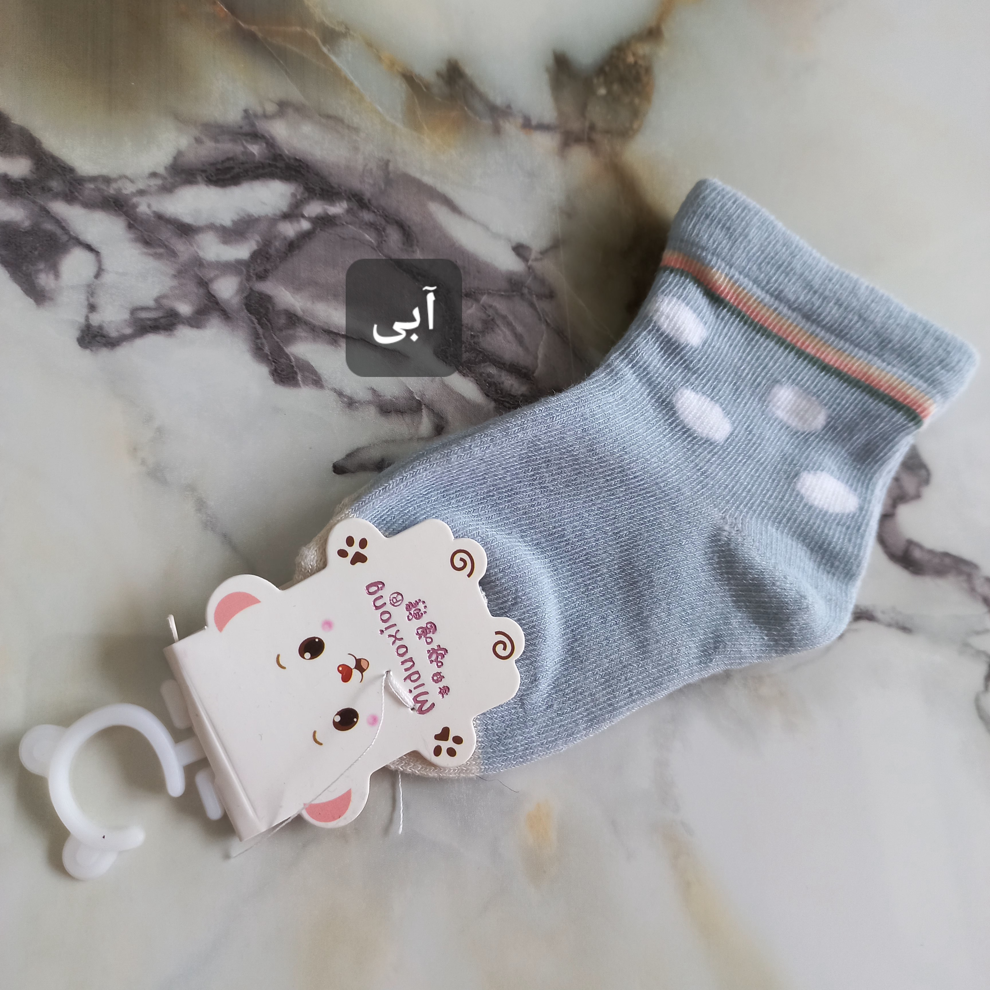 جوراب نوزادی نیم ساق نخی طرح خالدار فری سایز اندازه کف پا در حالت عادی ۱۰ سانتی متر کشش تا ۱۸ سانتی متر (به هیچ وجه مرجوعی و تعویض نداریم لطفا در خرید خود دقت کنید.)