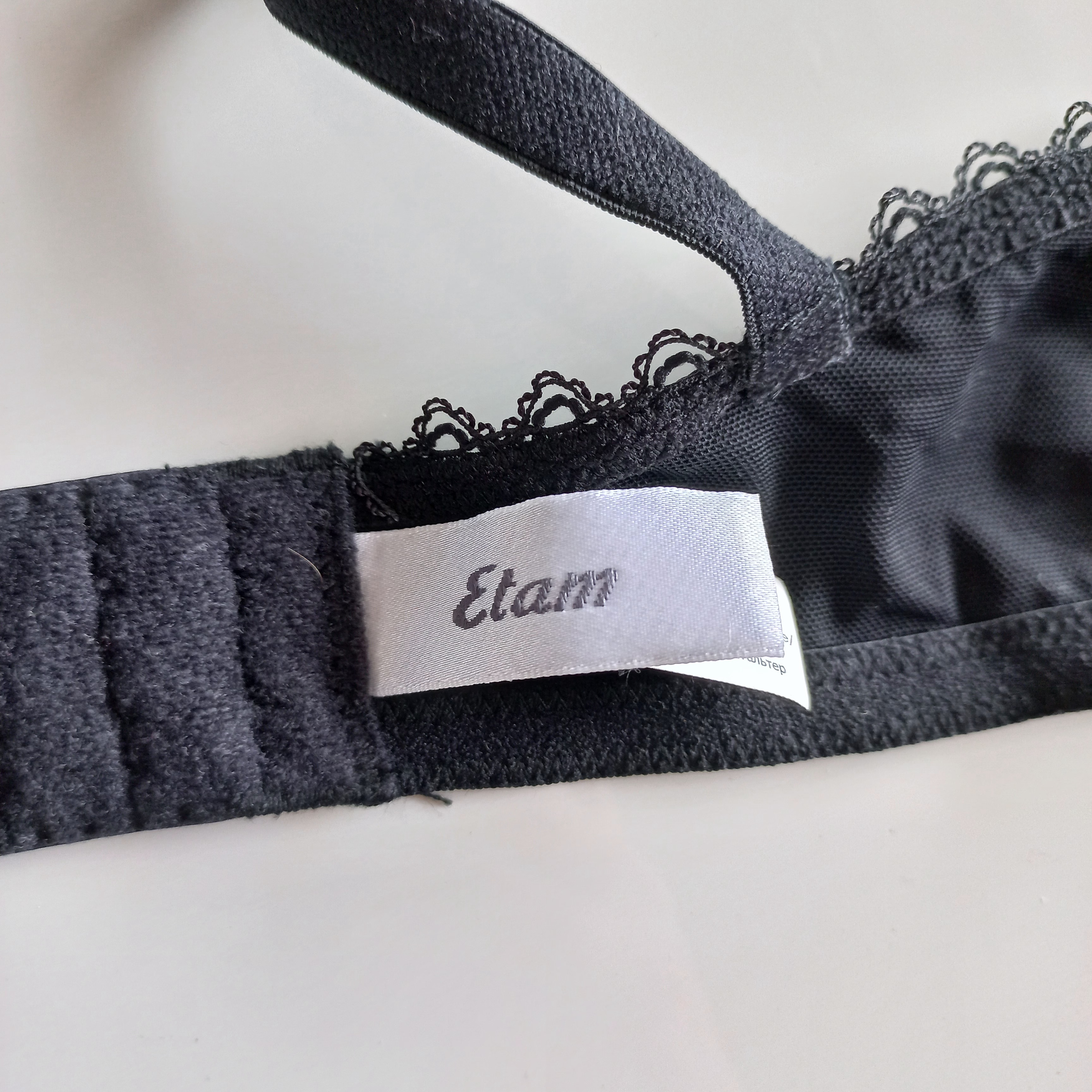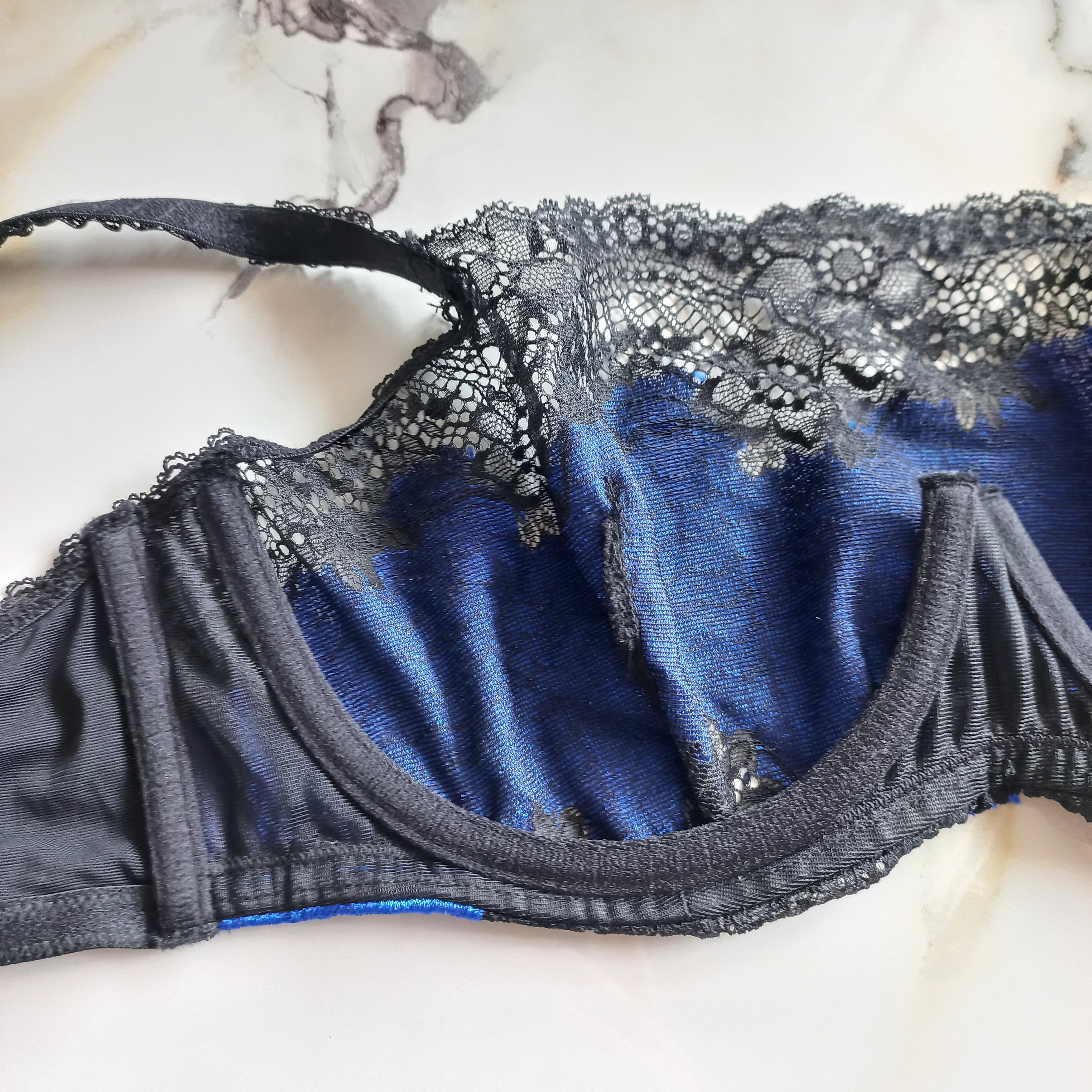 سوتین زنانه فنردار توری آبی مشکی برند اروپایی etam