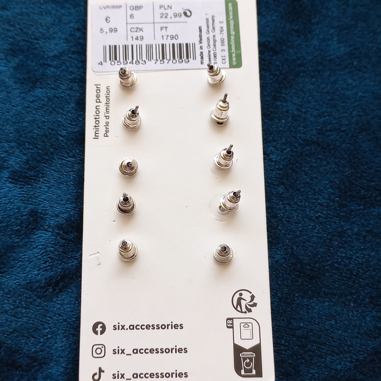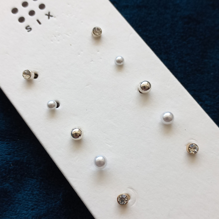 پک گوشواره زنانه میخی نگین مروارید برند اروپایی six ضدحساسیت