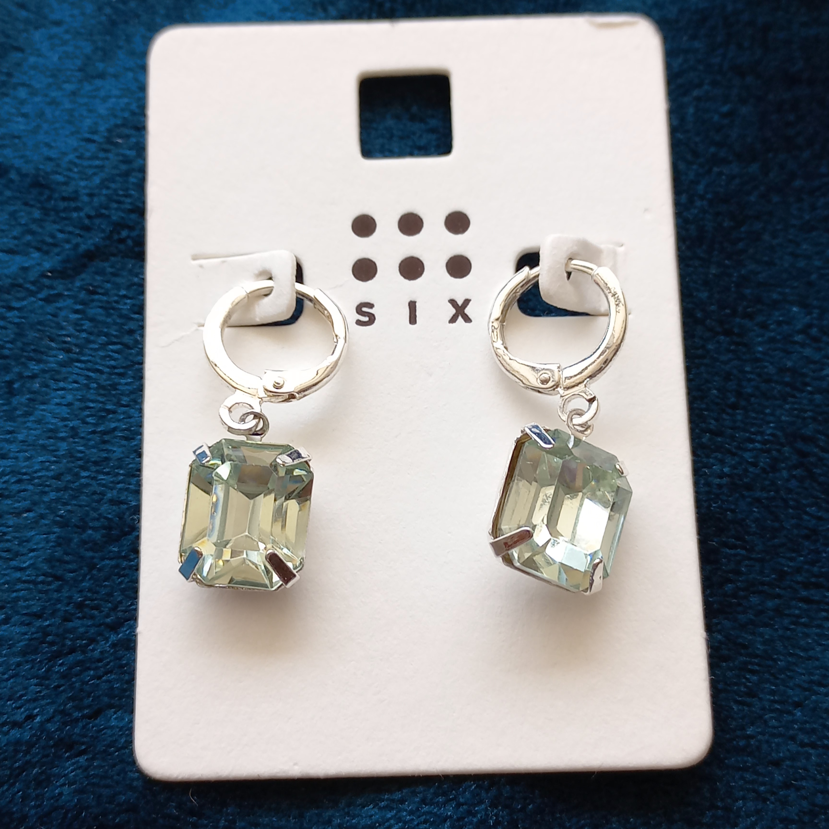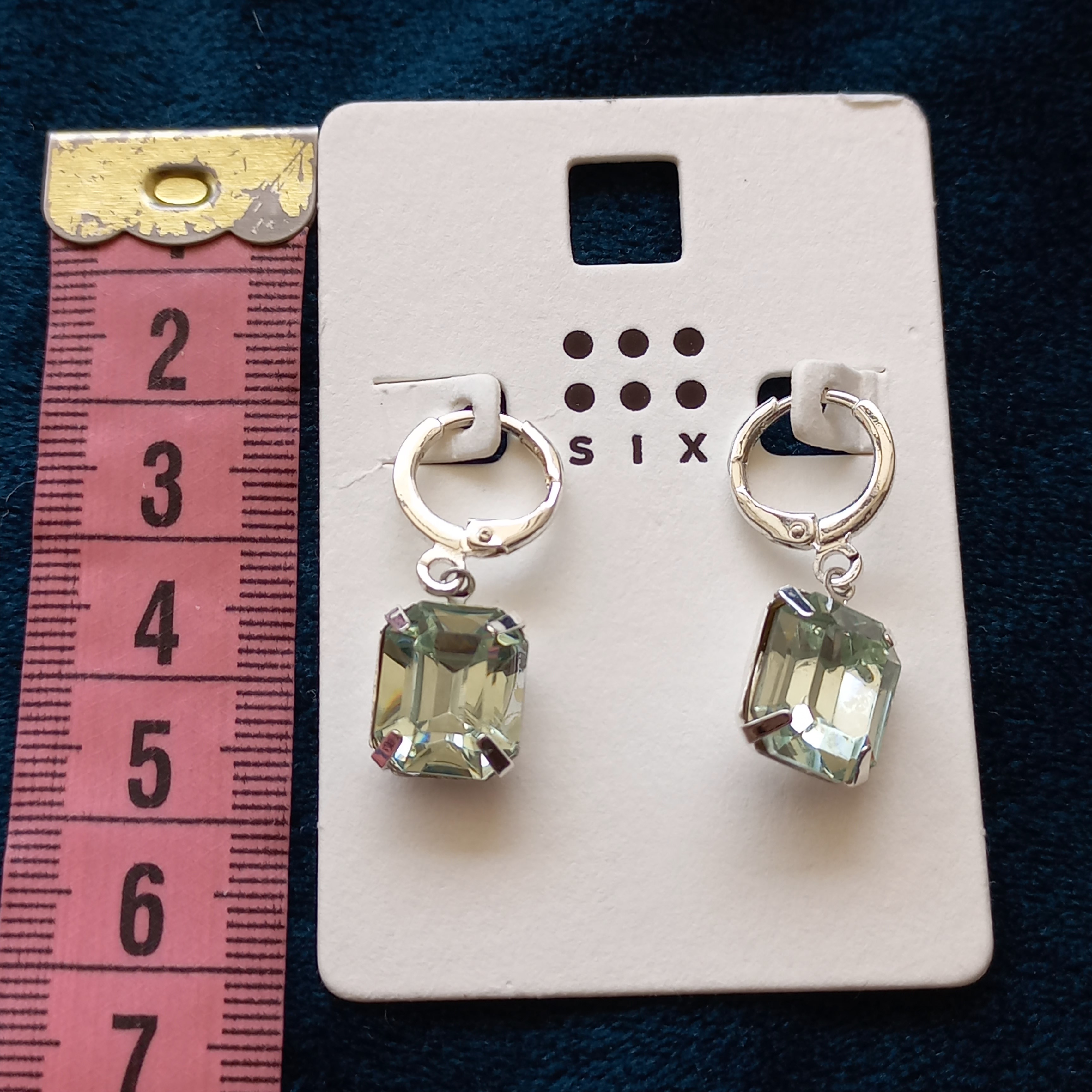 گوشواره زنانه قفلی آویز نگین سبز آدامسی نقره ای برند اروپایی six ضدحساسیت