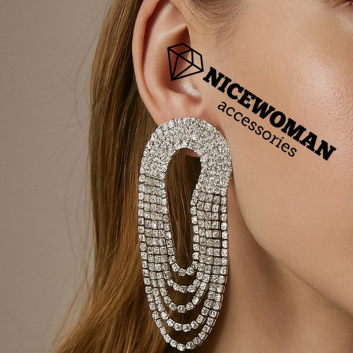 گوشواره زنانه میخی آویز فول نگین برند سفید اروپایی Iam ضدحساسیت