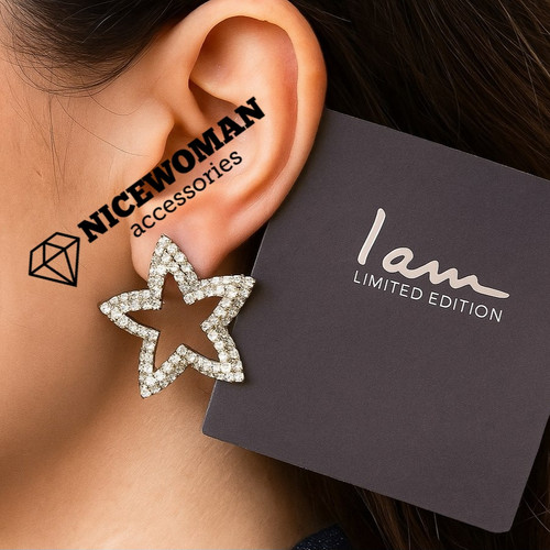 گوشواره زنانه میخی ستاره فول نگین سفید برند اروپایی Iam ضدحساسیت