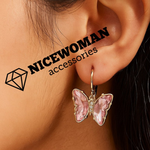 گوشواره زنانه آویز پروانه سنگی نگین صورتی برند اروپایی Iam ضدحساسیت