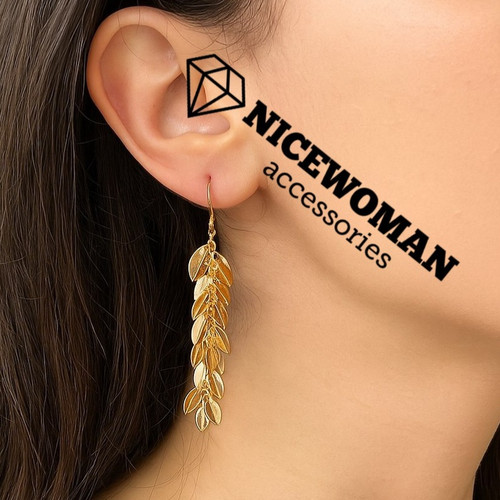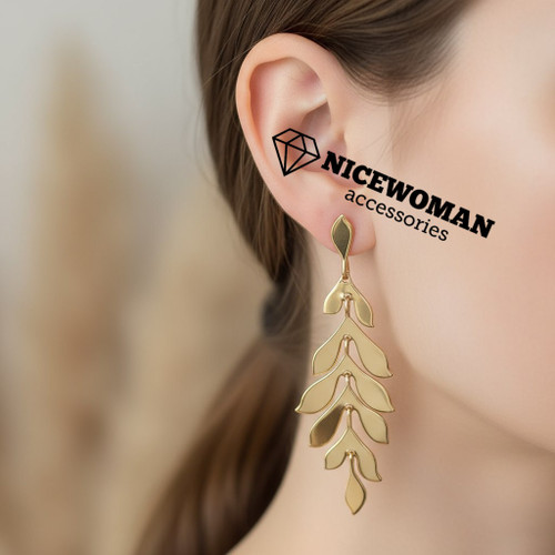 گوشواره زنانه آویز میخی طرح برگ طلایی برند اروپایی accessories ضدحساسیت